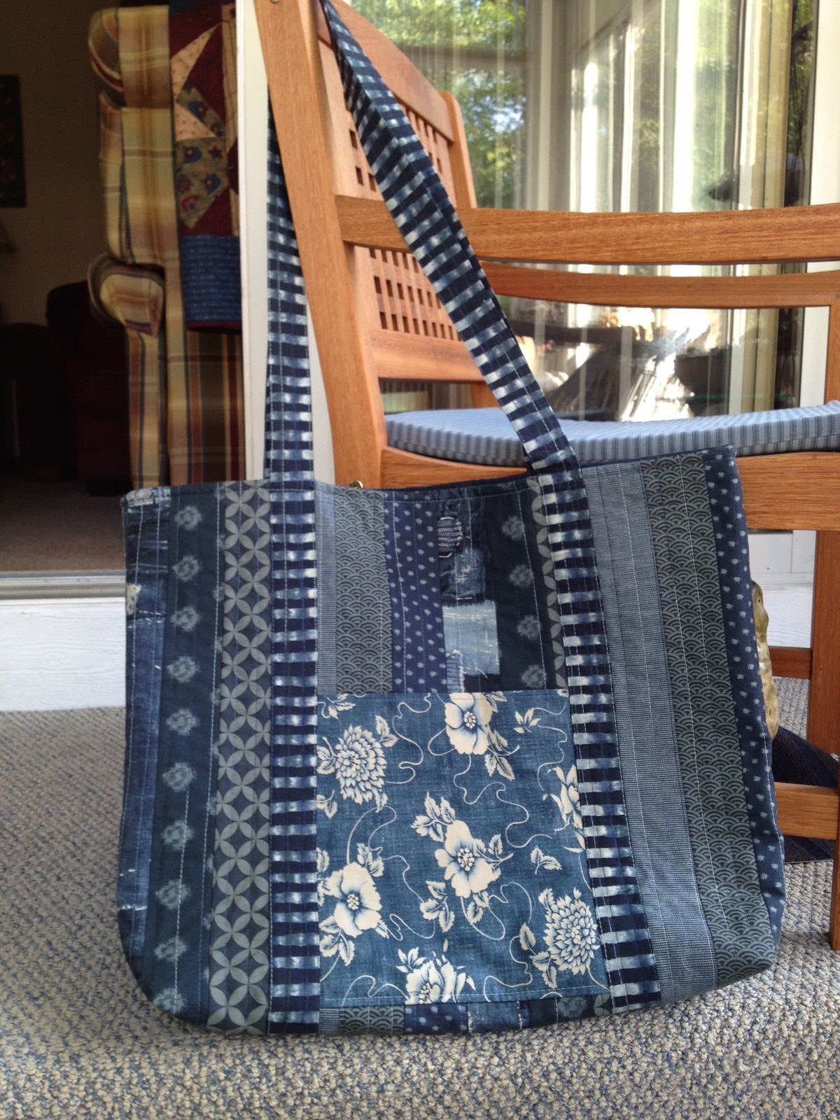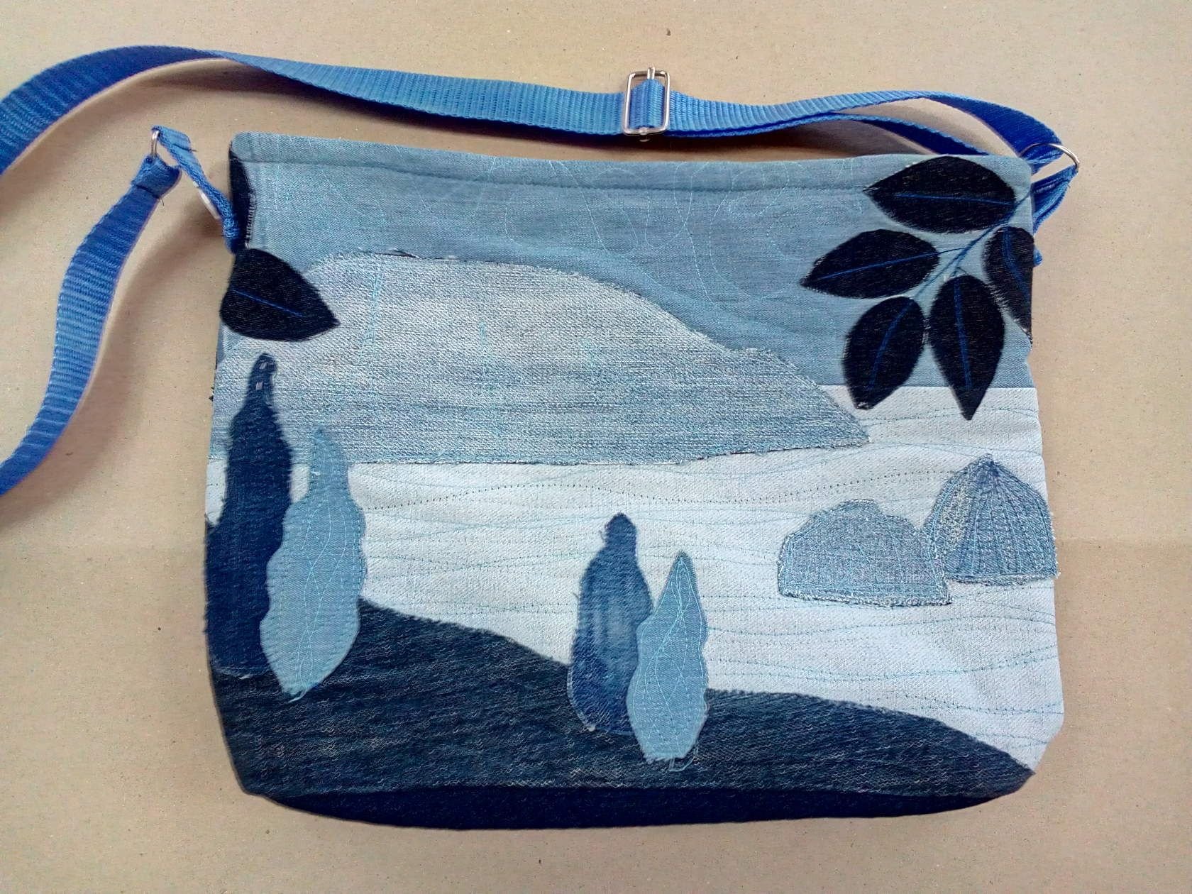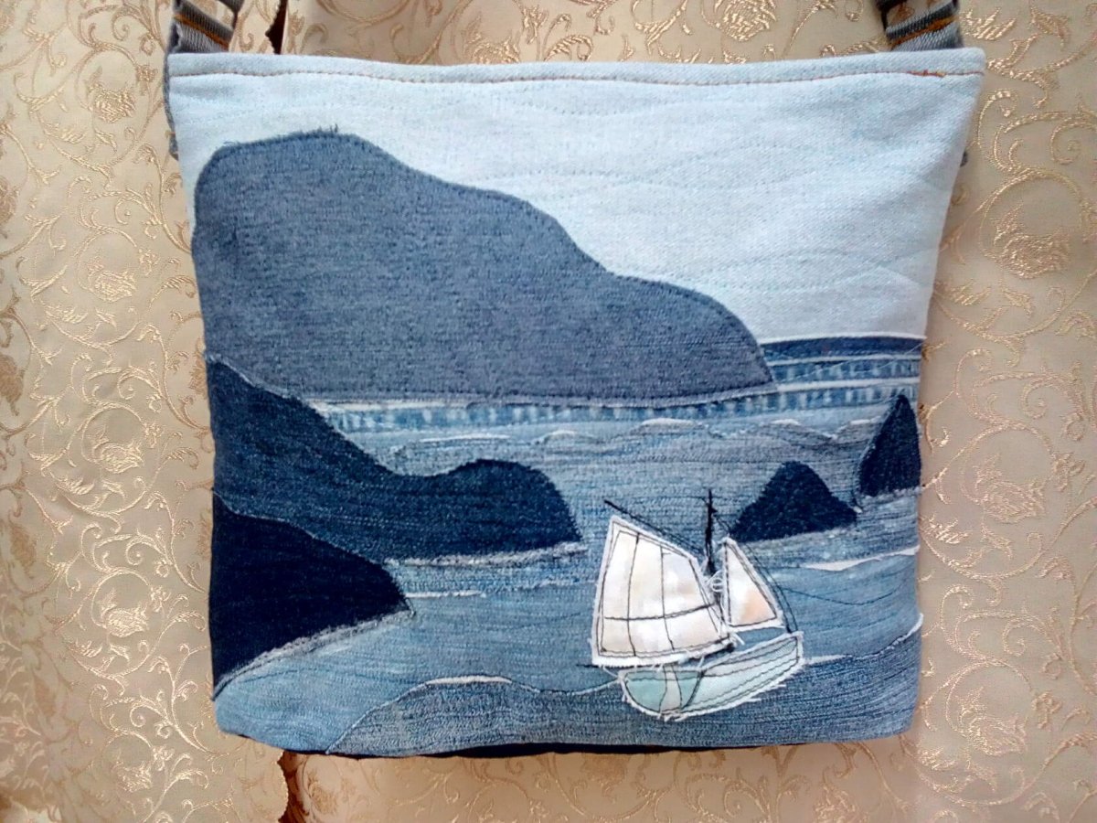 Сумка из джинсовой ткани и льна в японской технике
