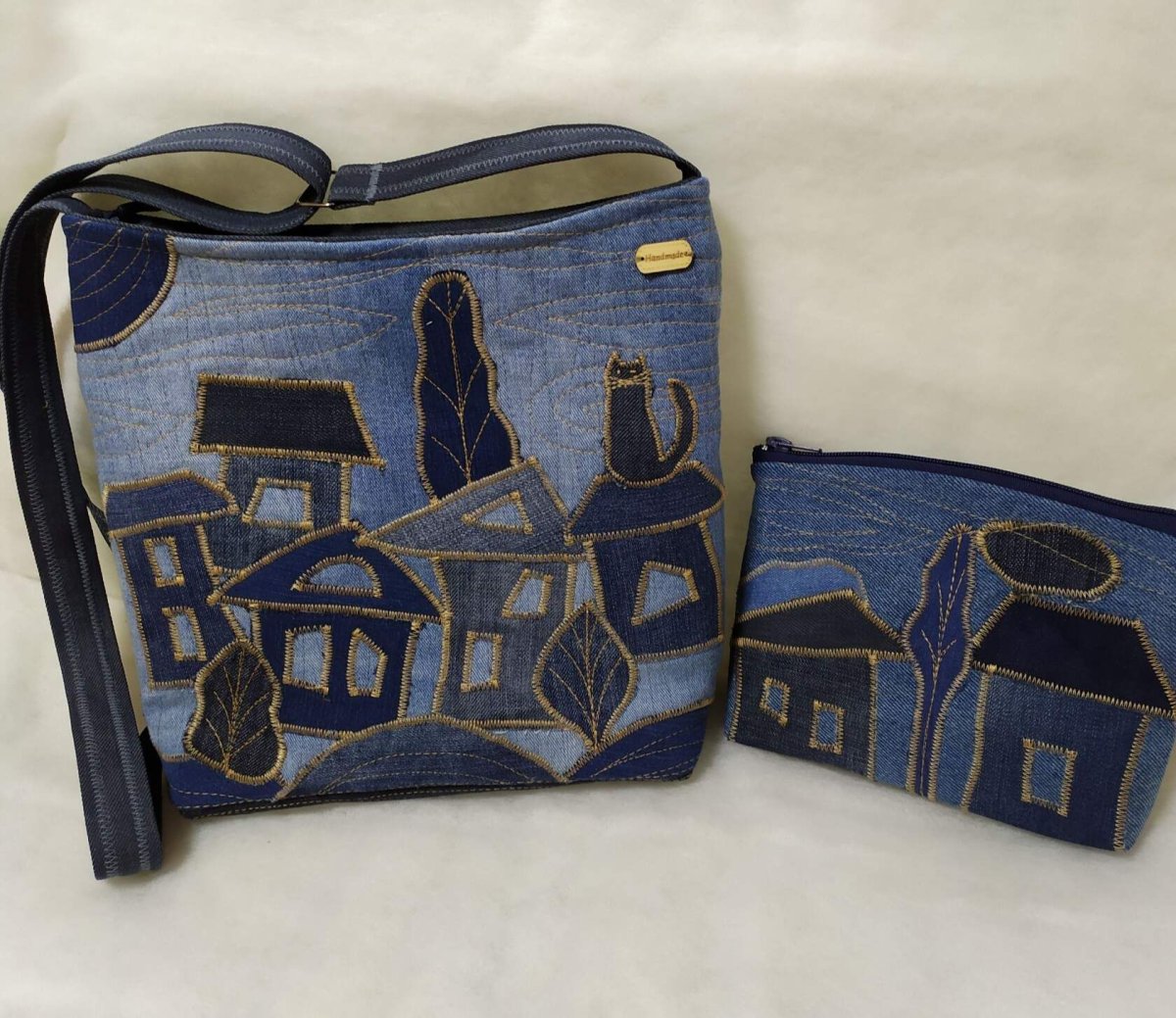 Джинсовые сумки с домиками