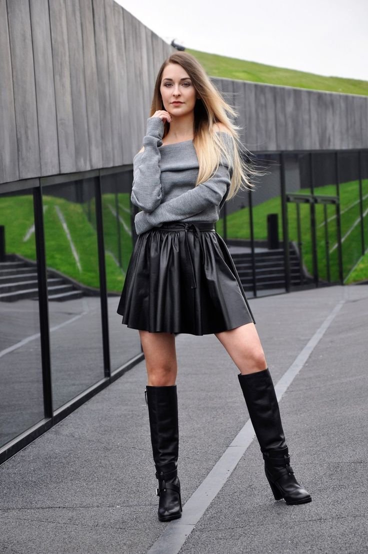 Кожаная юбка с сапогами
