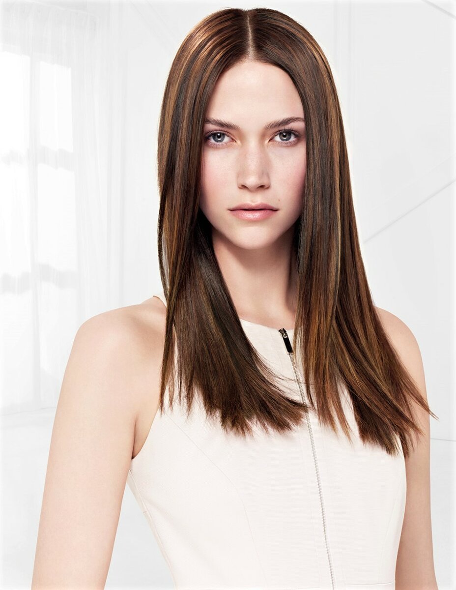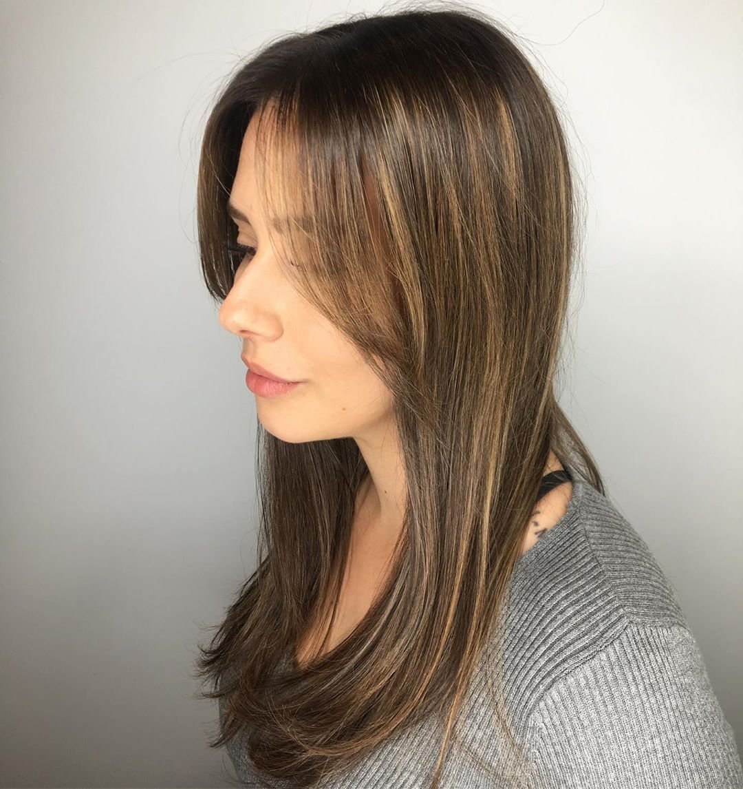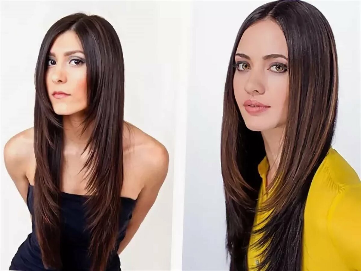 Стрижка с удлиненной челкой на длинные прямые волосы