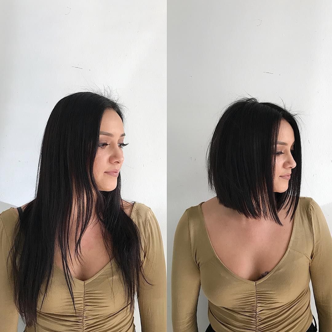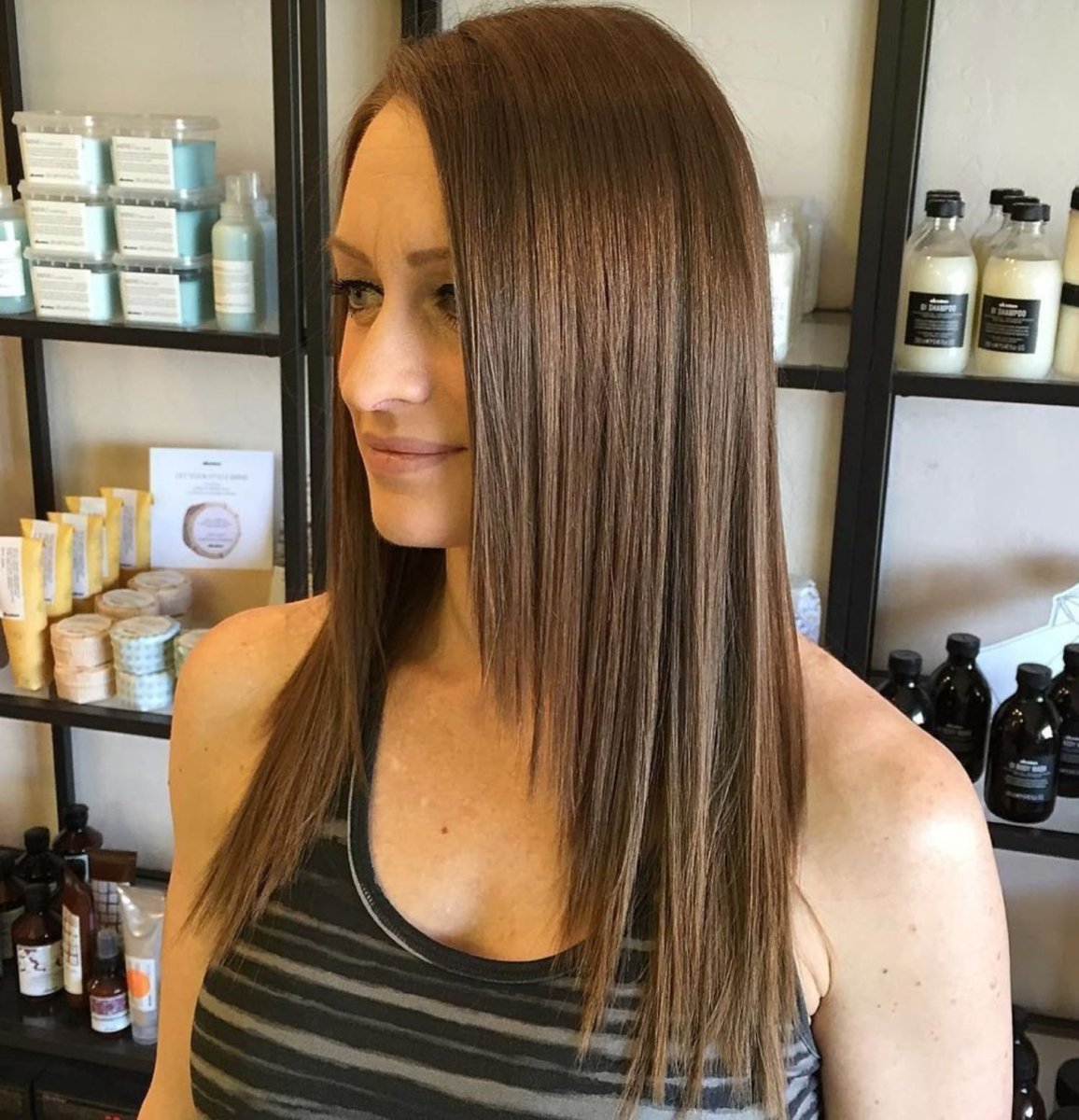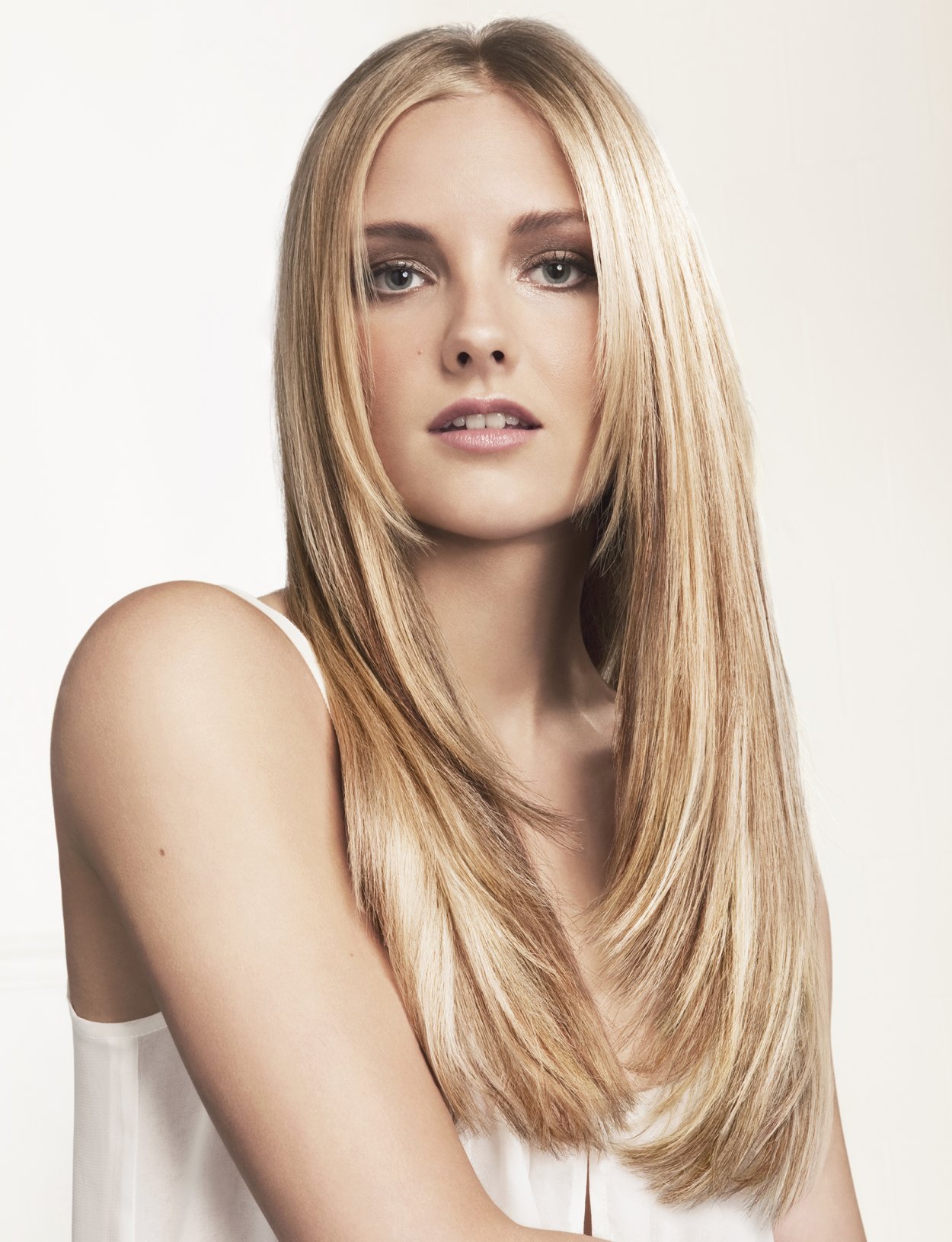 Стрижка с удлиненной челкой на длинные прямые волосы