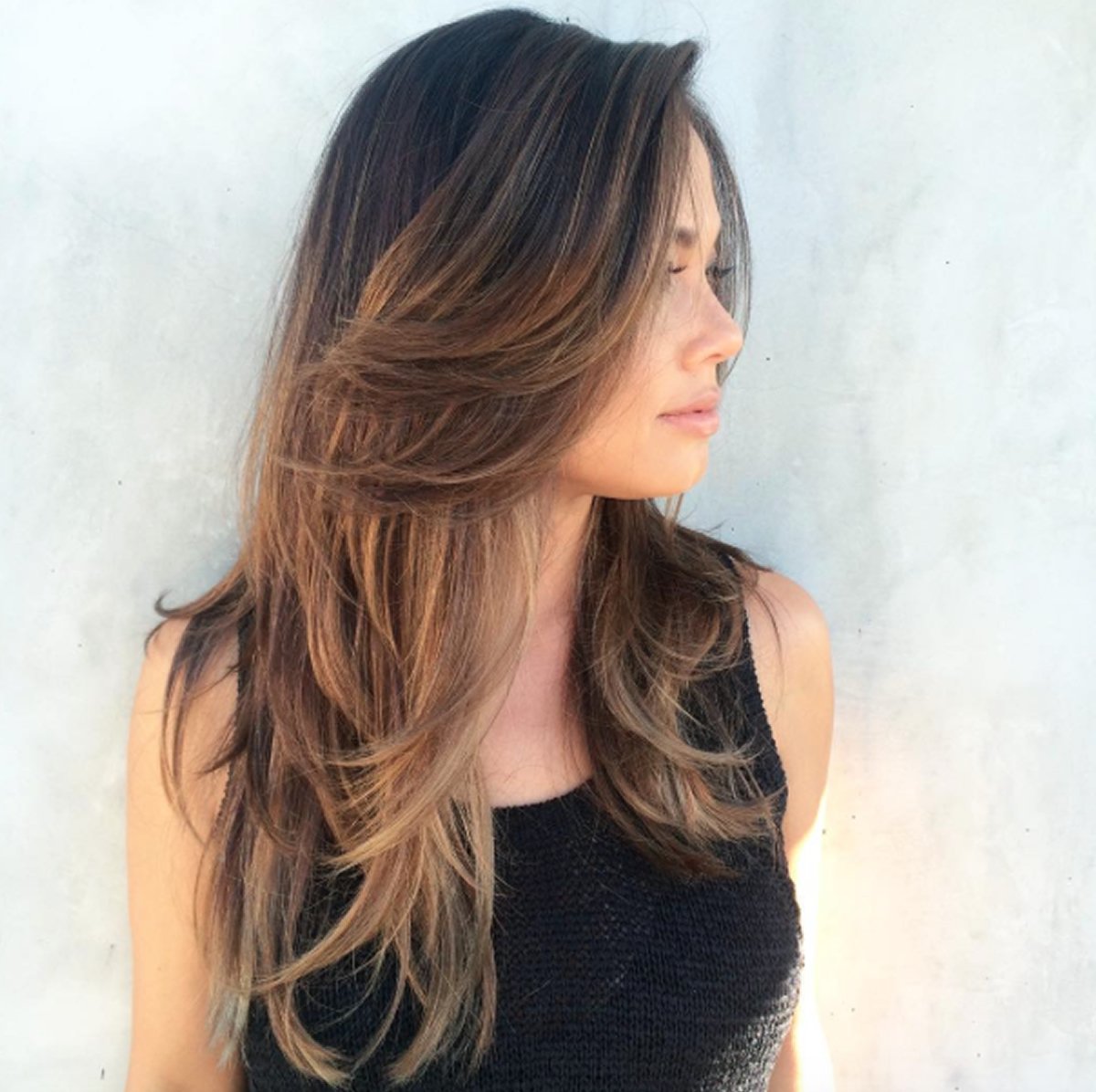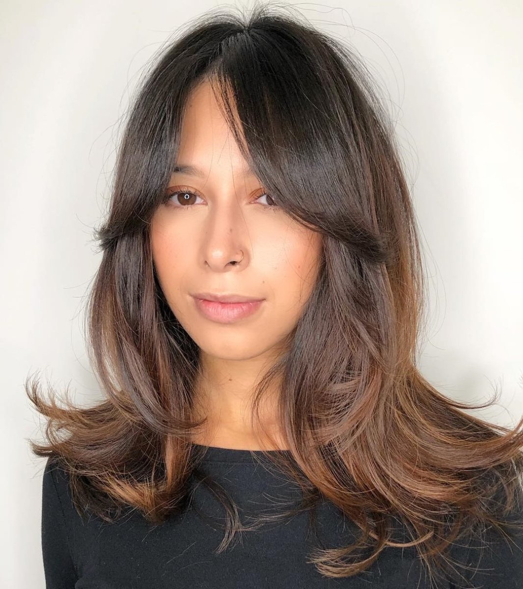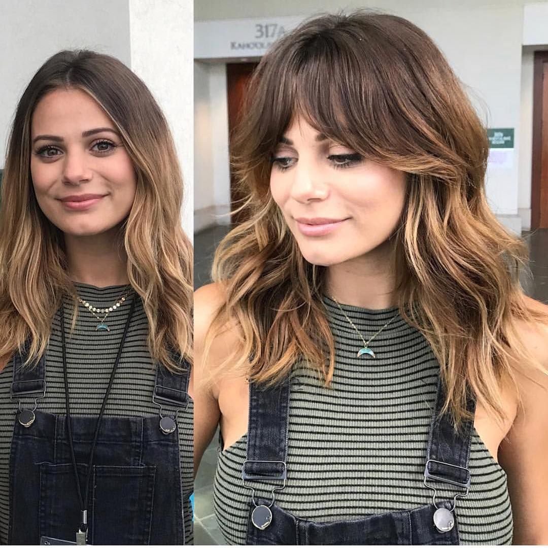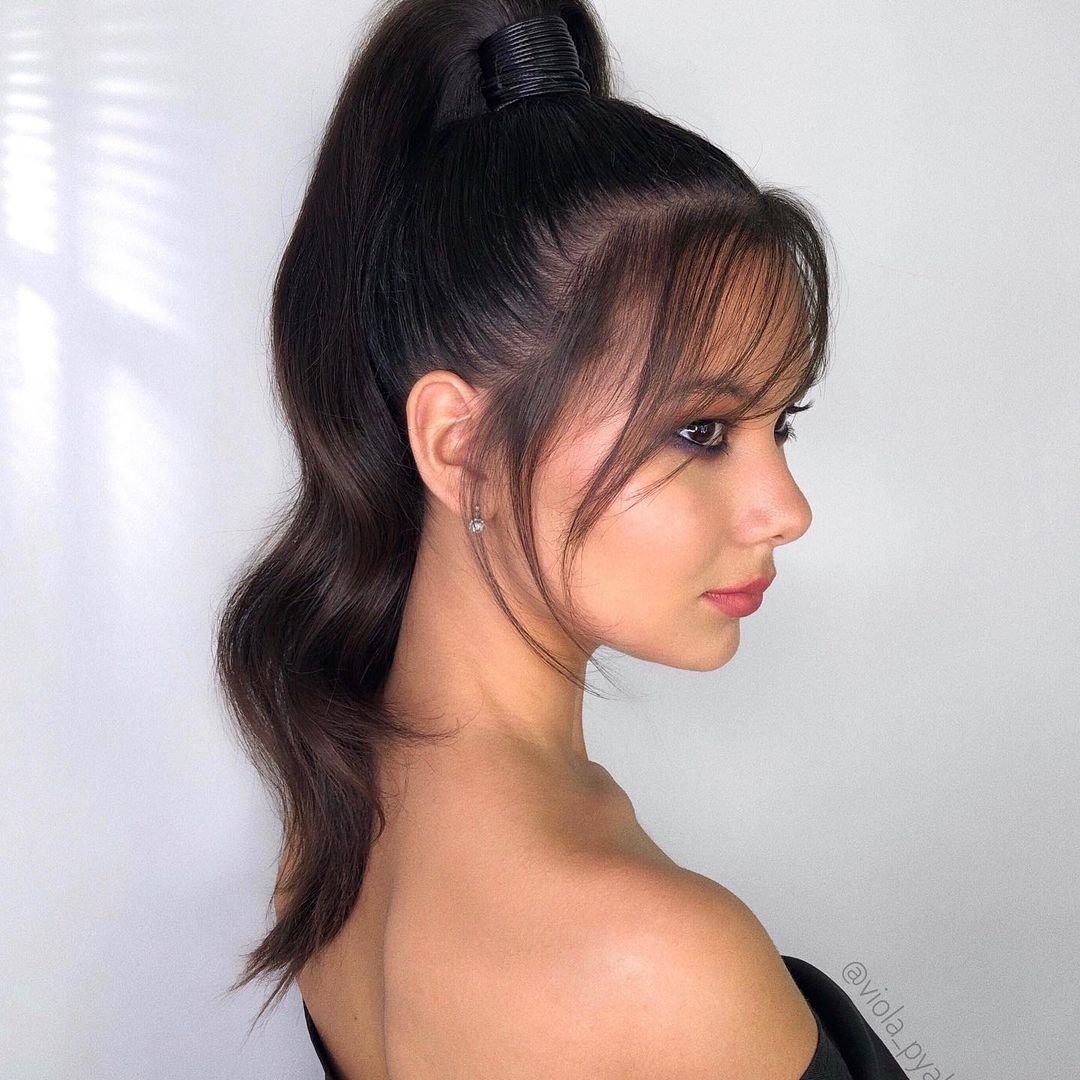 Стрижка на длинные волосы 2021 с челкой удлиненной двух сторон