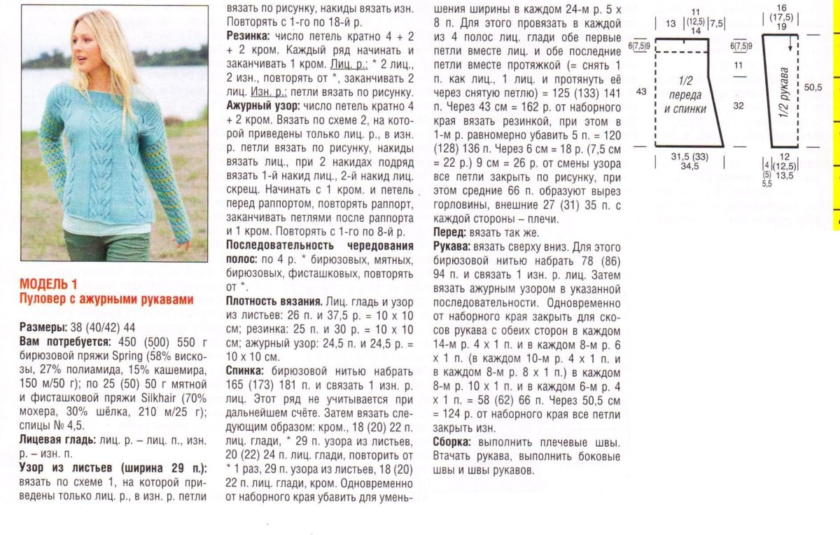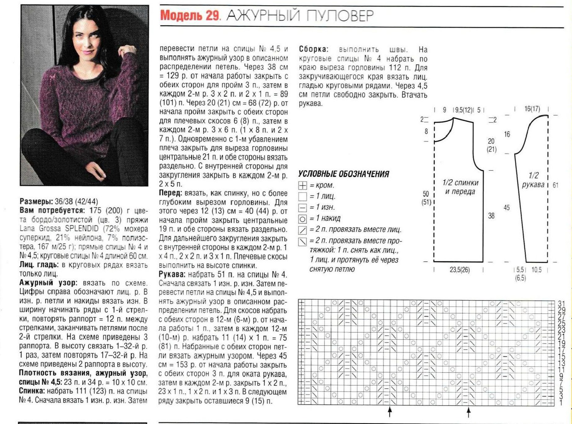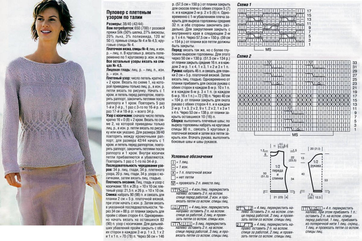 Вязание спицами пуловер женский с описанием и схемой