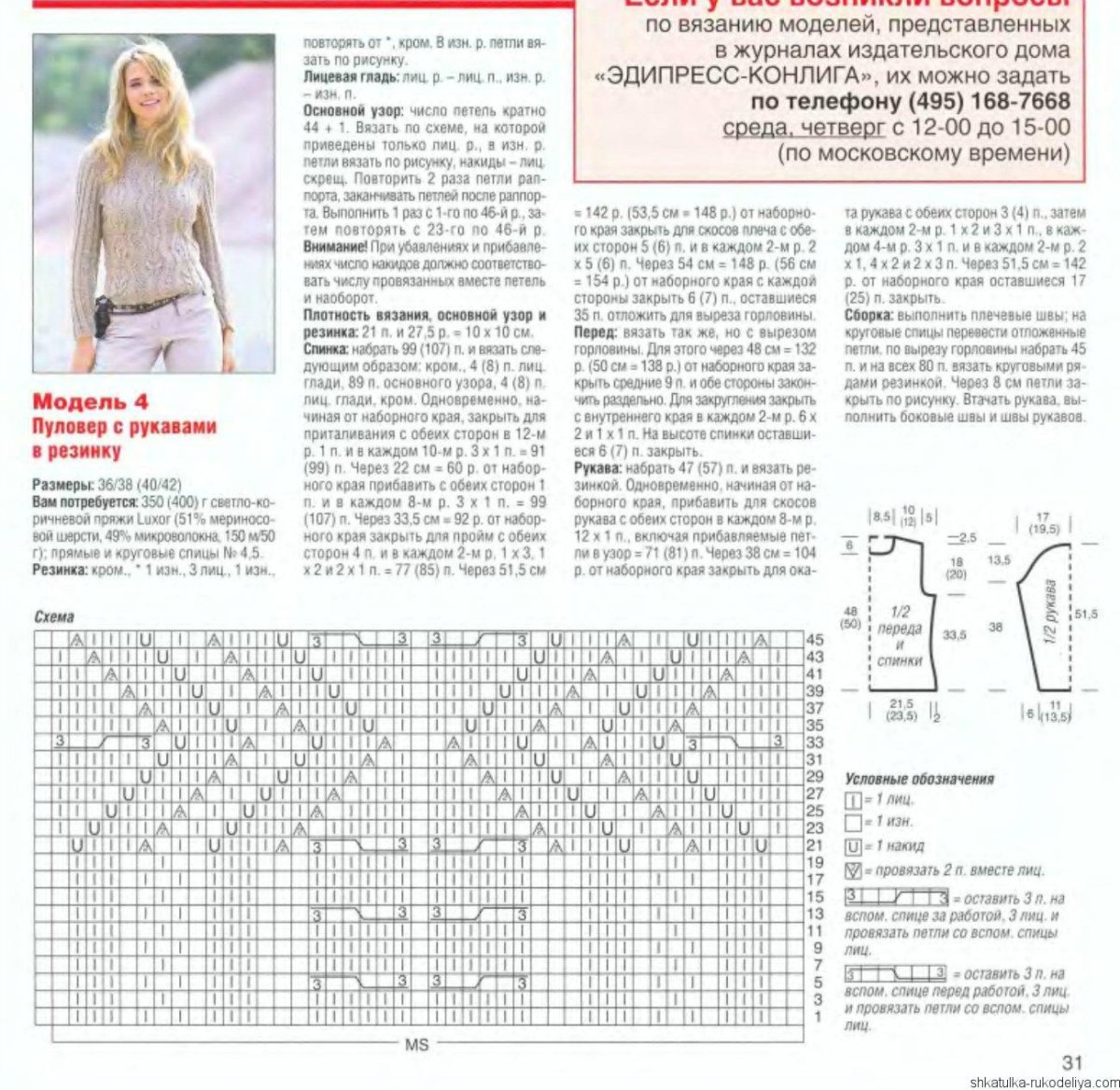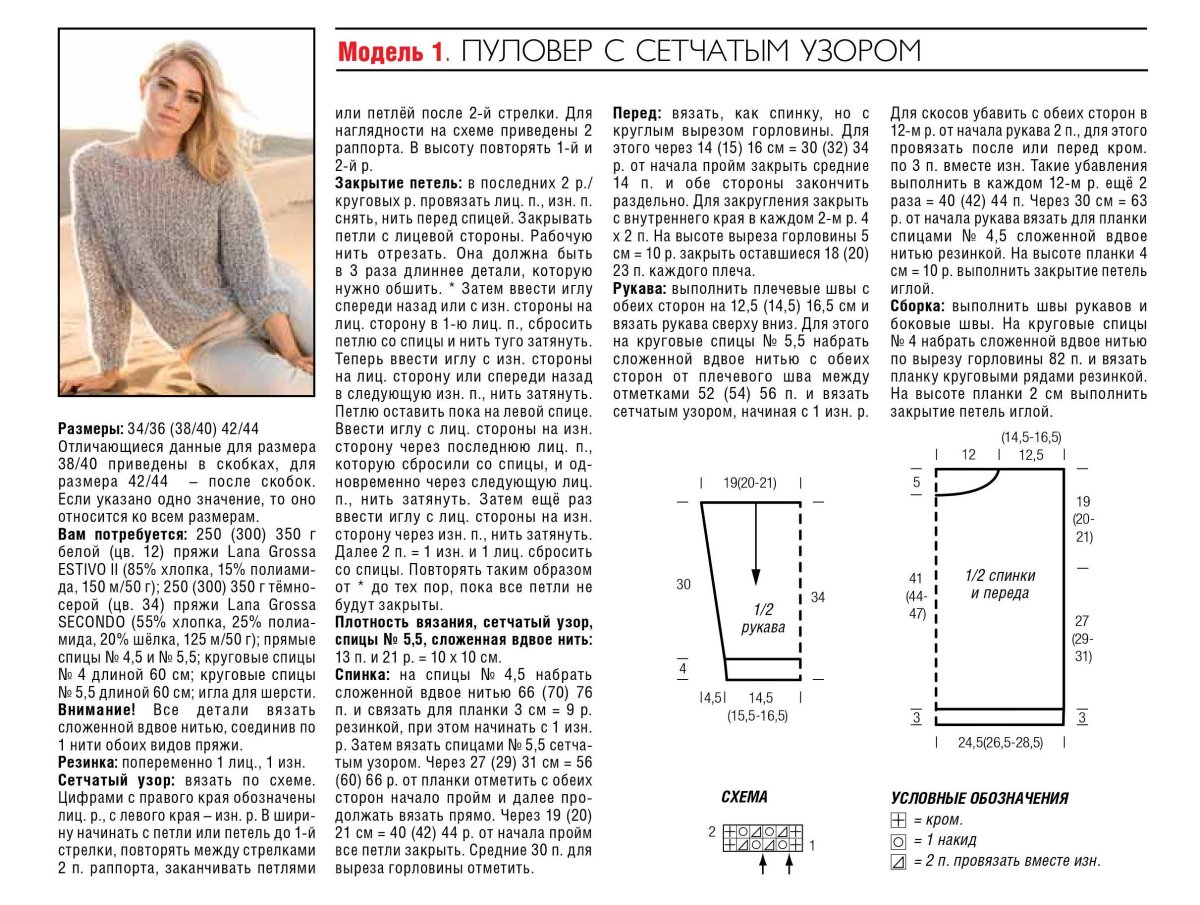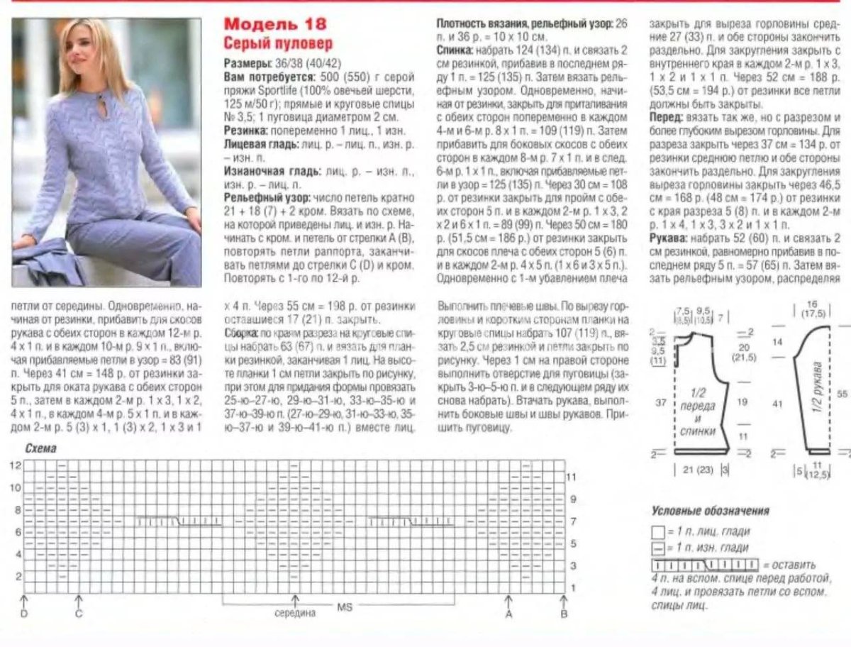 Вязаный пуловер спицами для женщин с описанием и схемой