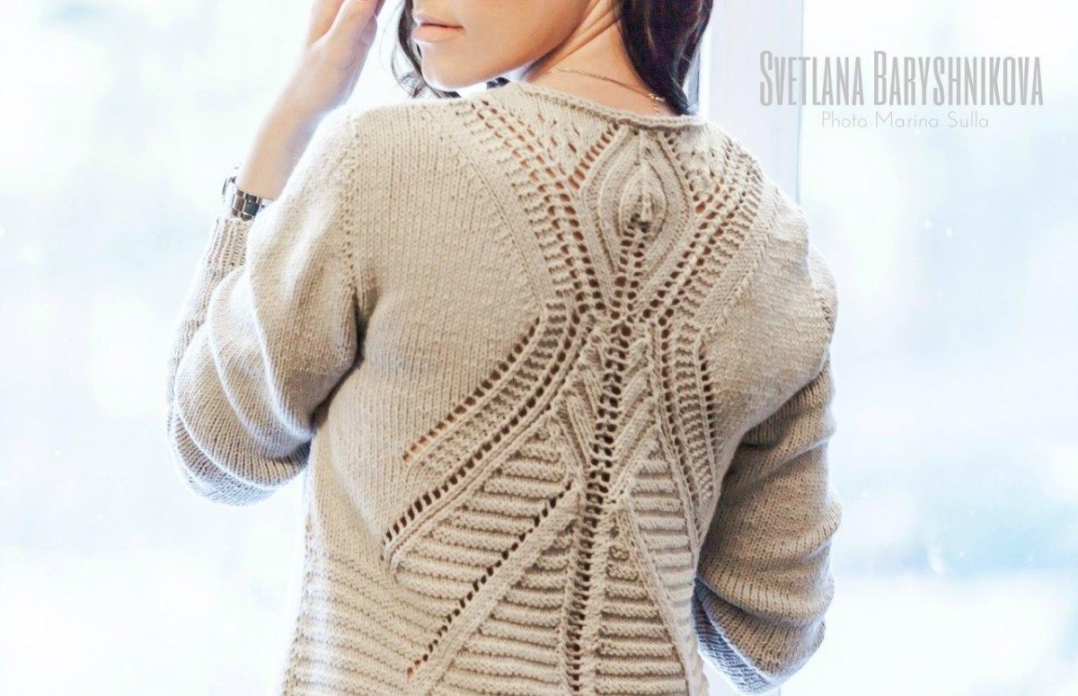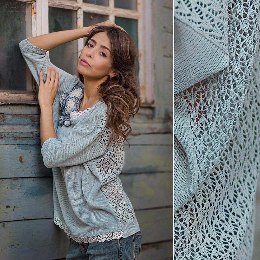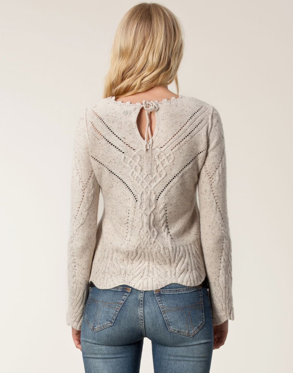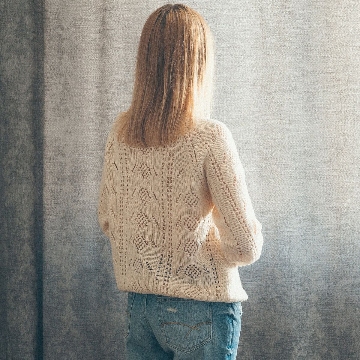 Пуловер женский дизайнер Sachiko Burgin Shifted Eyelet Yoke Sweater