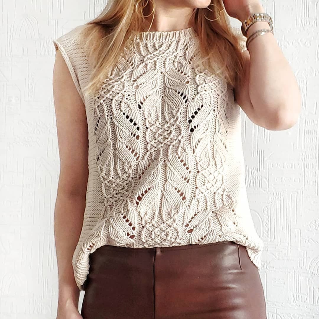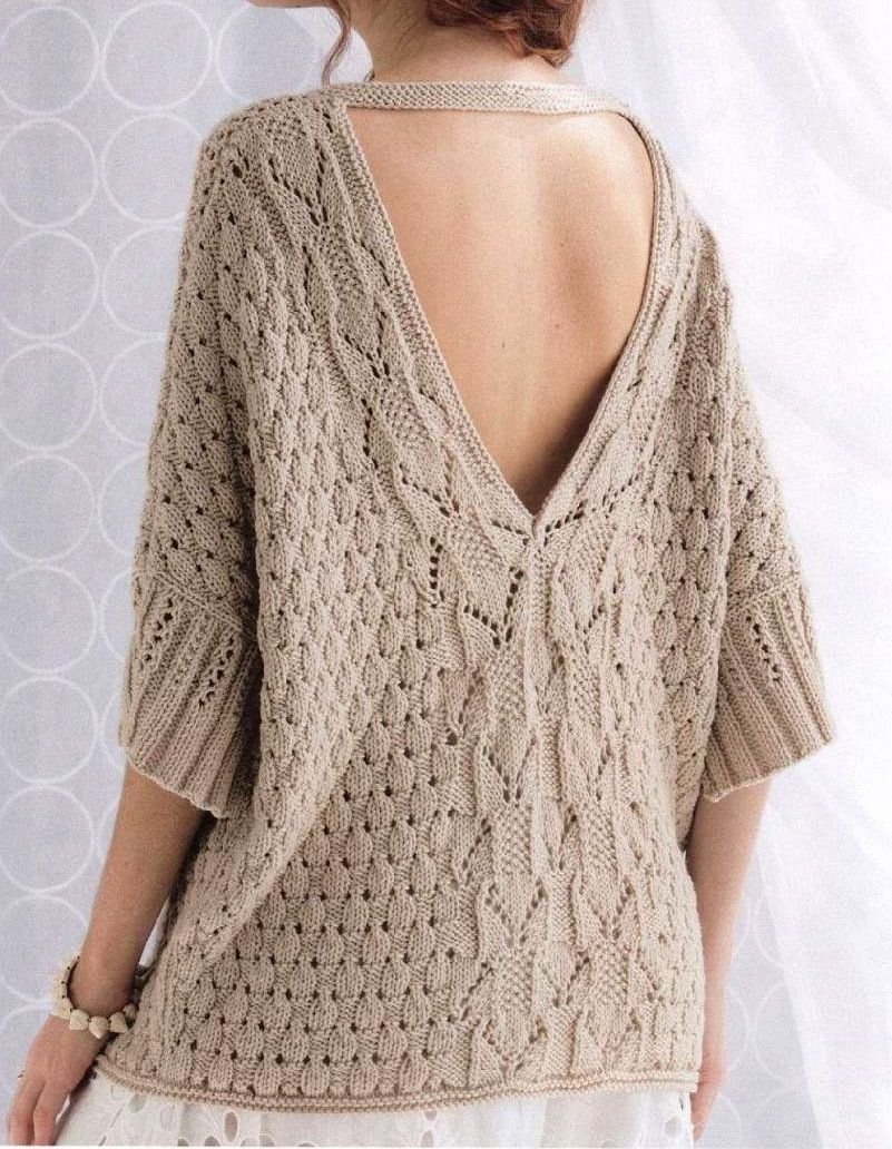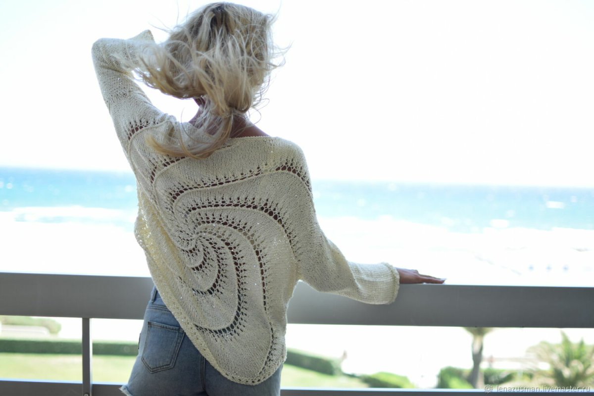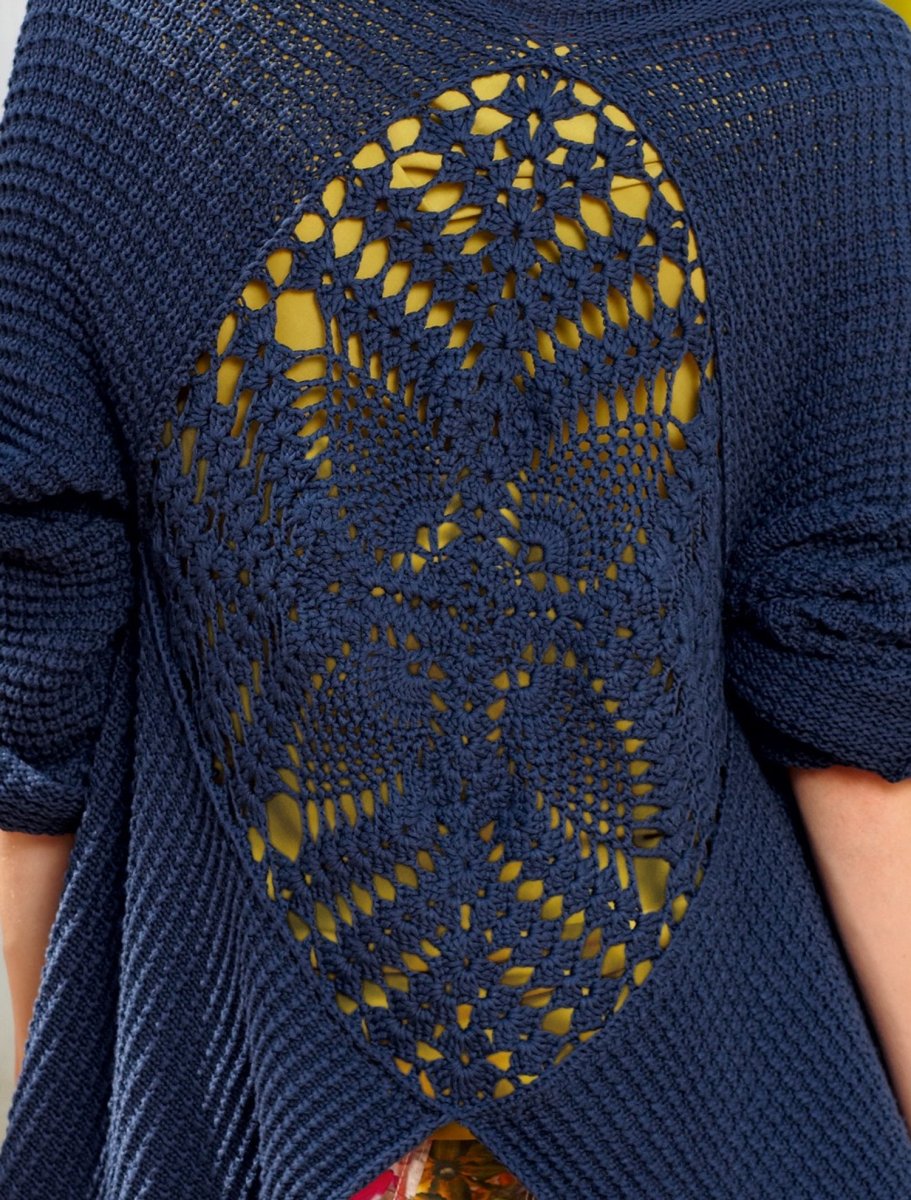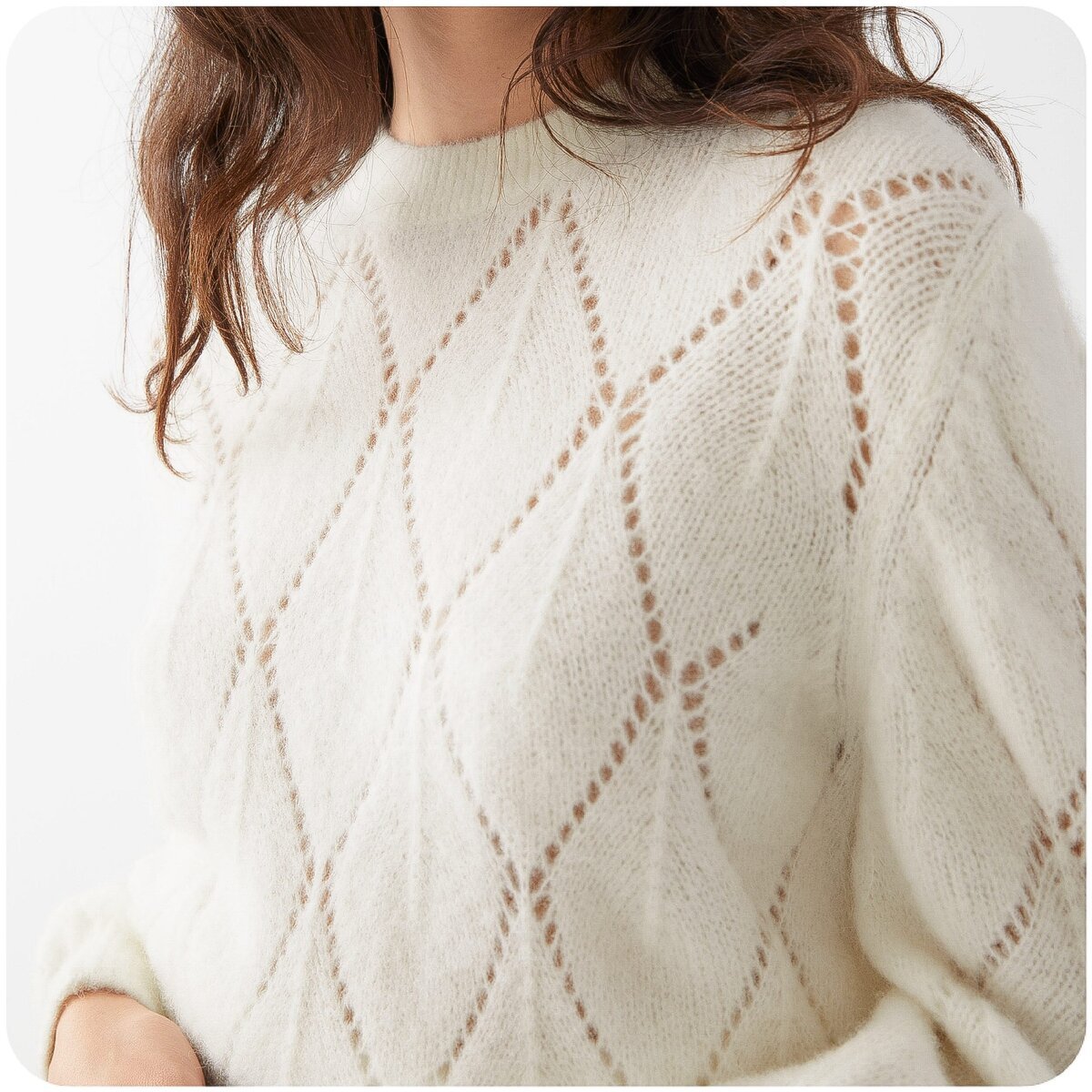 Пуловер женский дизайнер Sachiko Burgin Shifted Eyelet Yoke Sweater