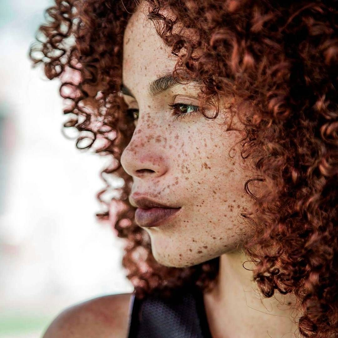 Девушка с кудрявыми волосами и веснушками