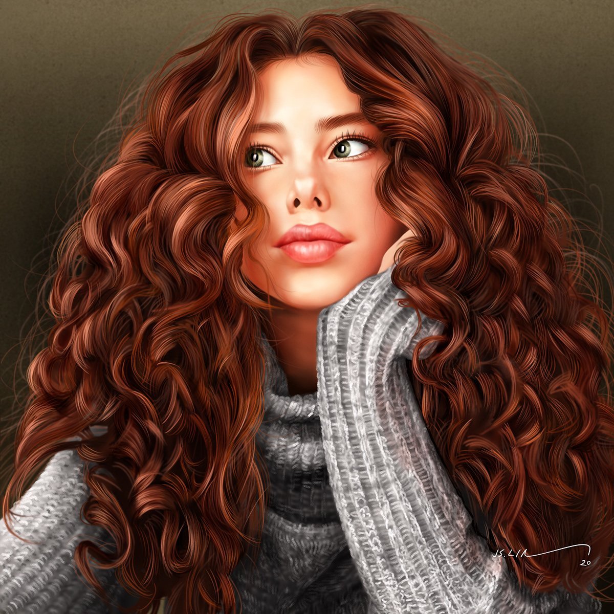 Картина девушка с рыжими волосами