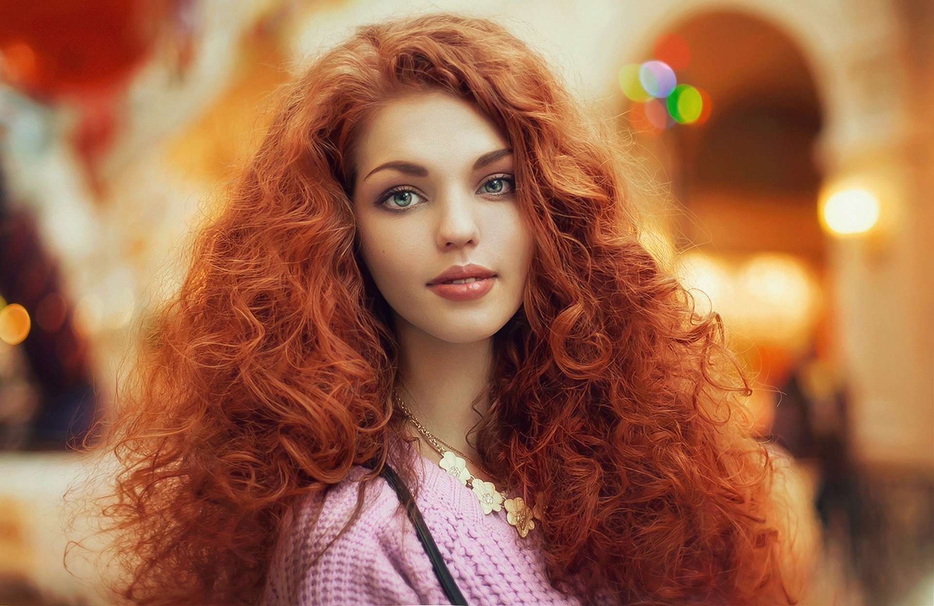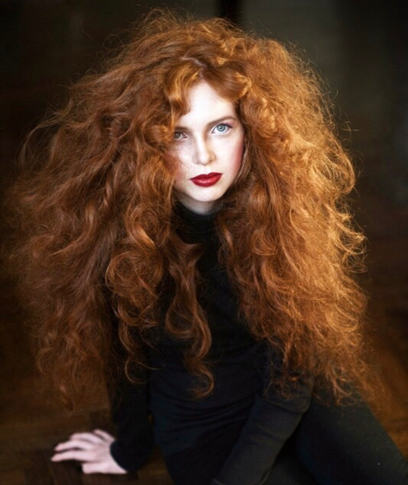 Девушка с пышными рыжими кудрявыми волосами