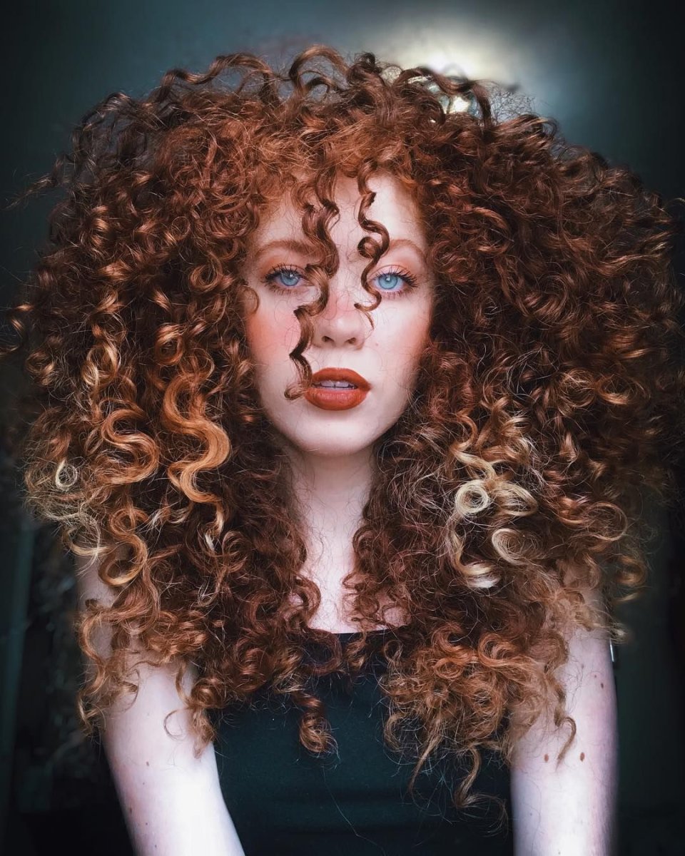 Рыжее мелирование на кудрявые волосы