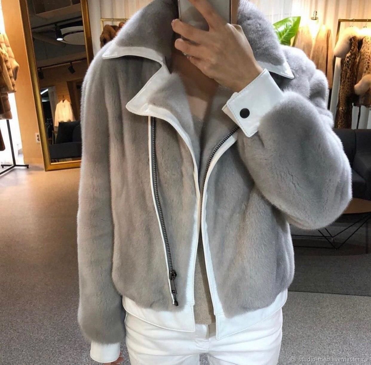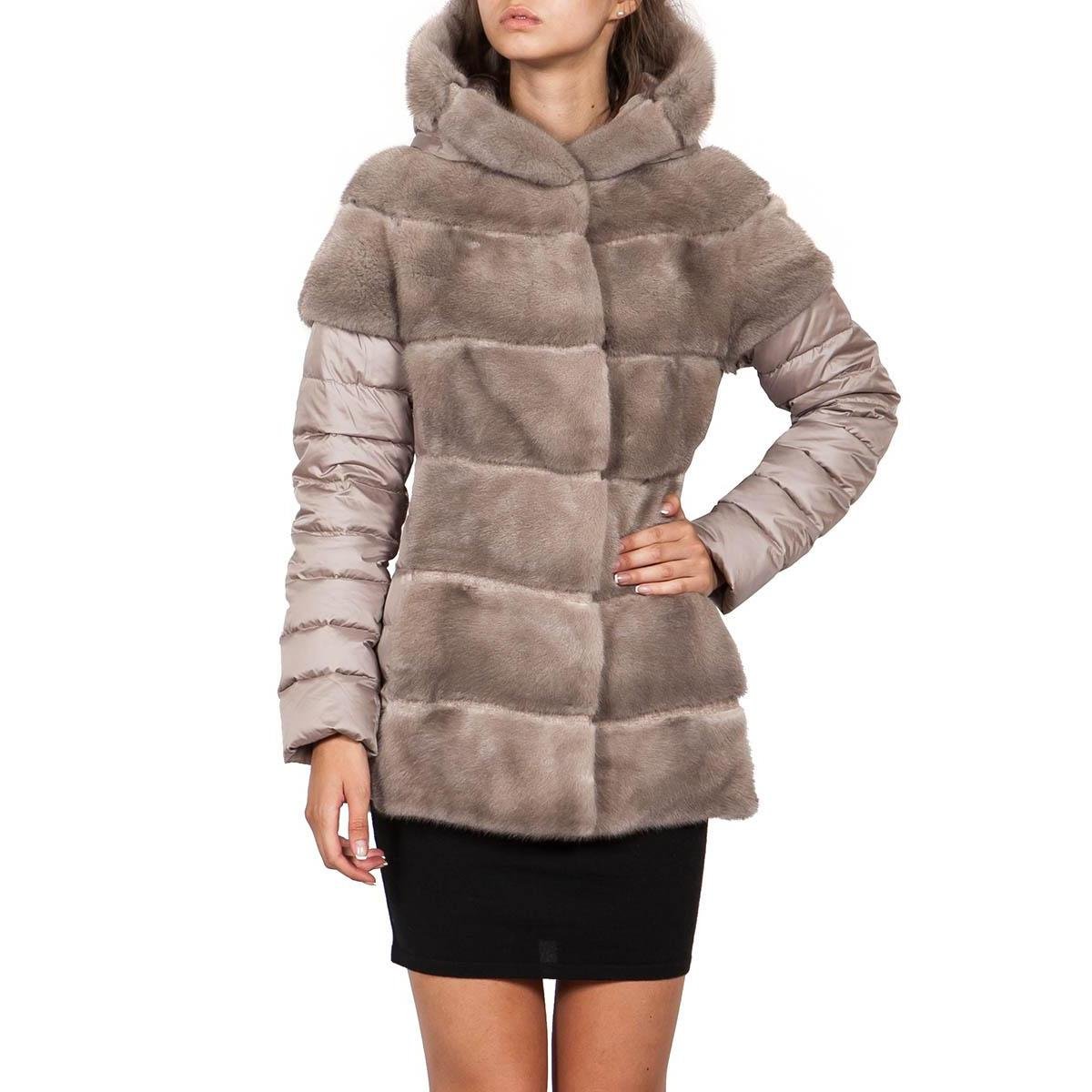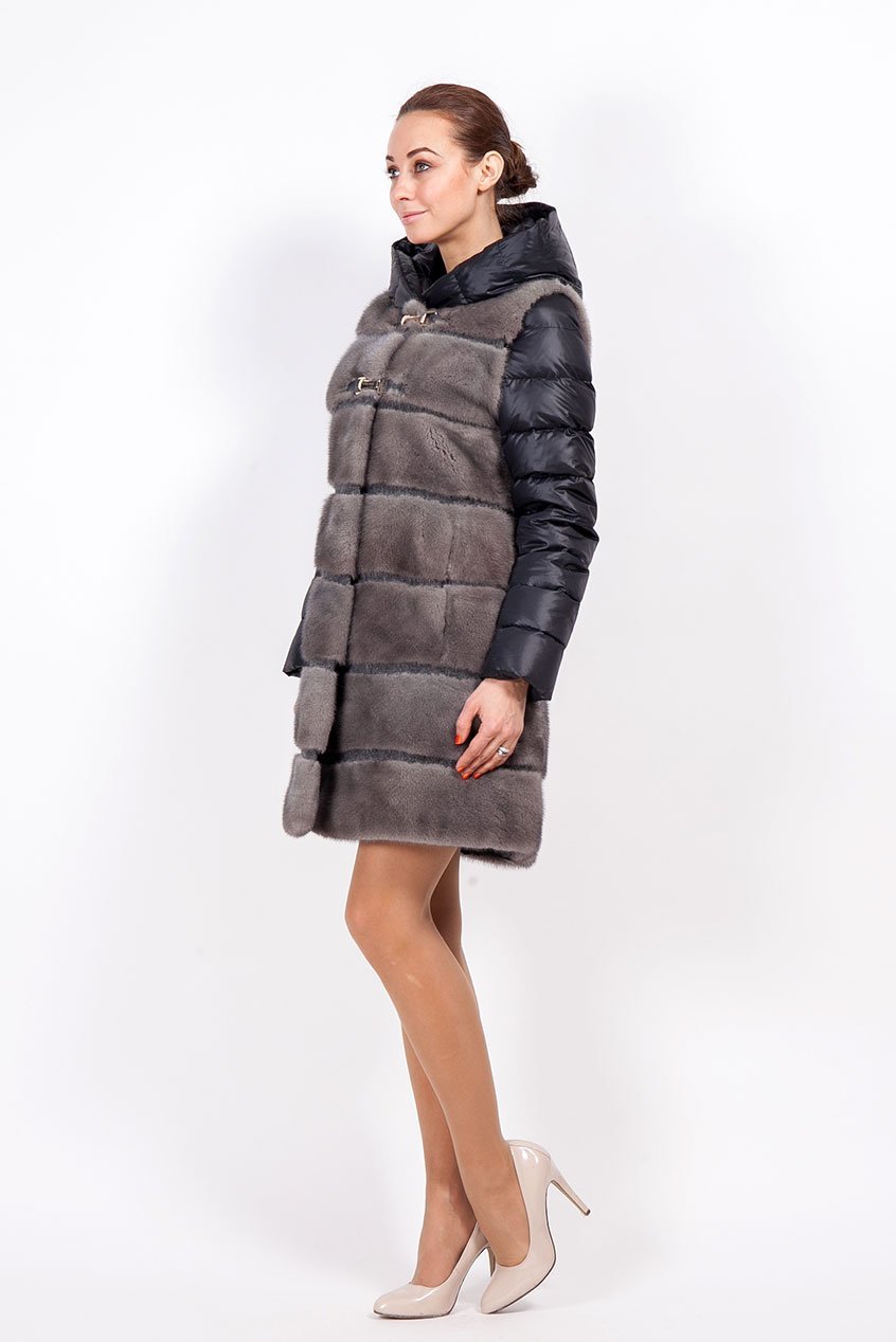 Женская куртка на пуху с мехом норки(rff033/08-серый)