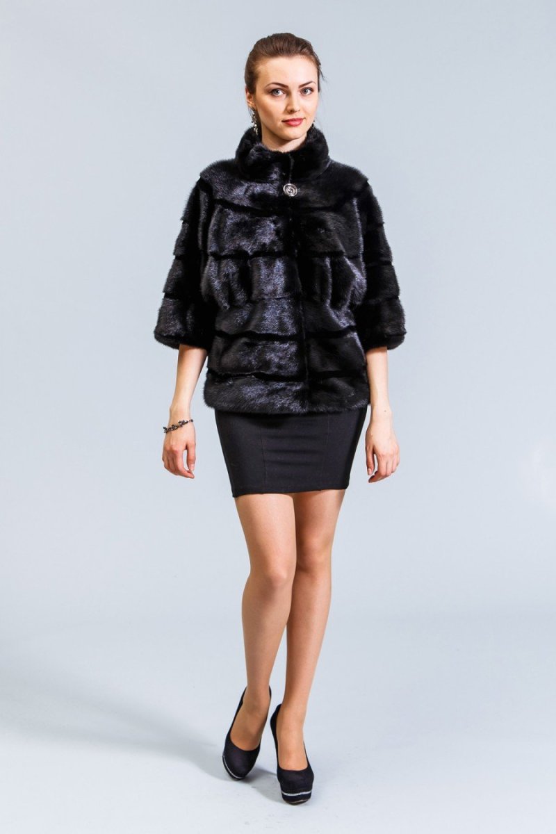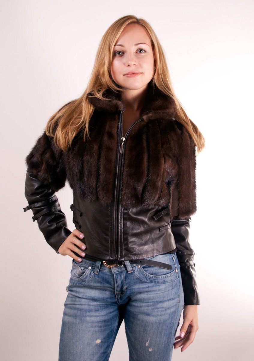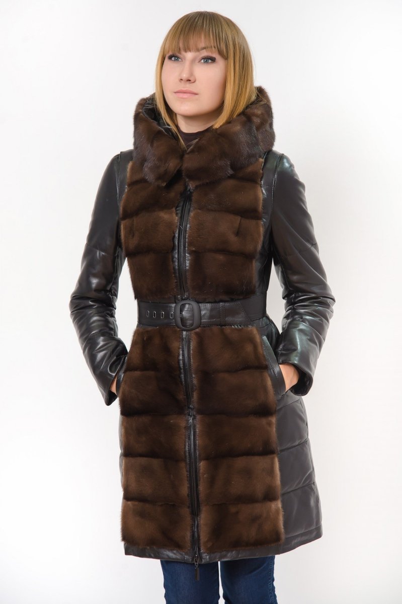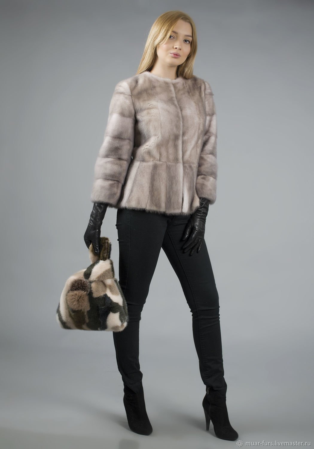 Женская куртка на пуху с мехом норки(rff033/08-серый)