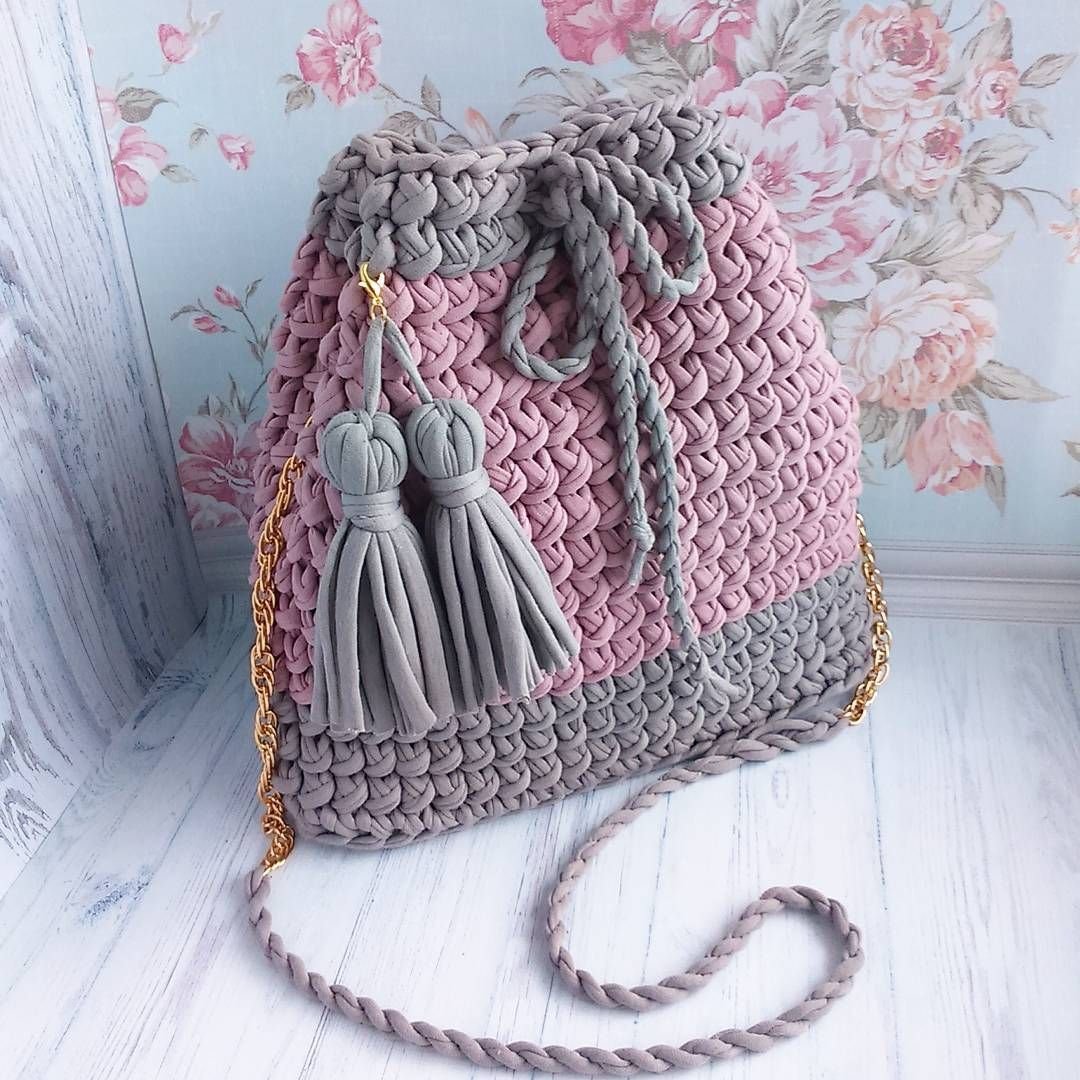 Сумка торба из трикотажной пряжи крючком мастер класс