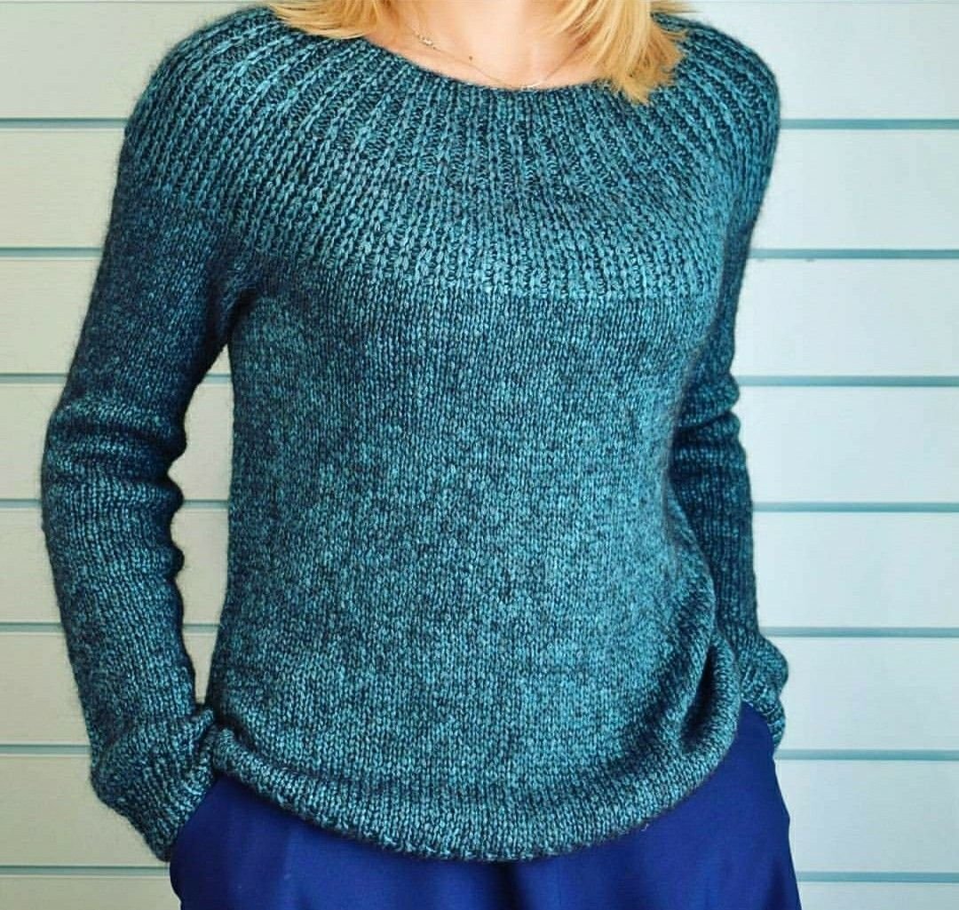Свитер реглан сверху спицами