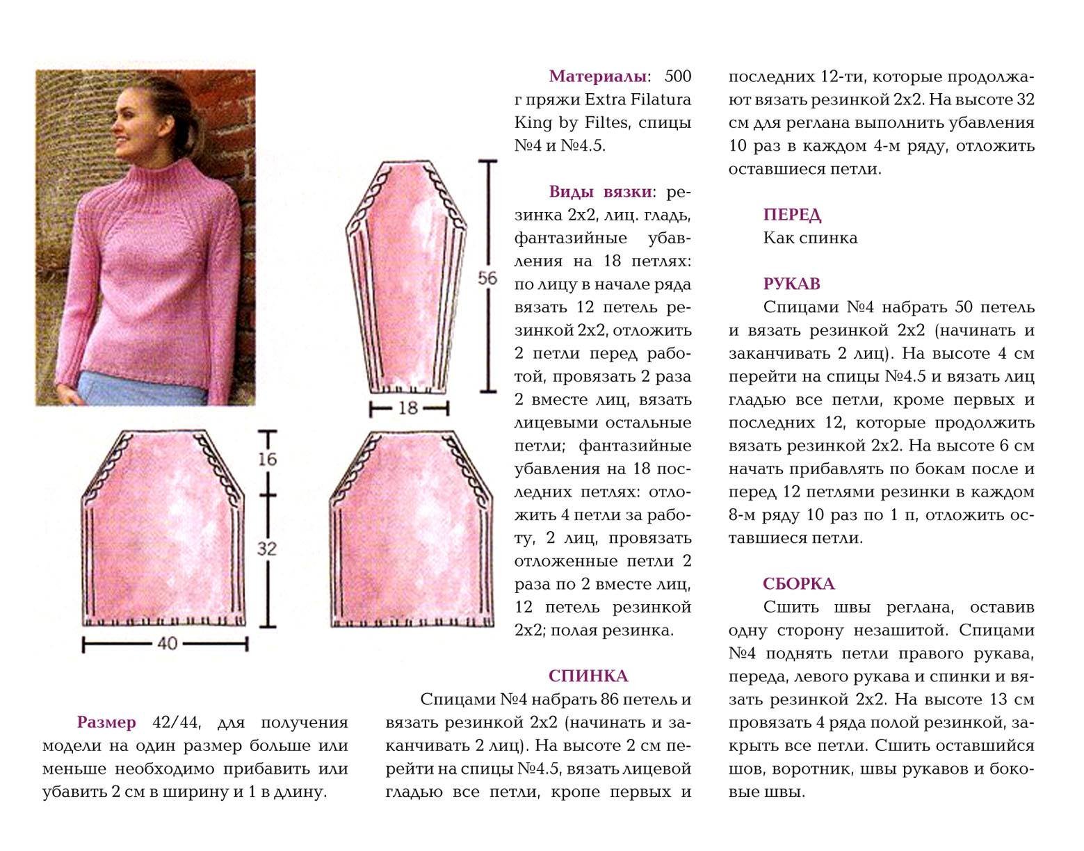 Свитер реглан женский спицами схема
