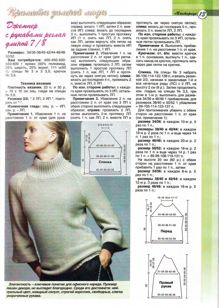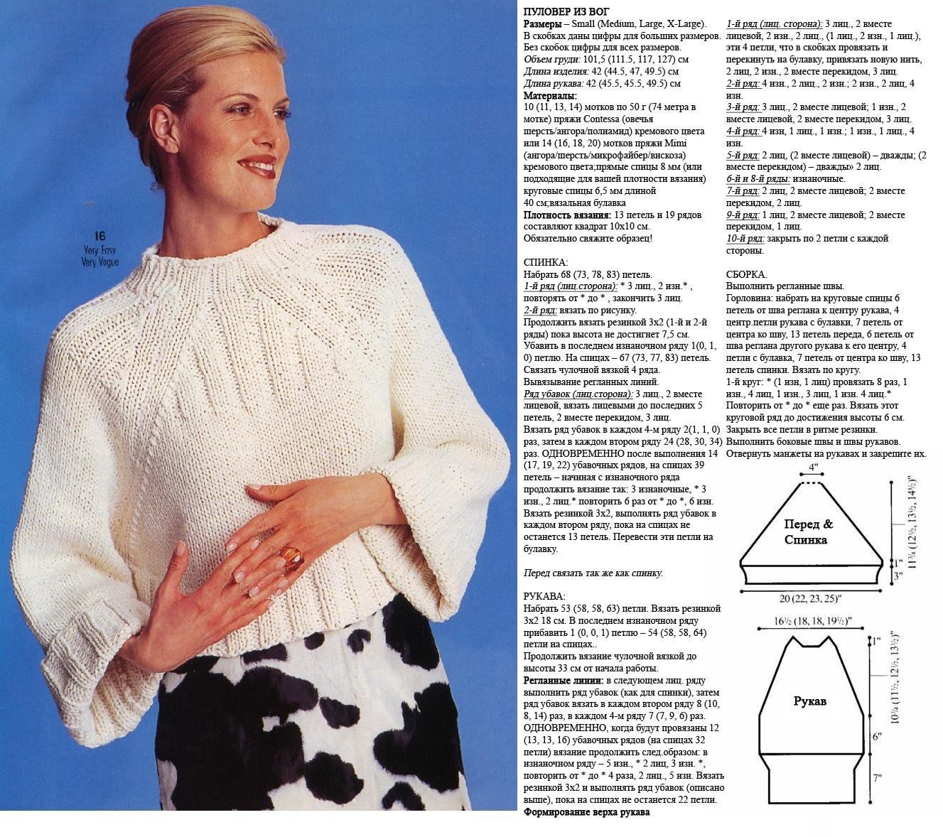 Вязание спицами свитер рукавом реглан