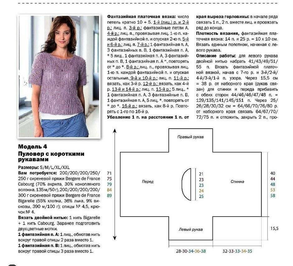 Пуловер с коротким рукавом спицами женский схема и описание