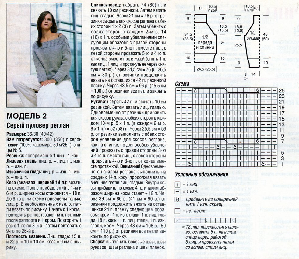 Схема вязания пуловера реглан сверху описание