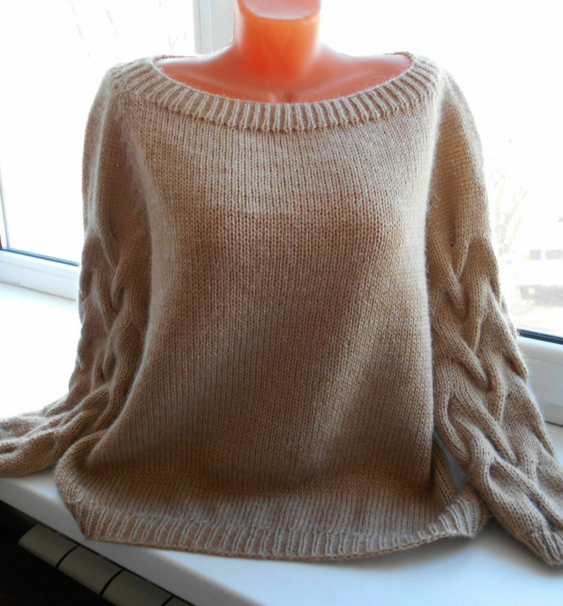 Свитер связанный регланом сверху