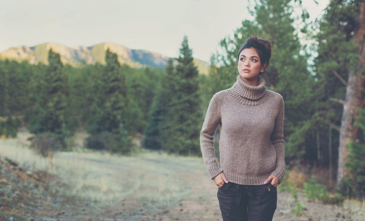 Свитер с высоким воротником спицами