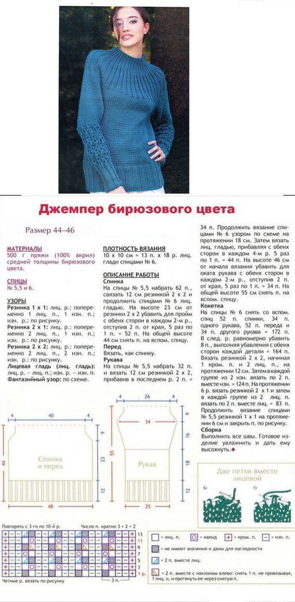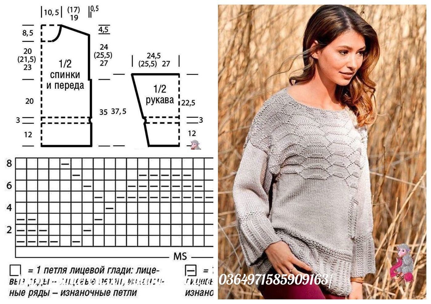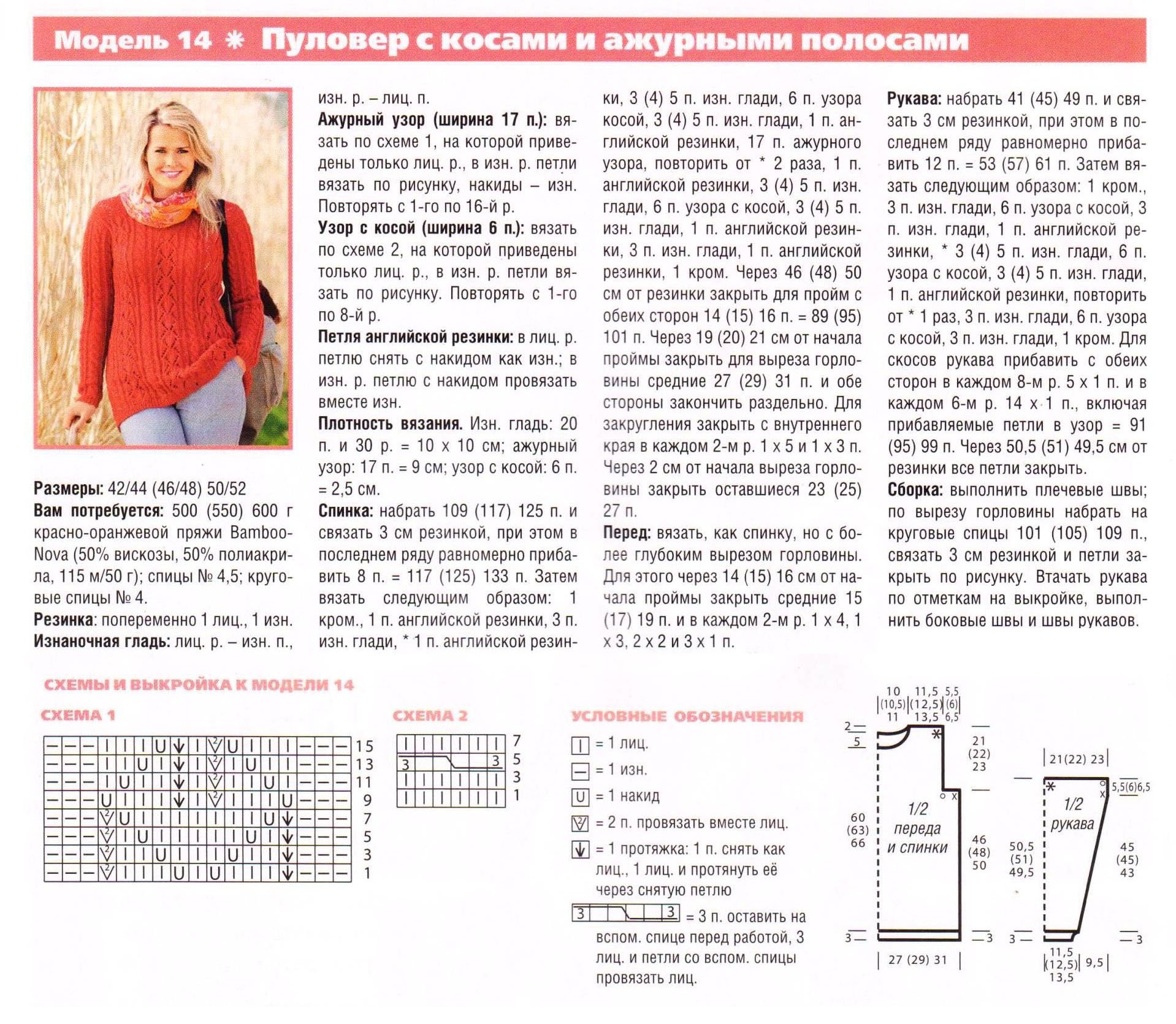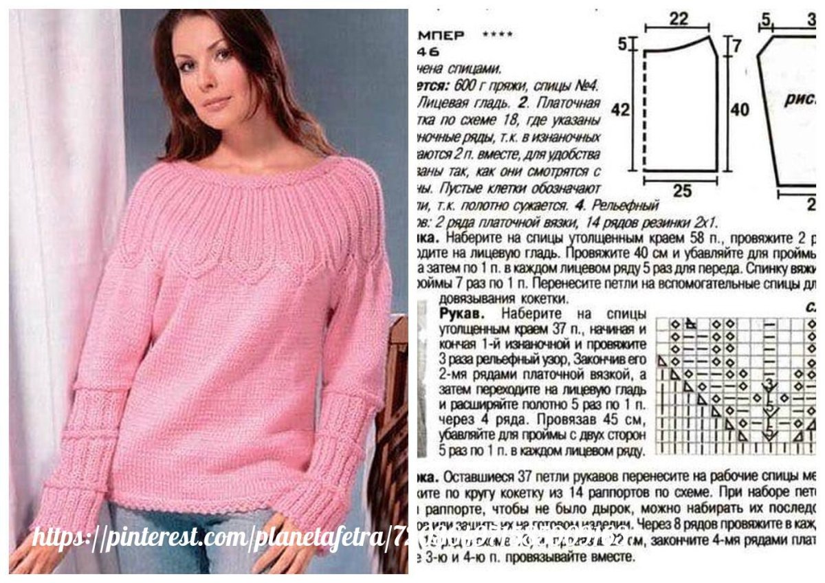 Свитер женский вязаный спицами с описанием и схемой 48 размера