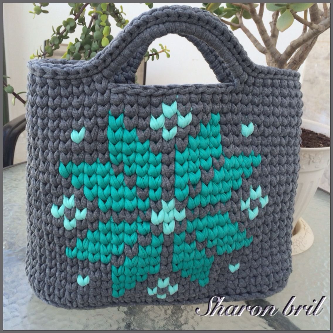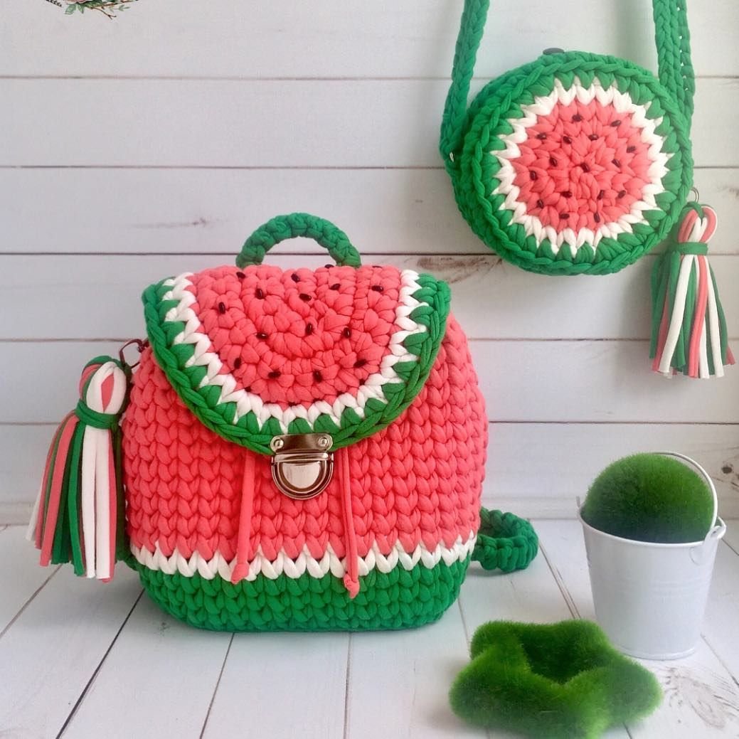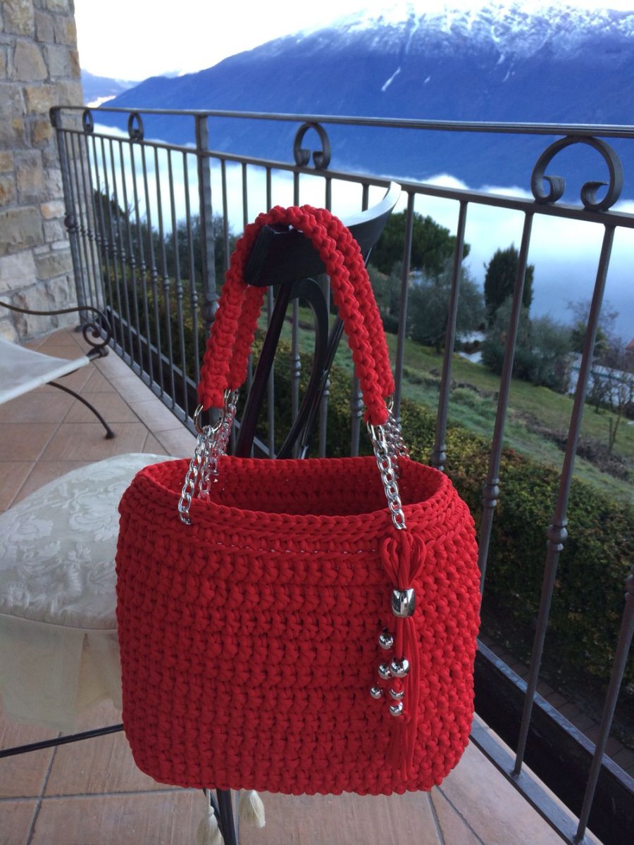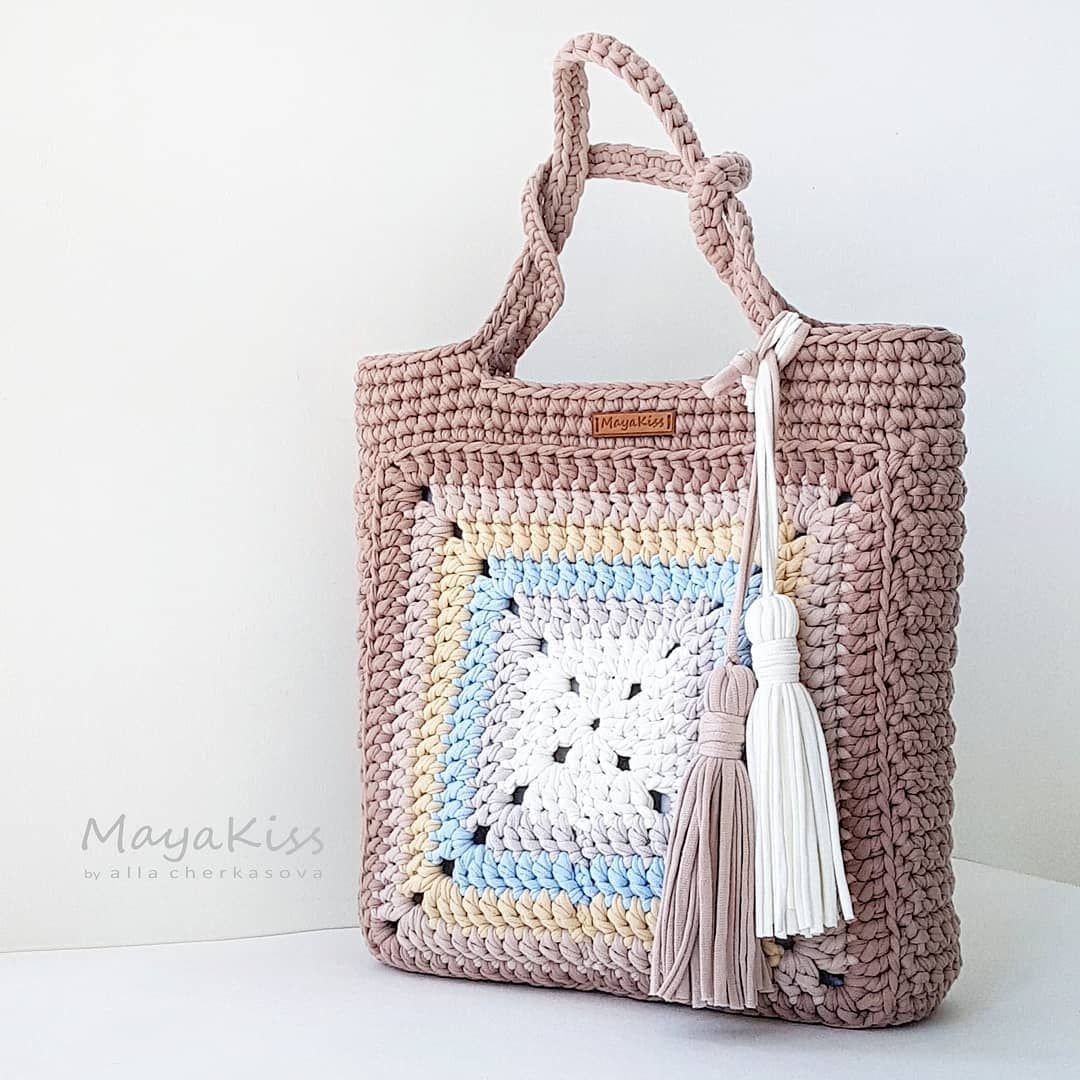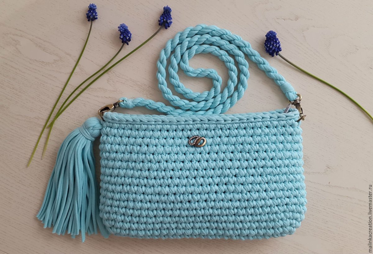 Схема вязания сумки из трикотажной пряжи крючком