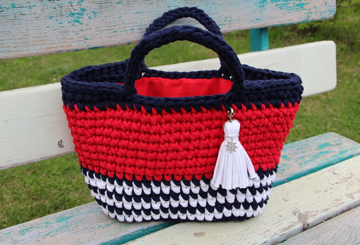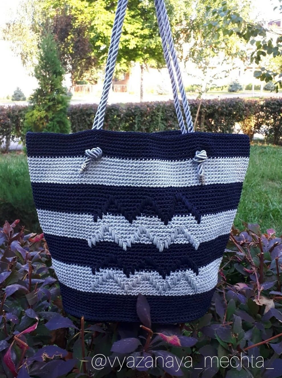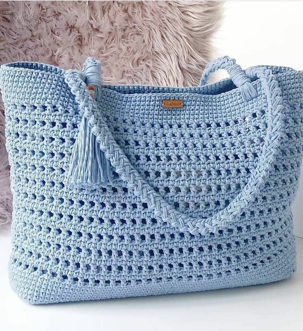 Вязаная пляжная сумка из трикотажной пряжи
