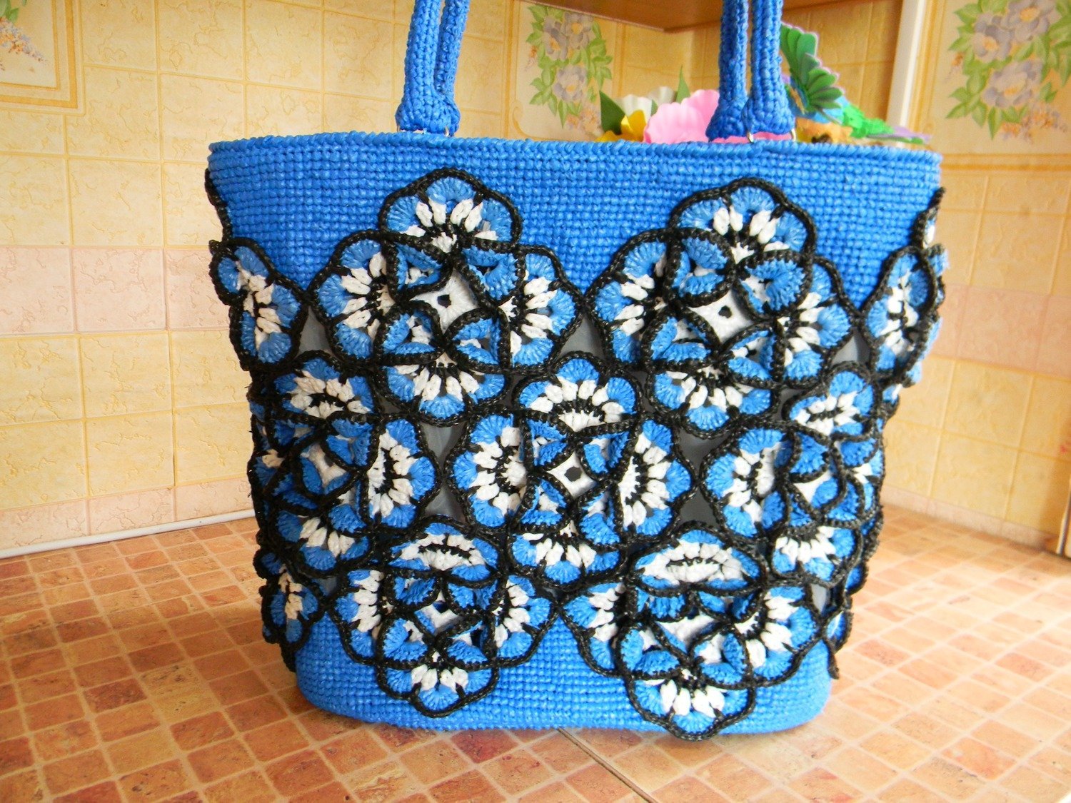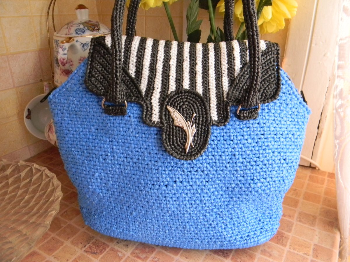 Сумка ручной работы вязаная крючком из полипропилена