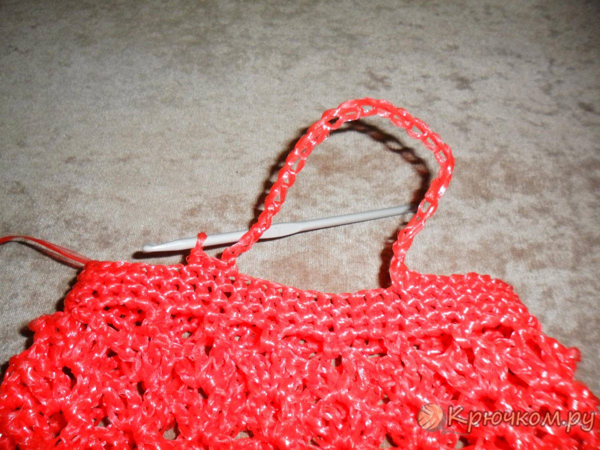 Красная сумочка из полипропилена связать