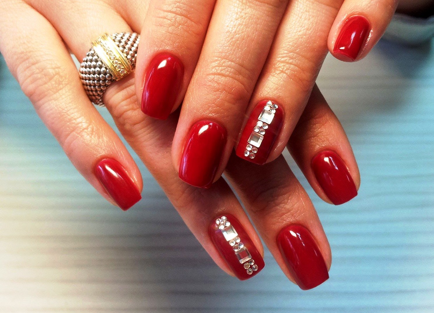 Красный маникюр с растяжкой