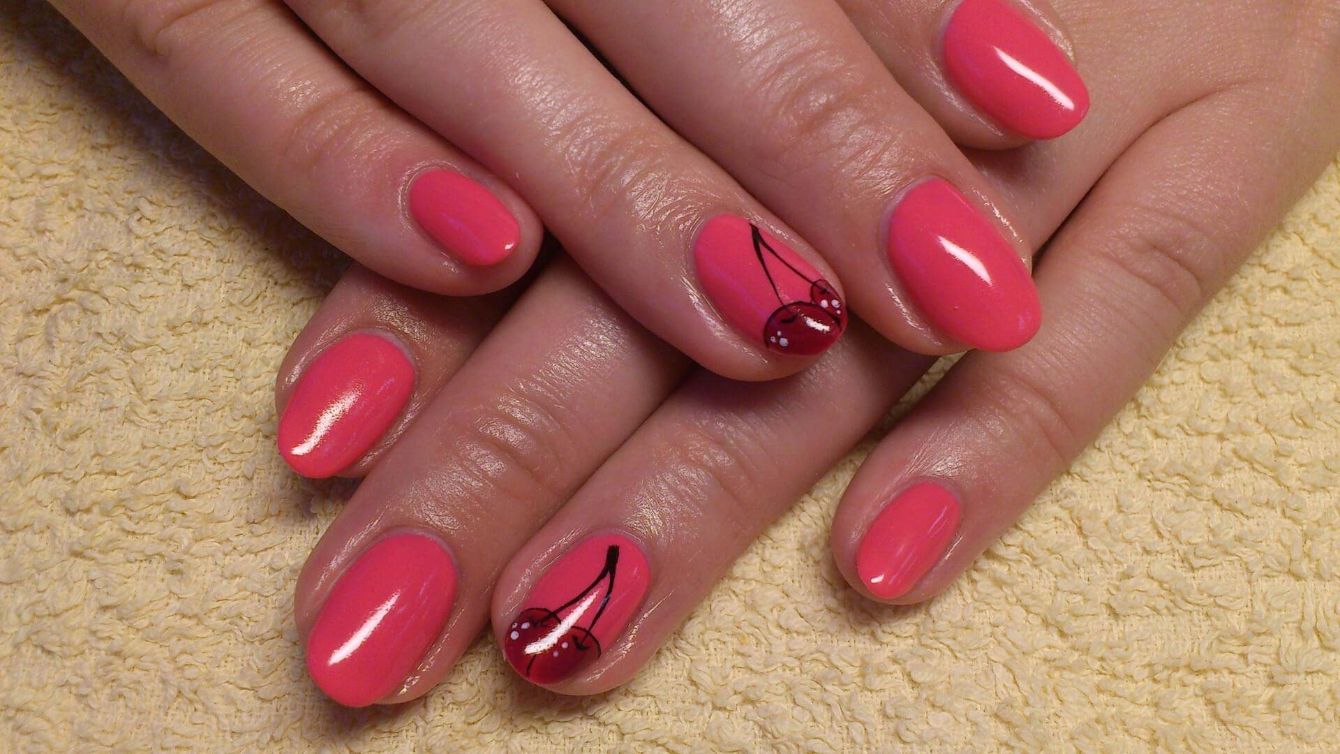 Шеллак на короткие ногти красный
