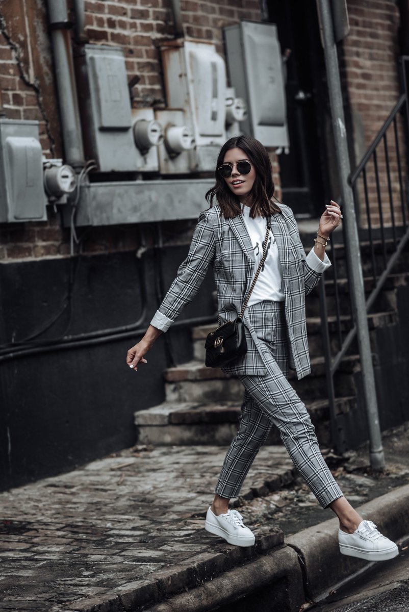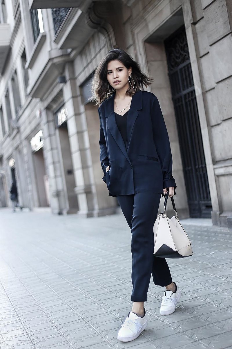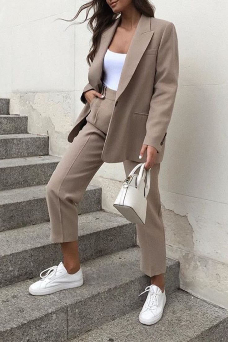 Брючный костюм с кроссовками