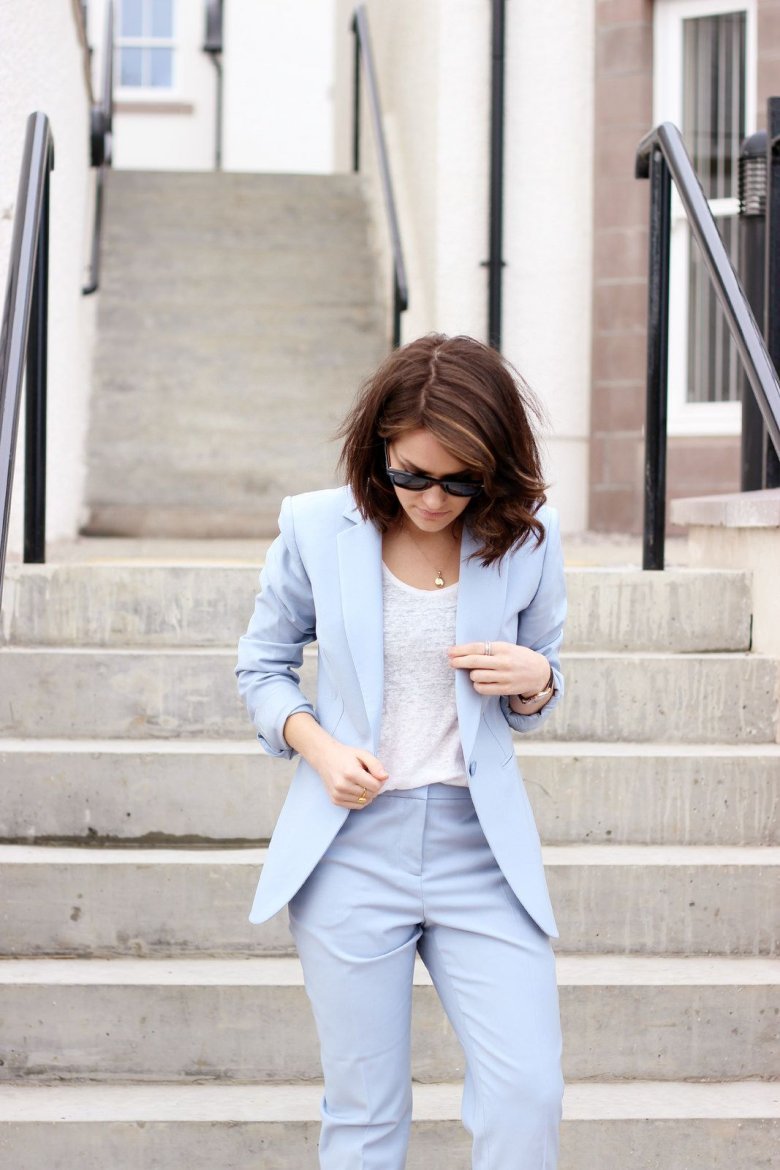 Брючный костюм небесно голубого цвета женский