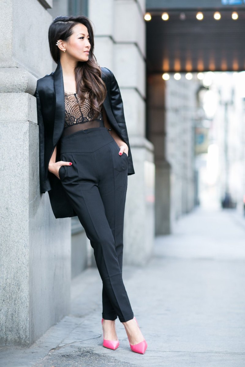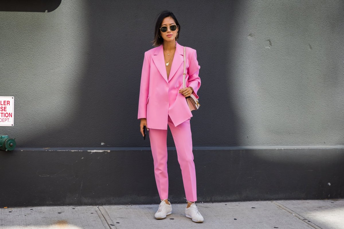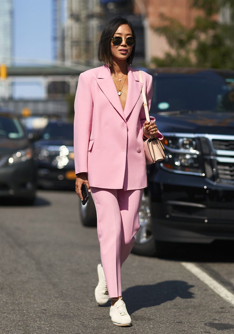 Луки с розовым костюмом