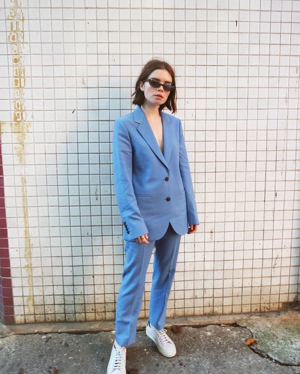 Синий брючный костюм женский с кедами