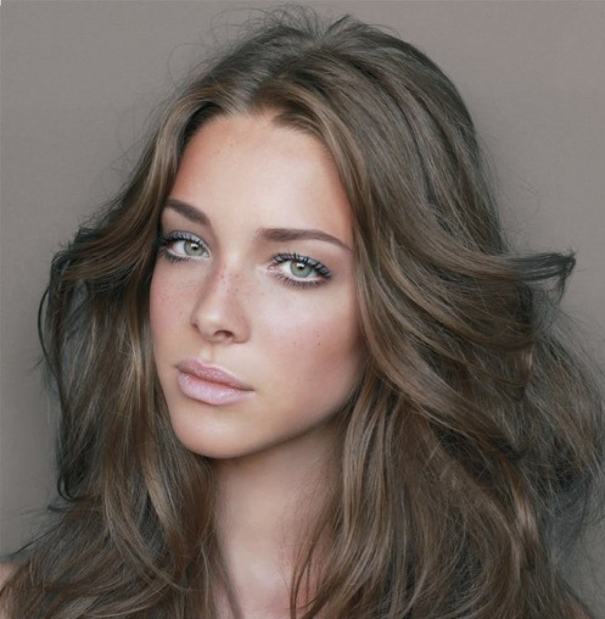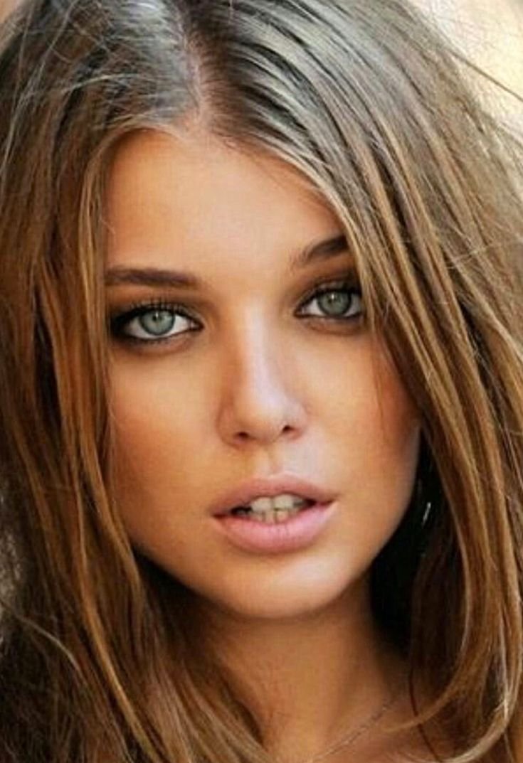 Шатенка с серо-зелеными глазами