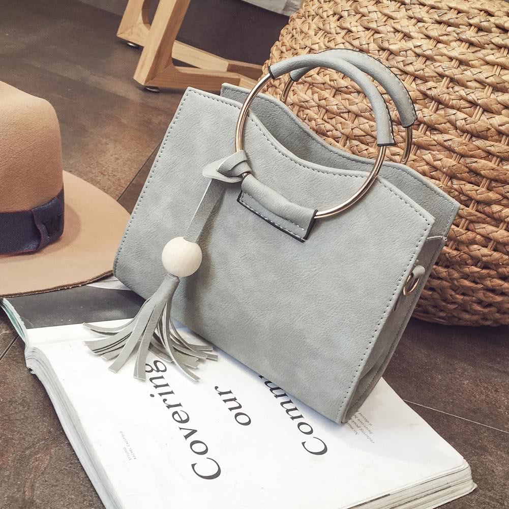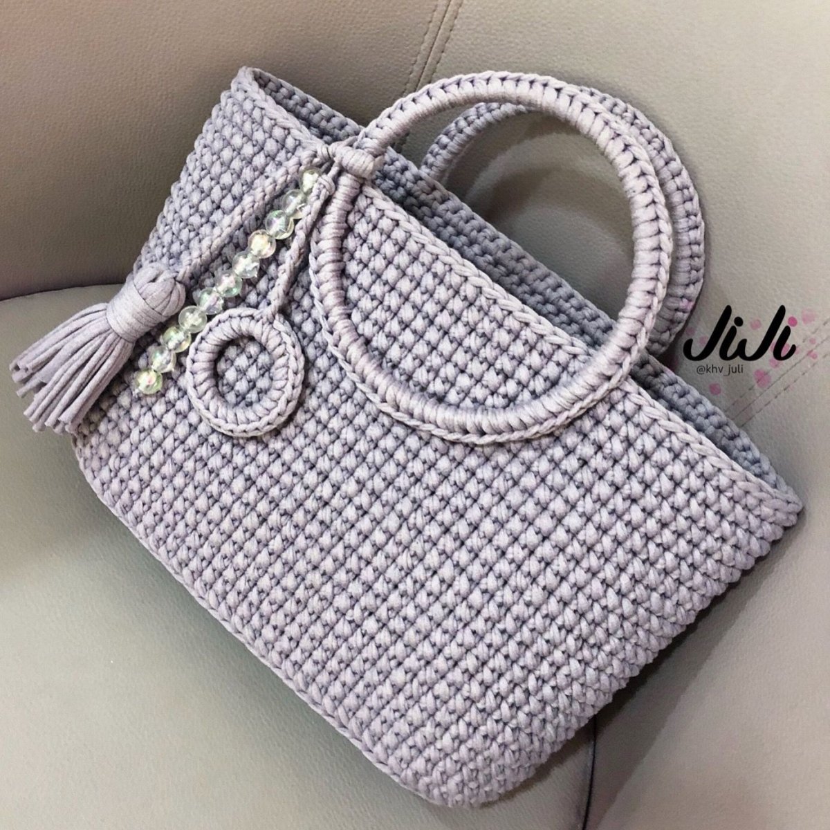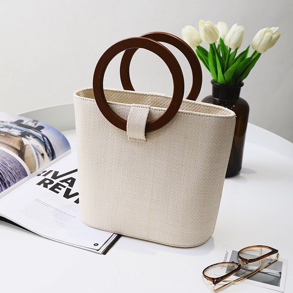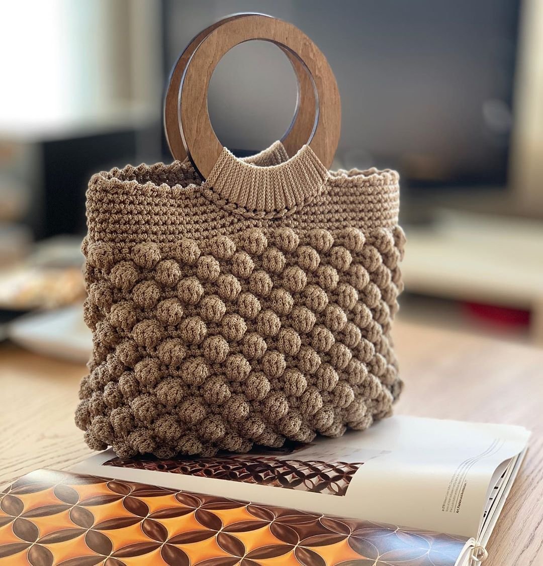 Сумка из трикотажной пряжи тоут с деревянными ручками