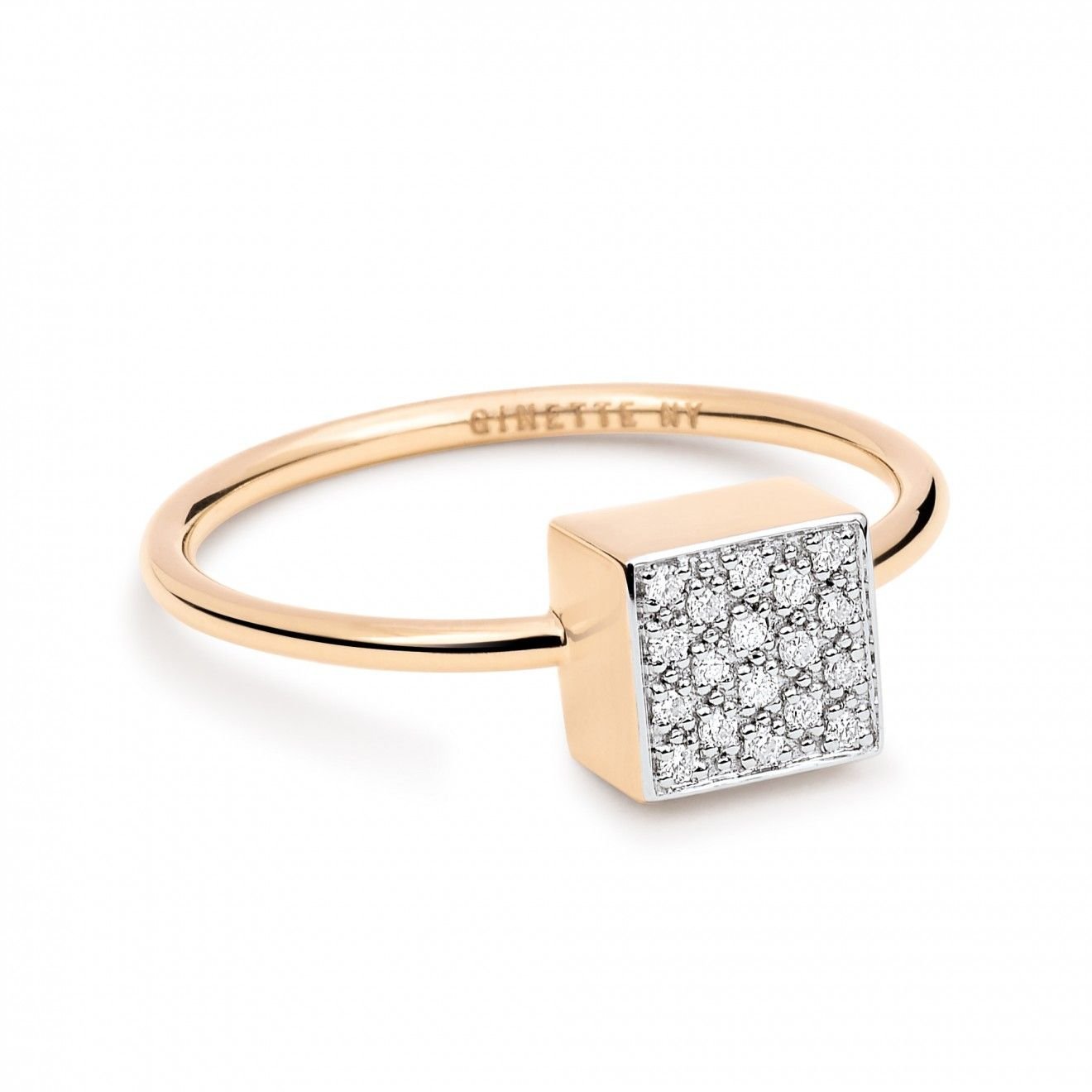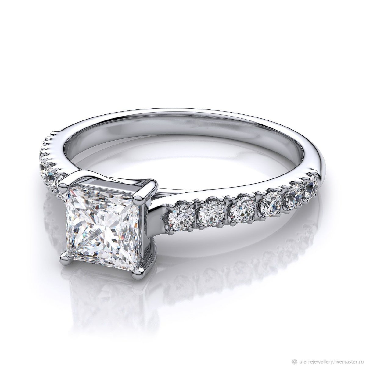Кольцо с черным бриллиантом из белого золота огранка принцесса