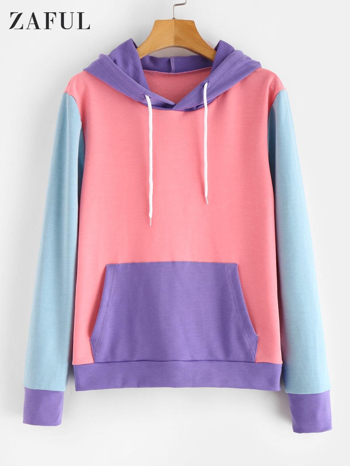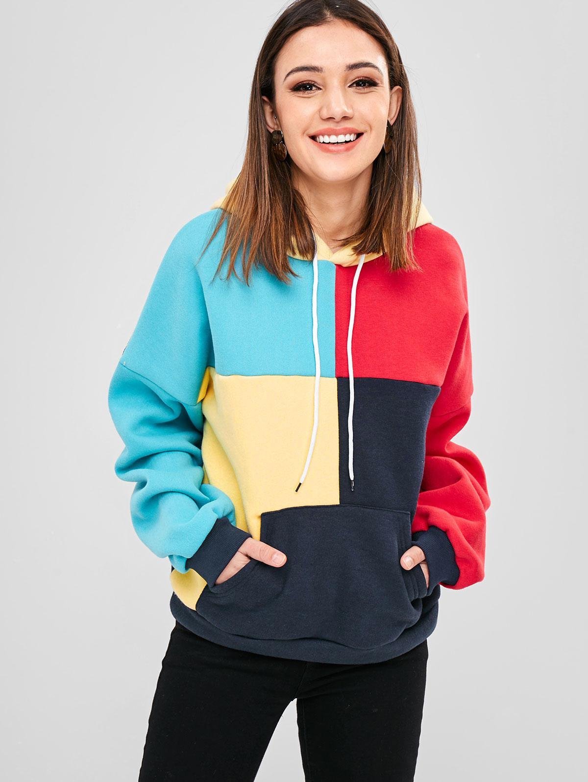 Толстовки с капюшоном женские колор блок