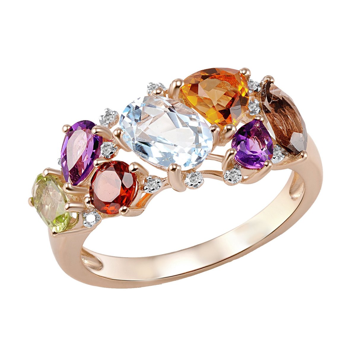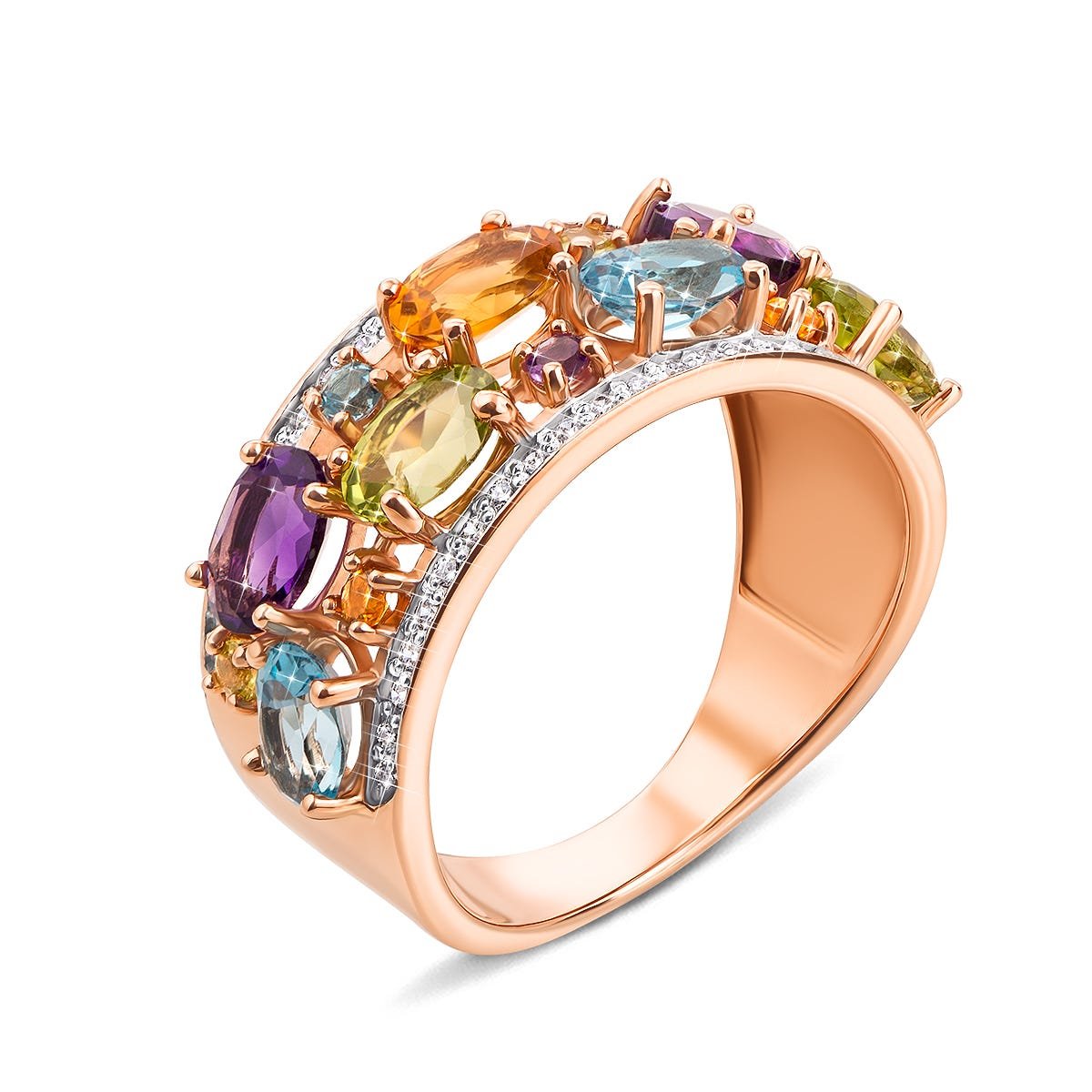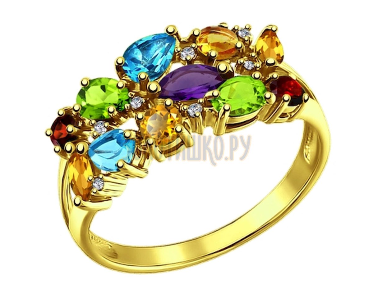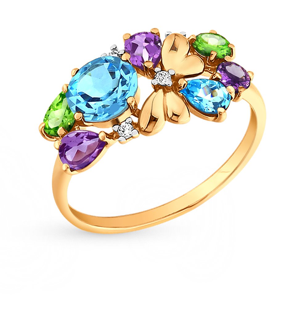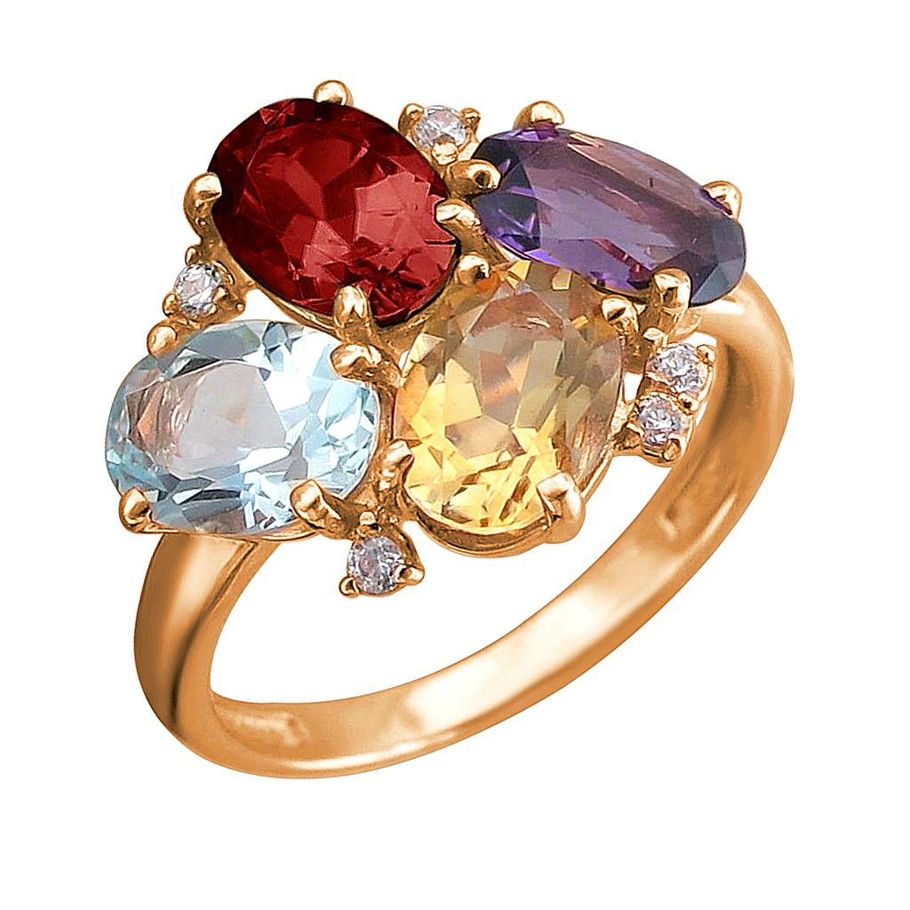 Золотое кольцо с гранатом аметистом цитрином Эстет