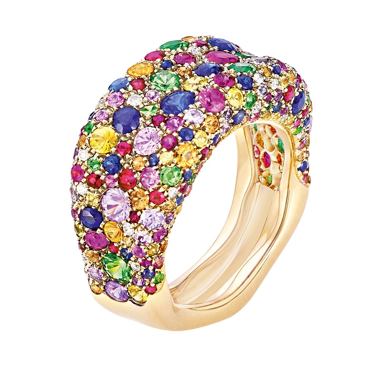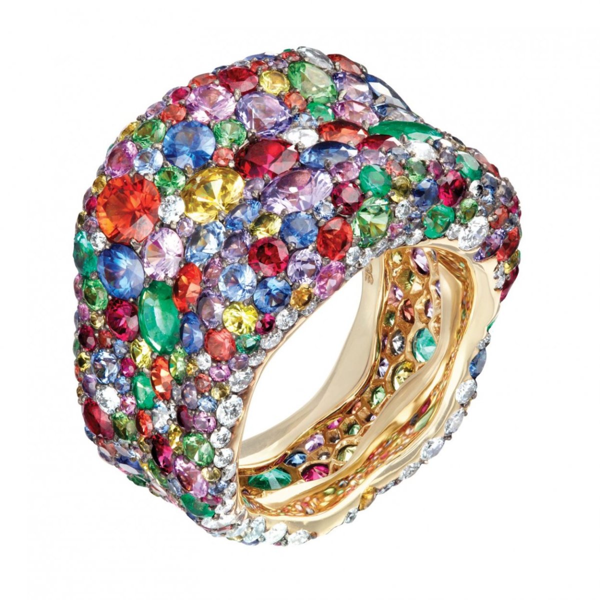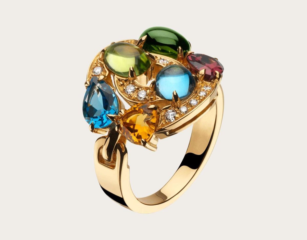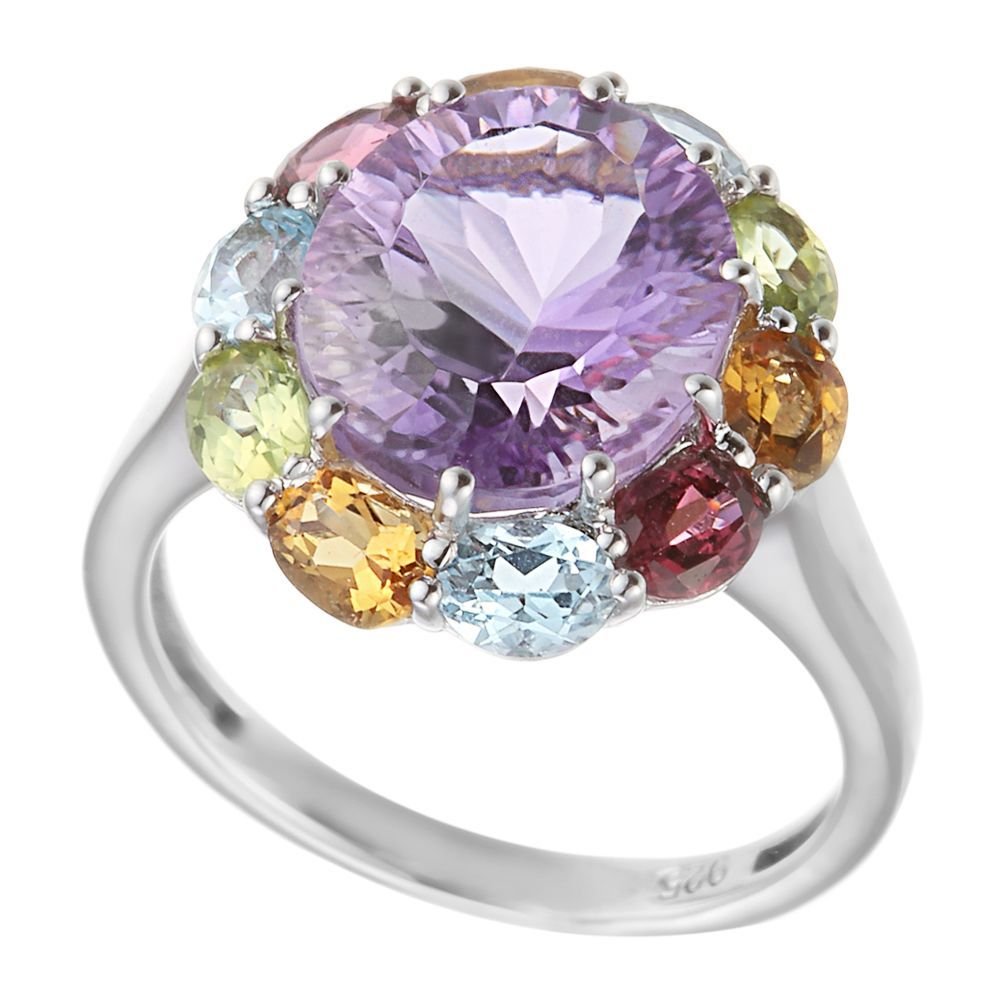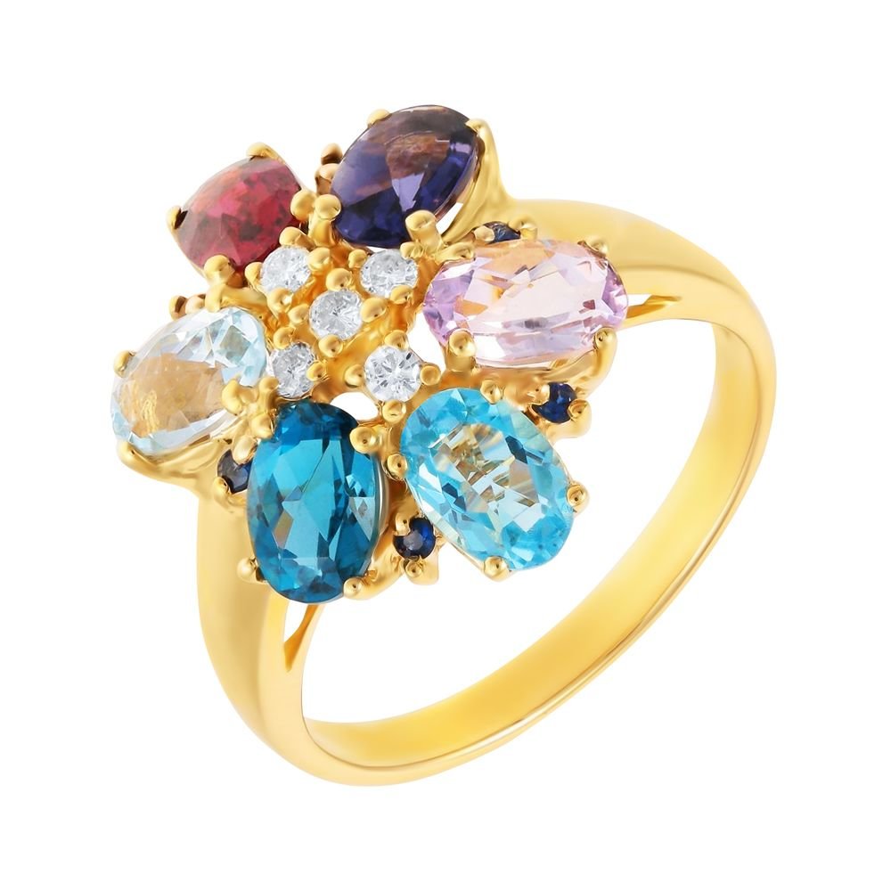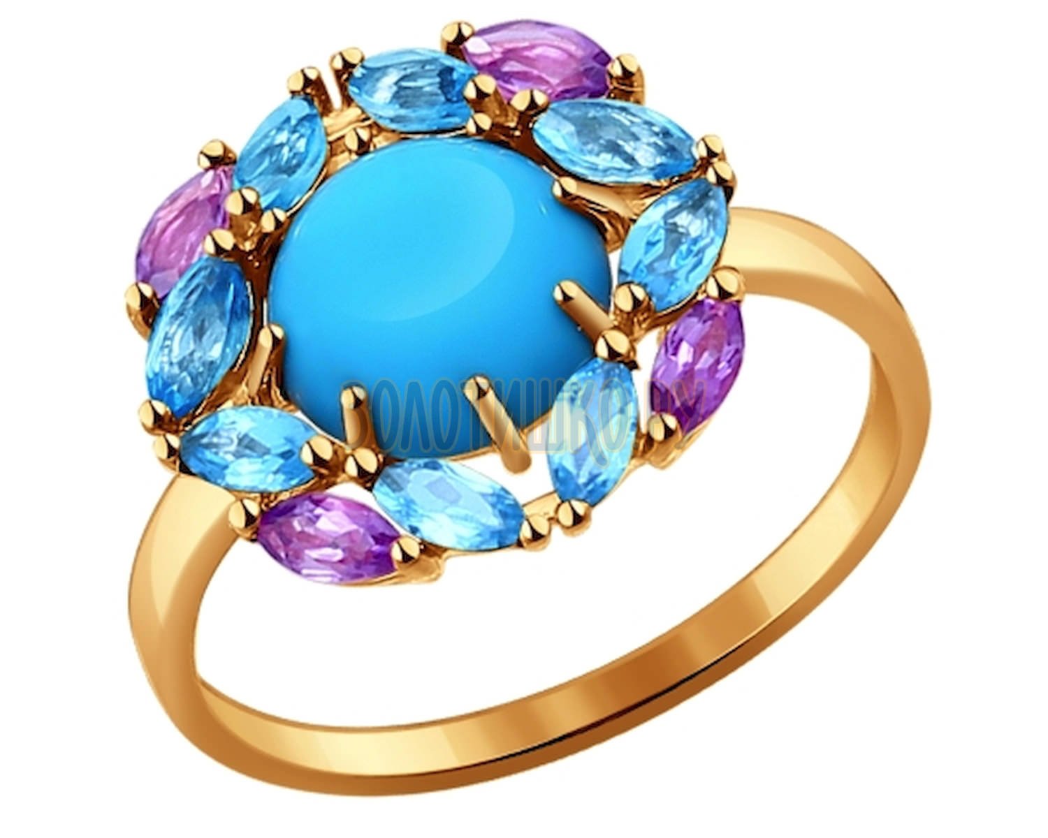 Золотое кольцо с гранатом аметистом цитрином Эстет