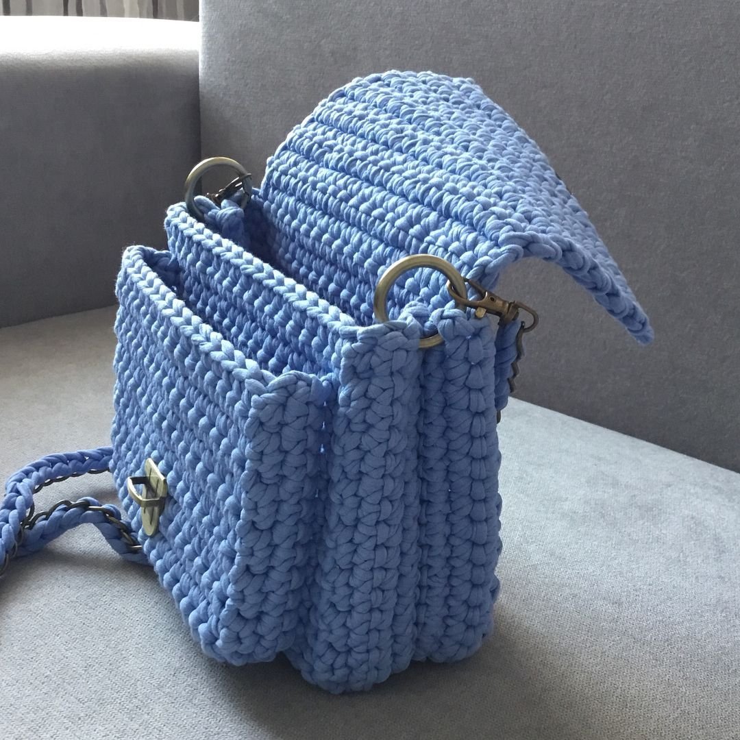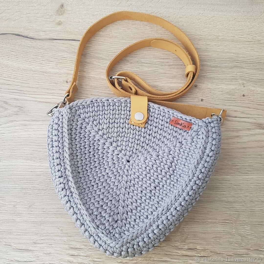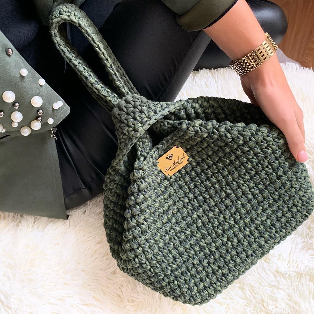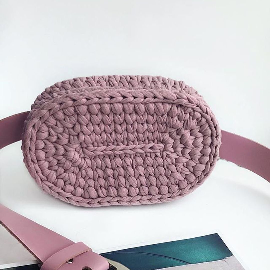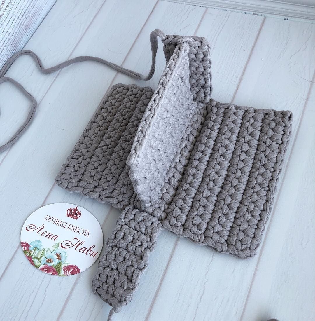 Сумка Ракушка из трикотажной пряжи с деревянными ручками