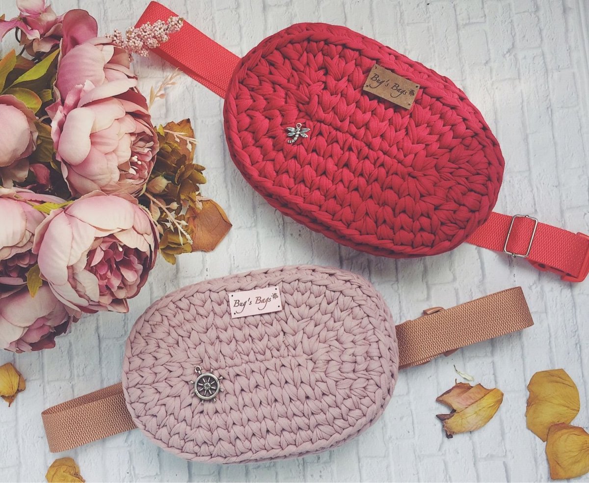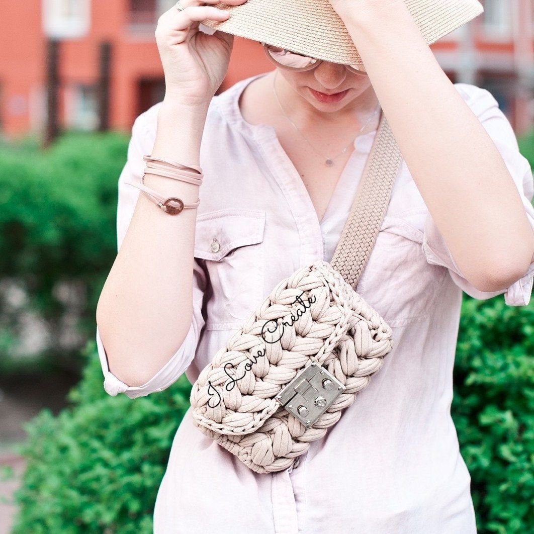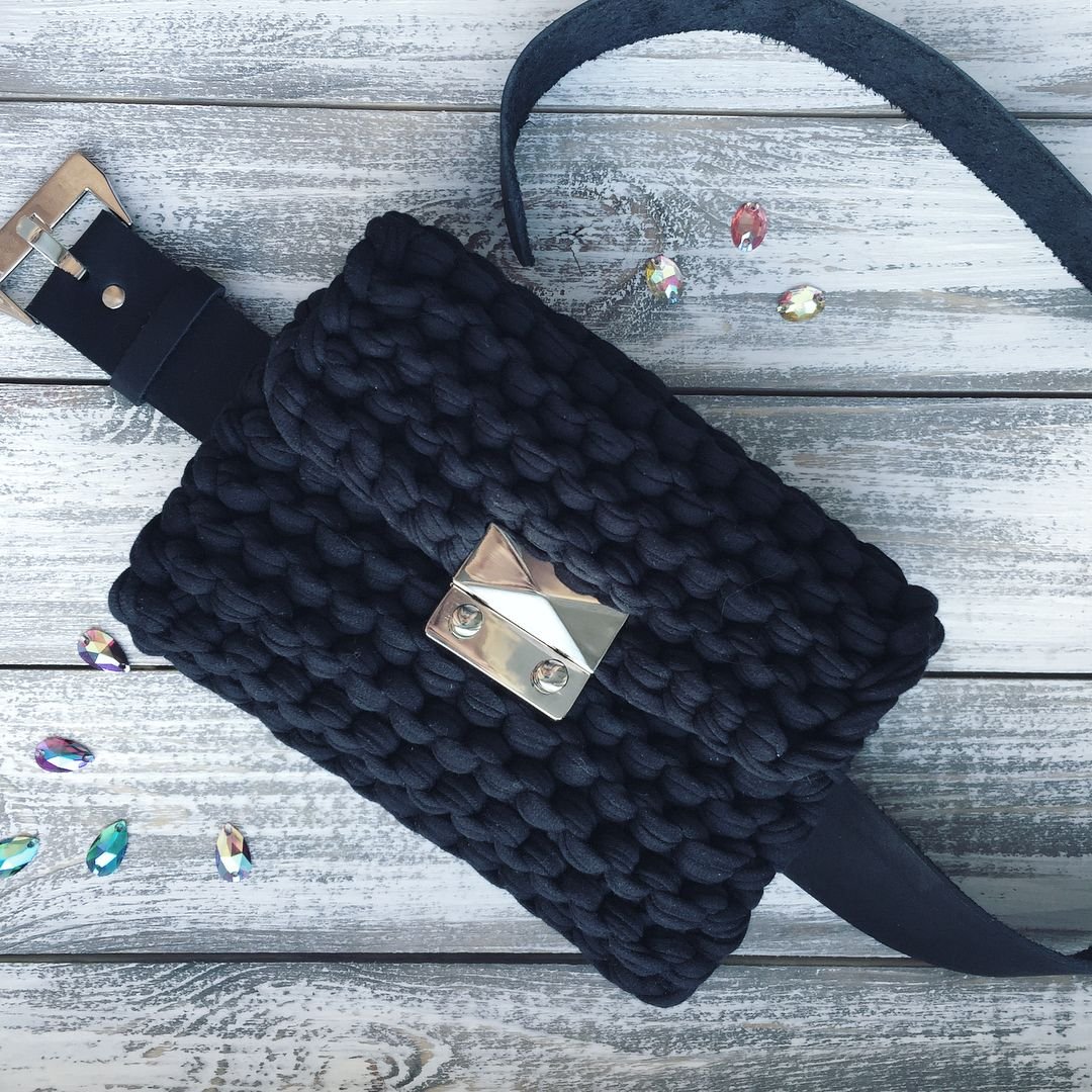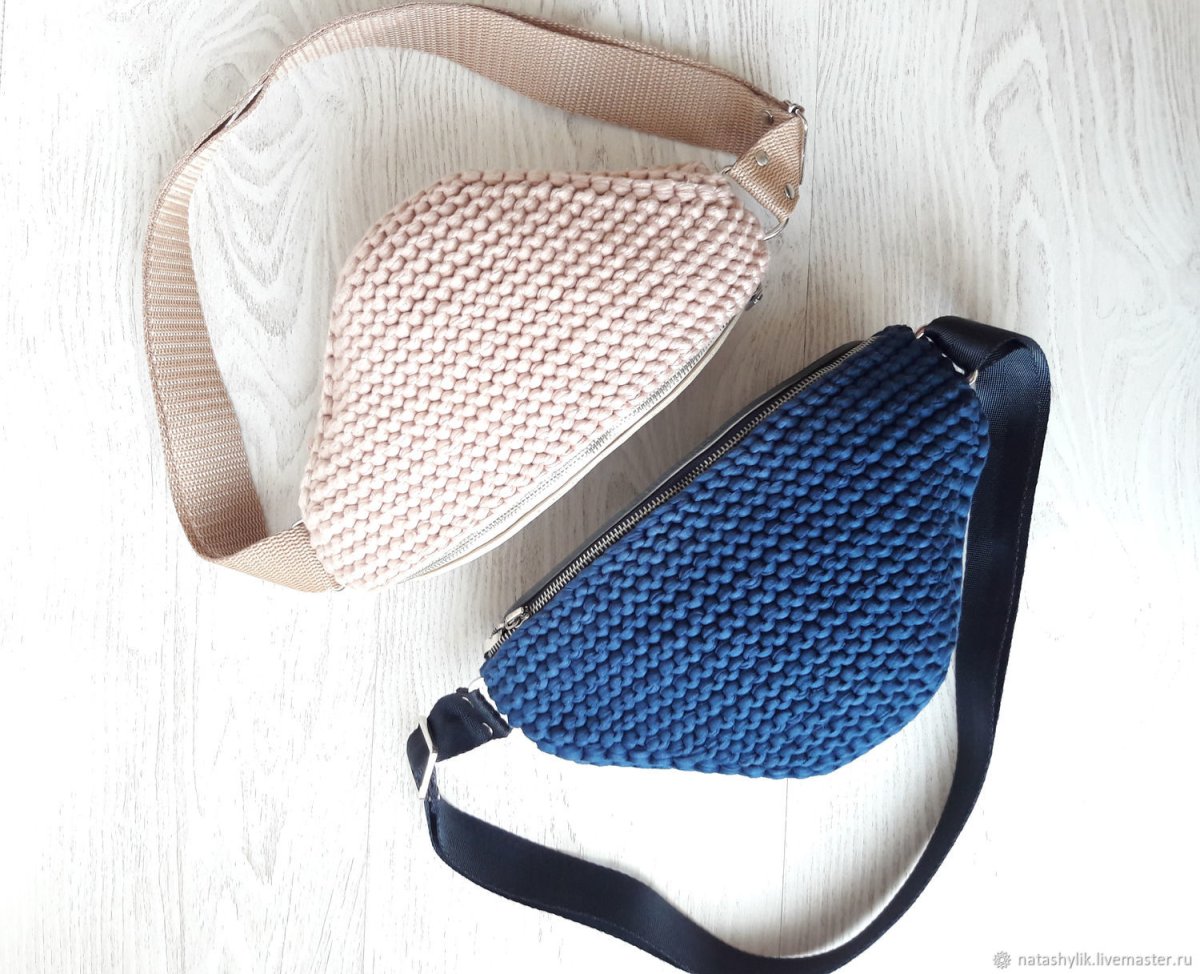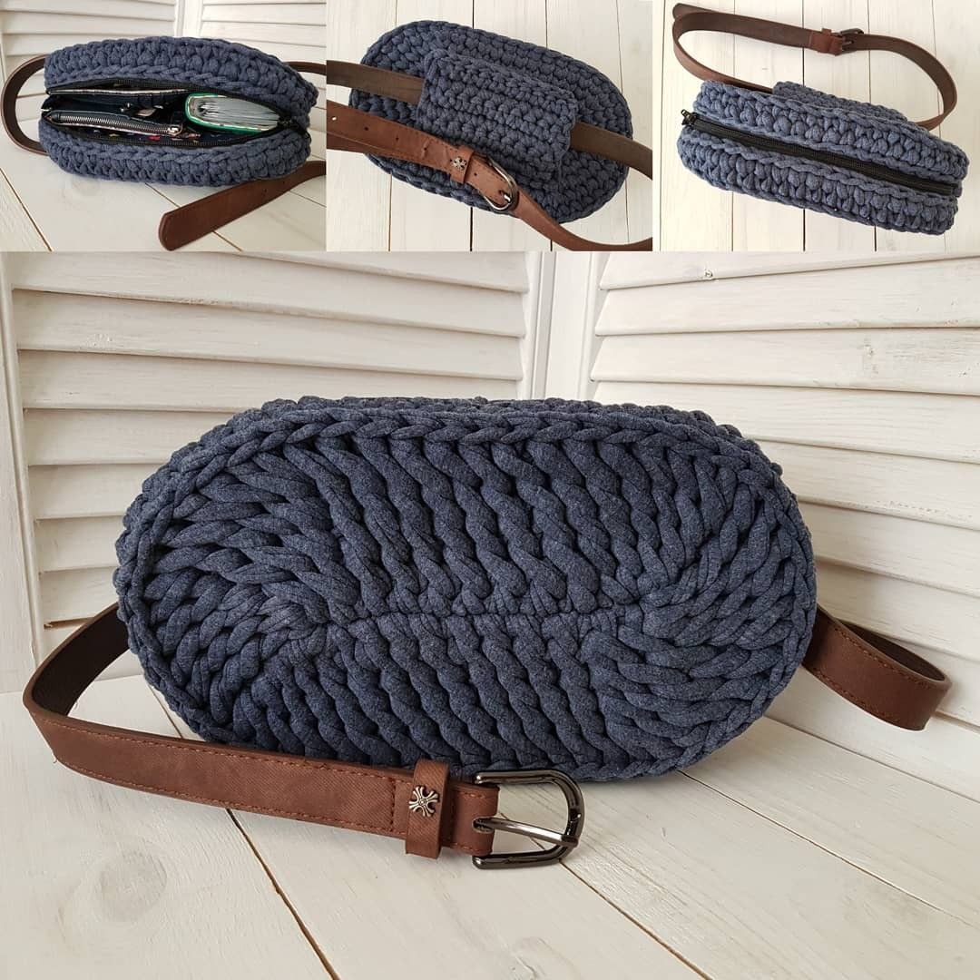 Сумка Ракушка из трикотажной пряжи с деревянными ручками