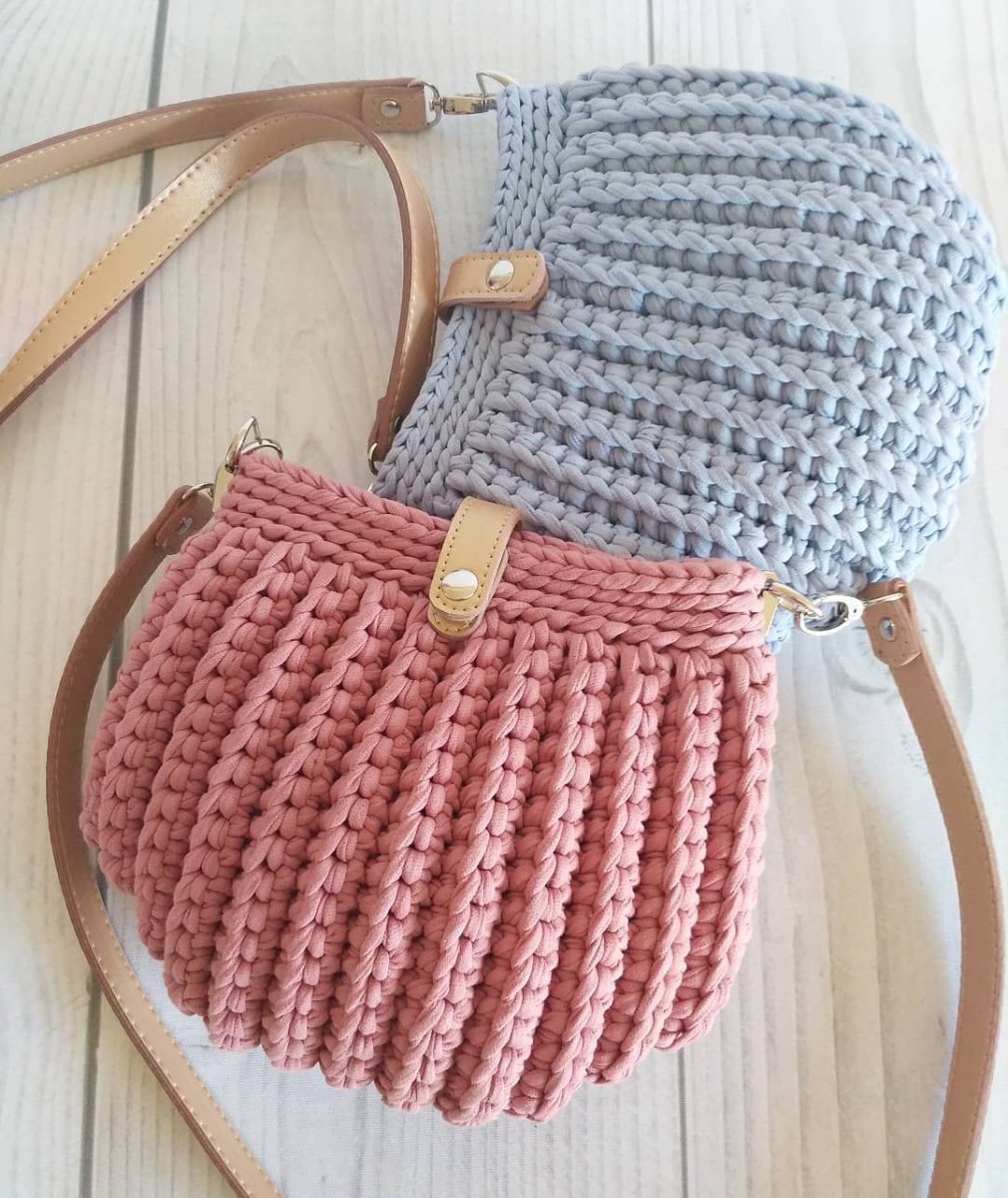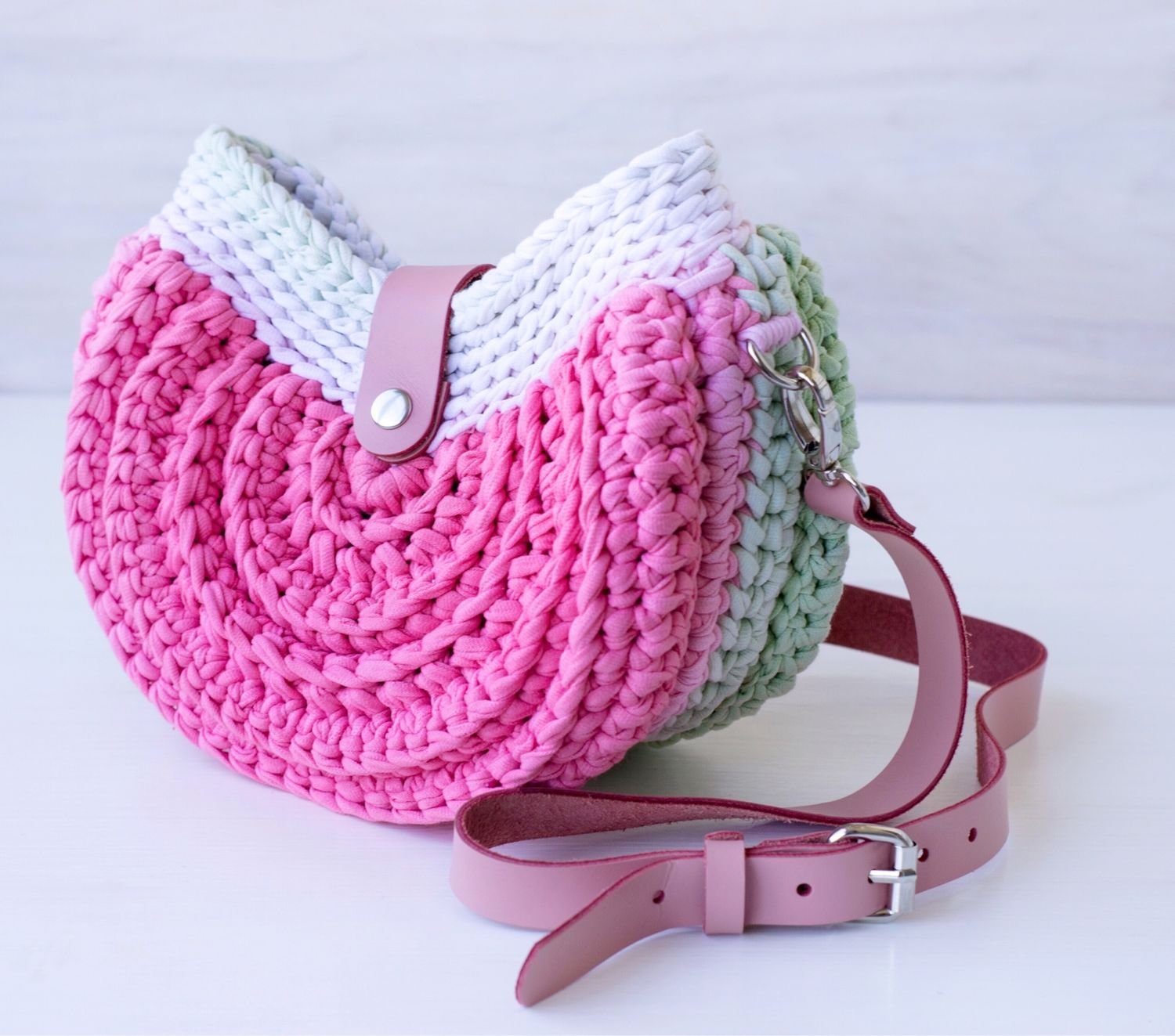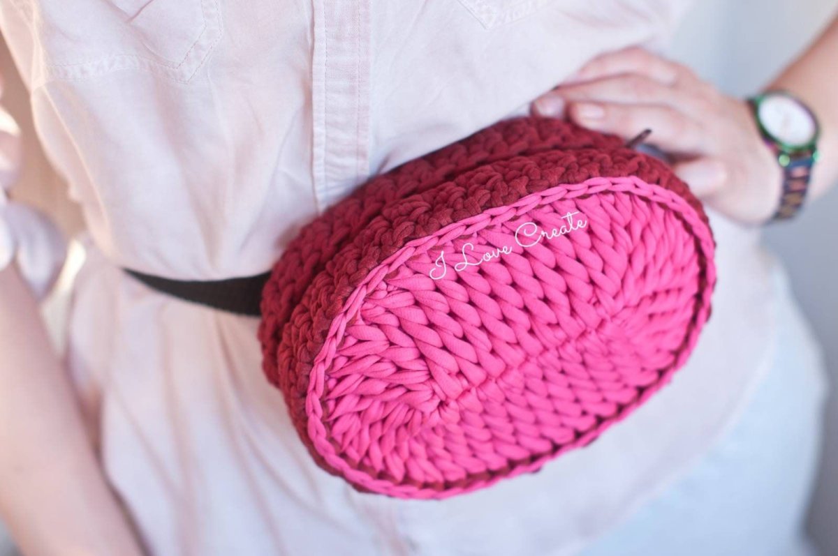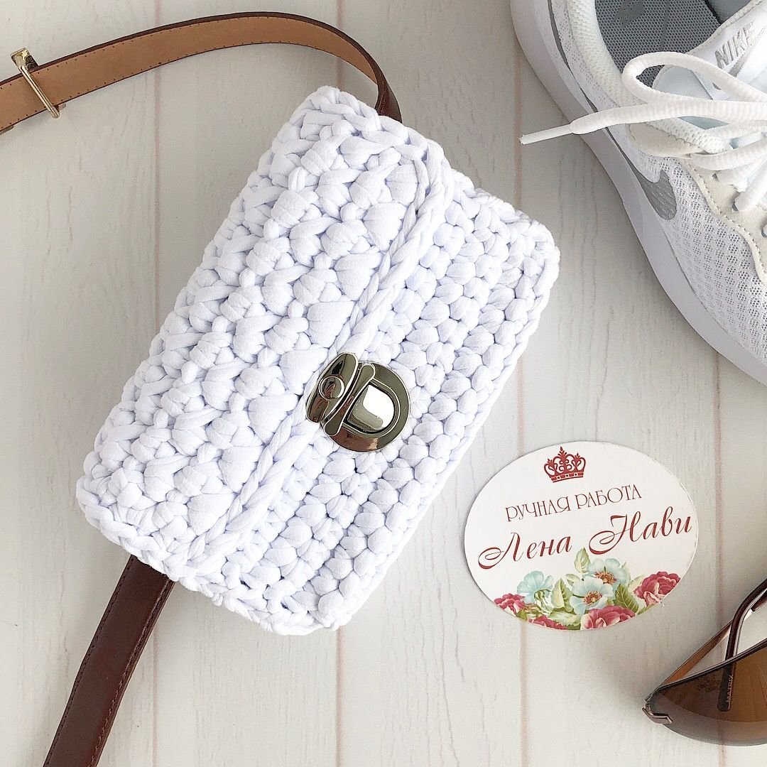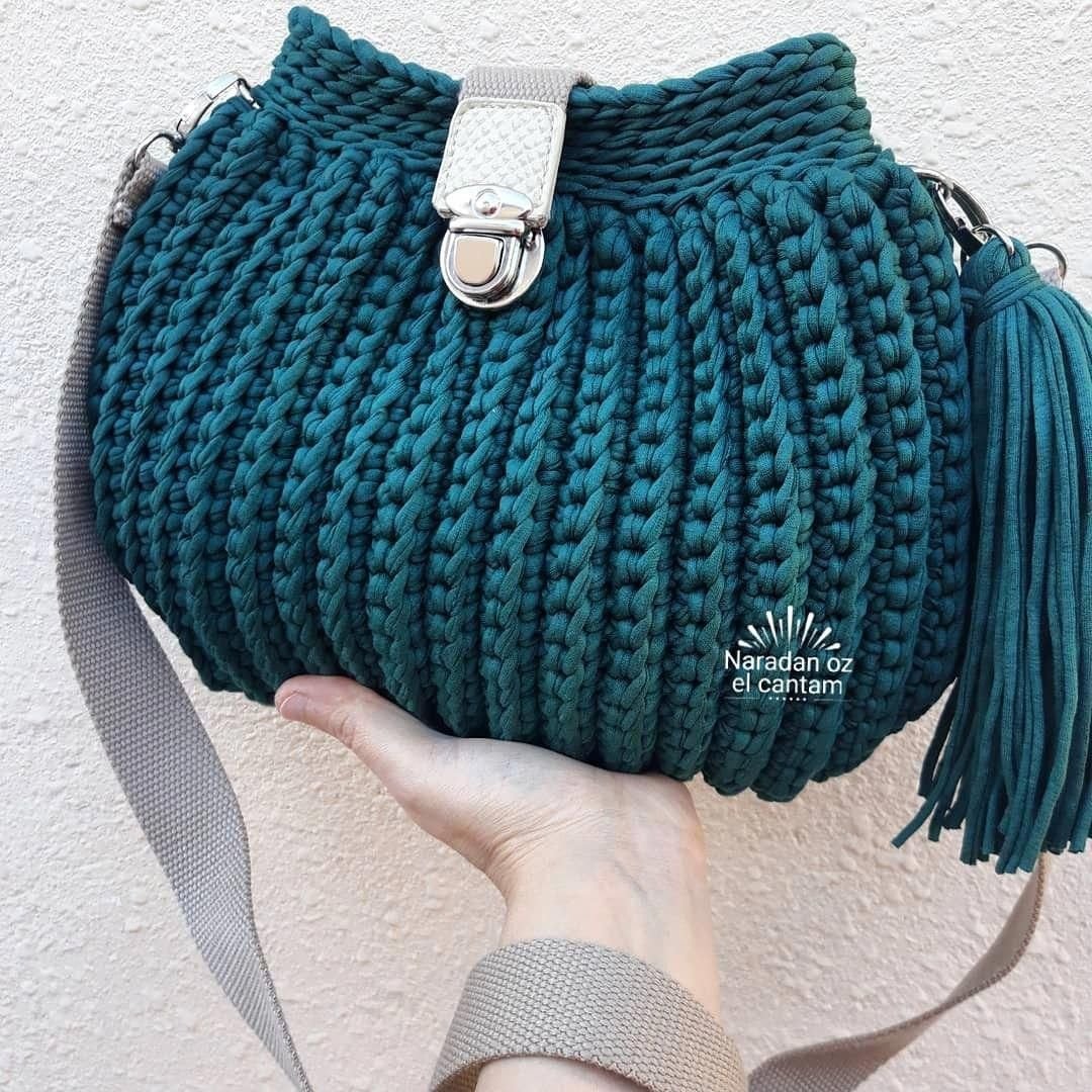 Сумка Ракушка из трикотажной пряжи с деревянными ручками