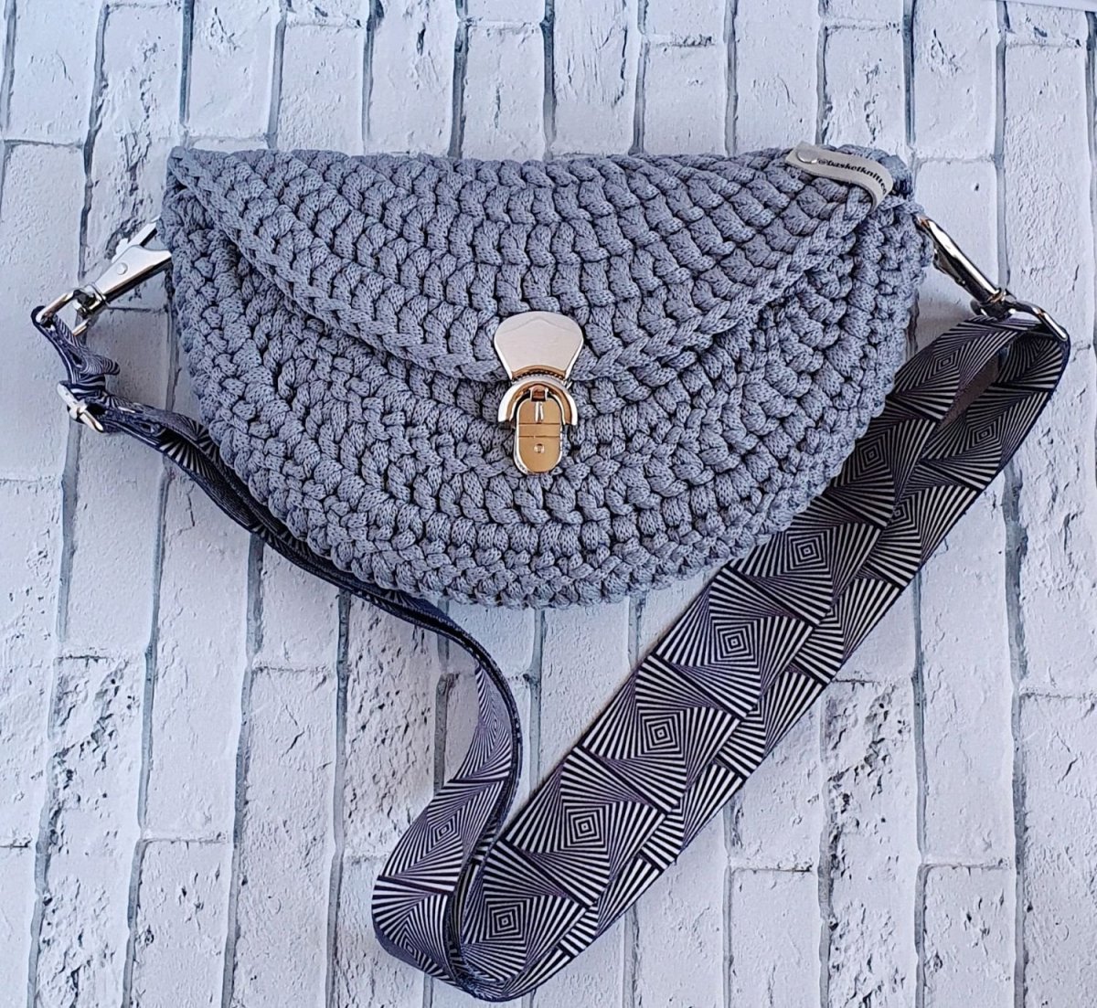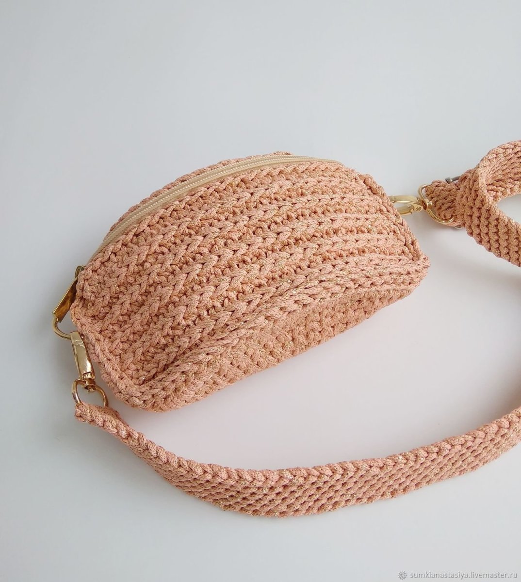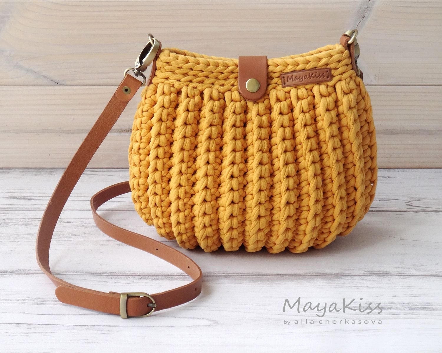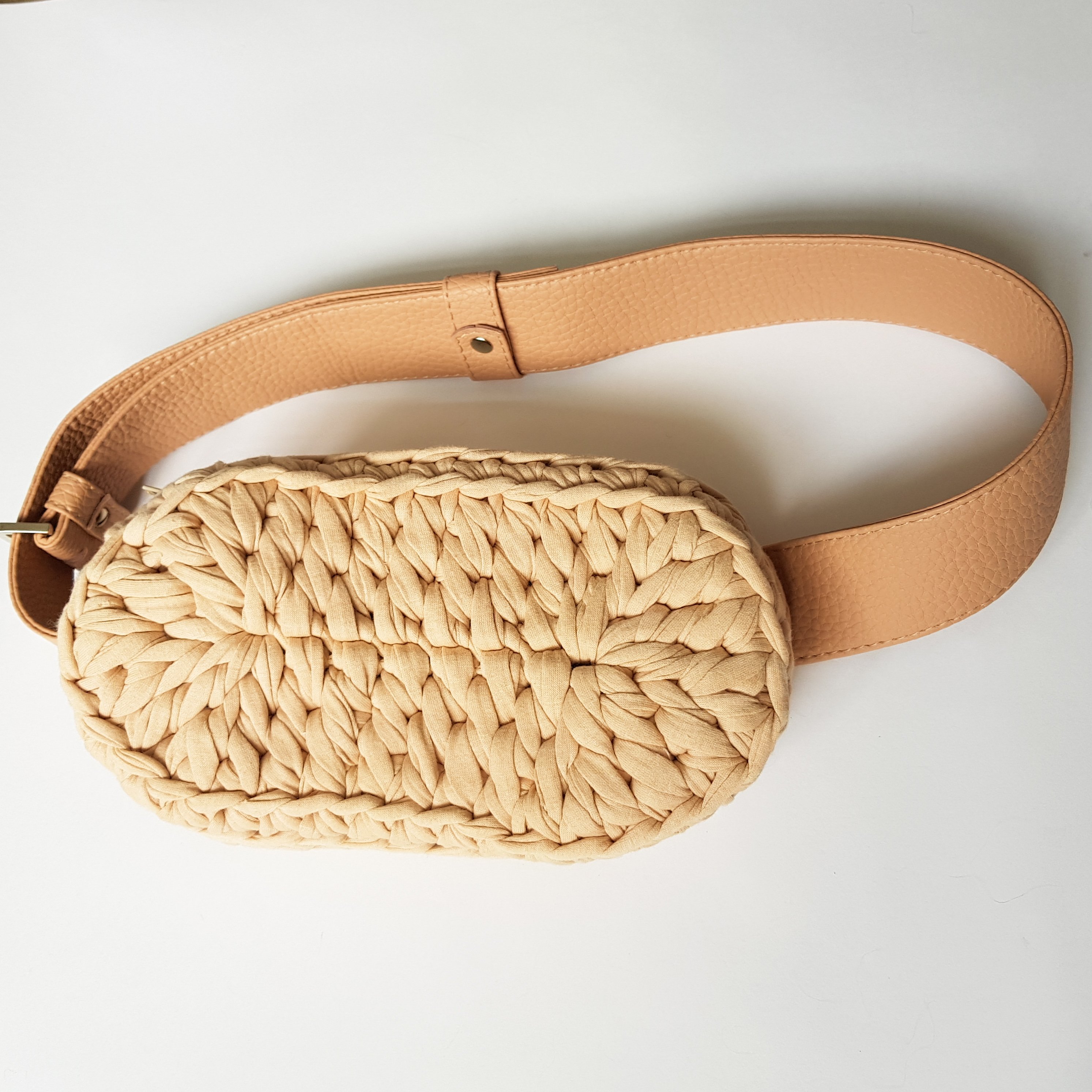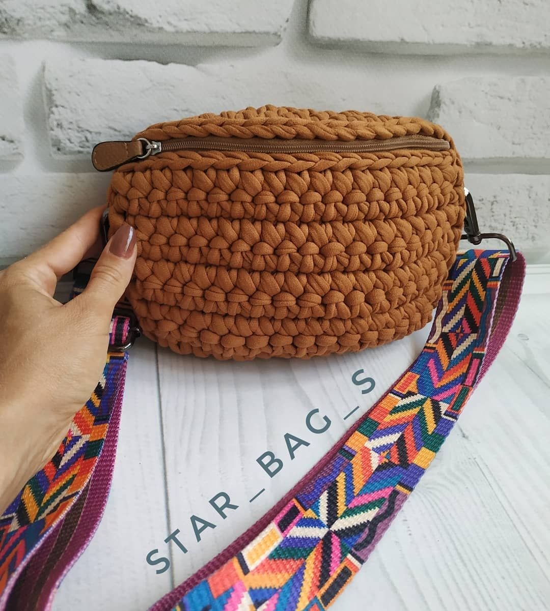Сумка Ракушка из трикотажной пряжи с деревянными ручками