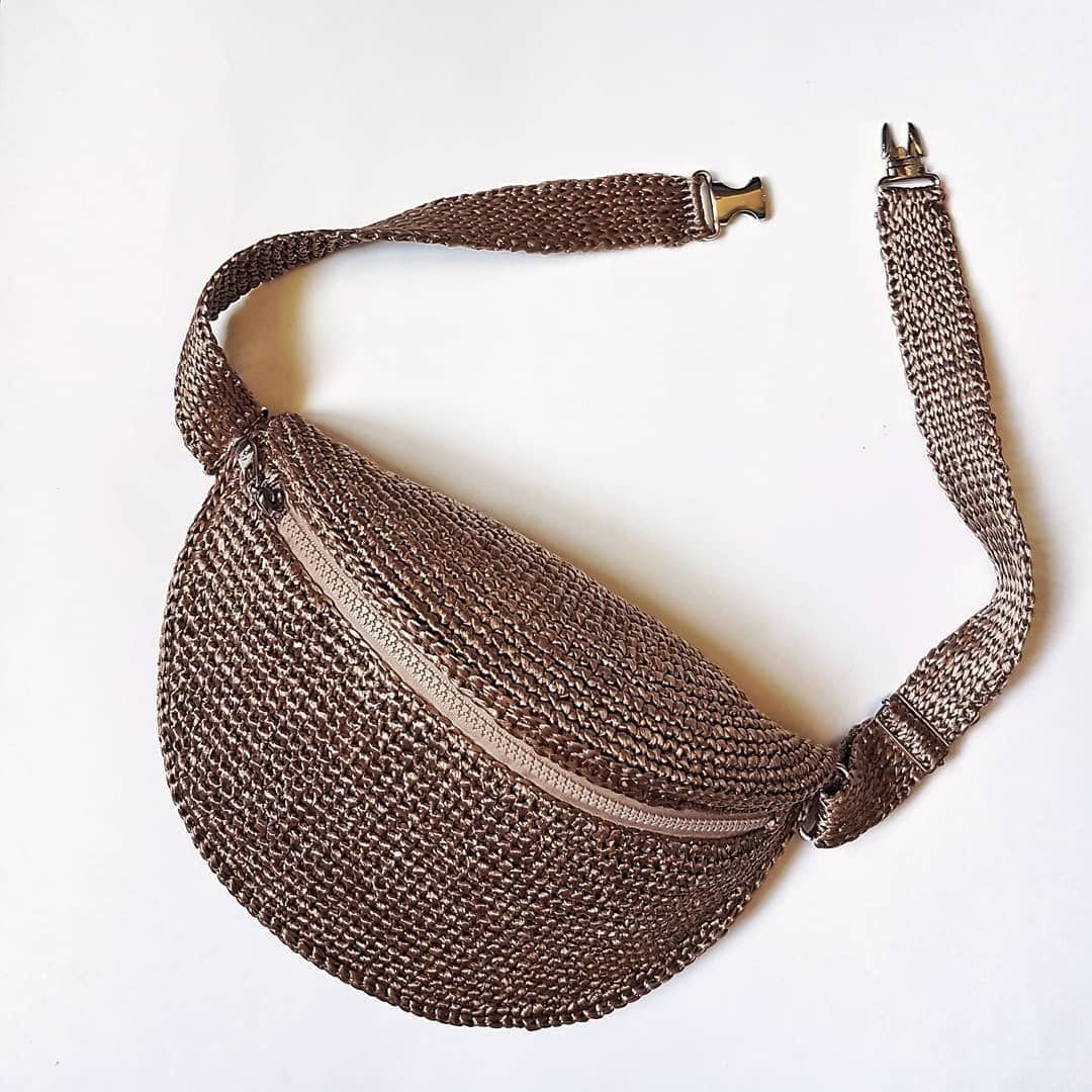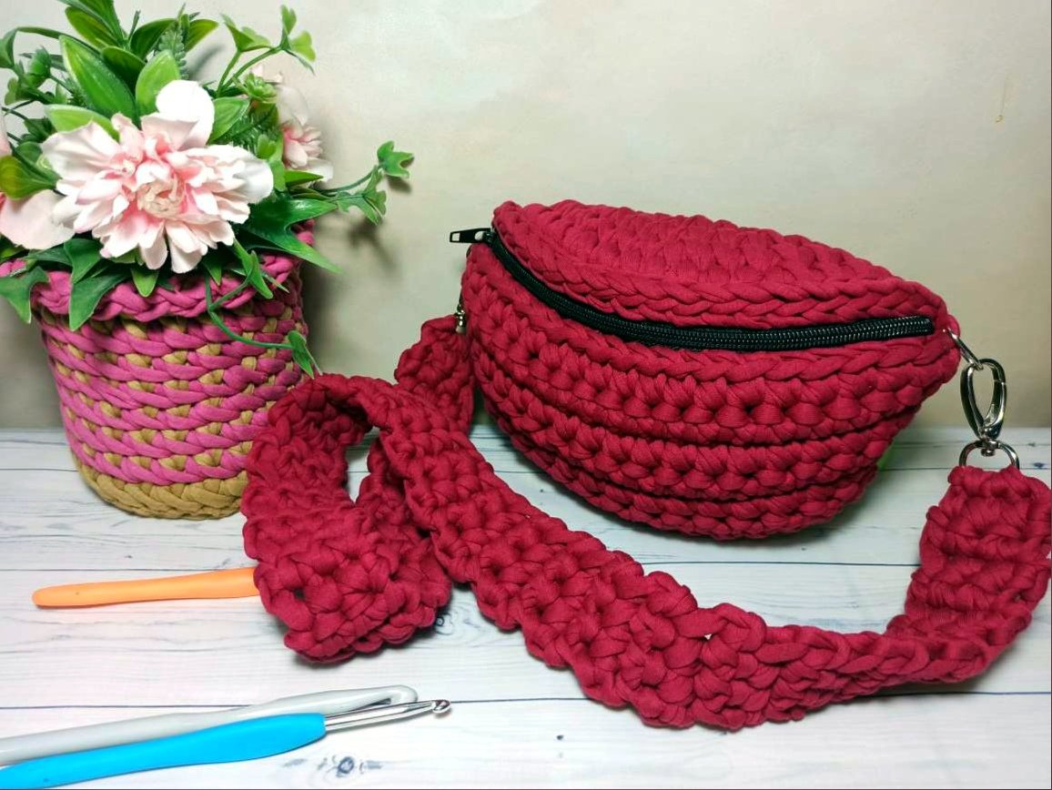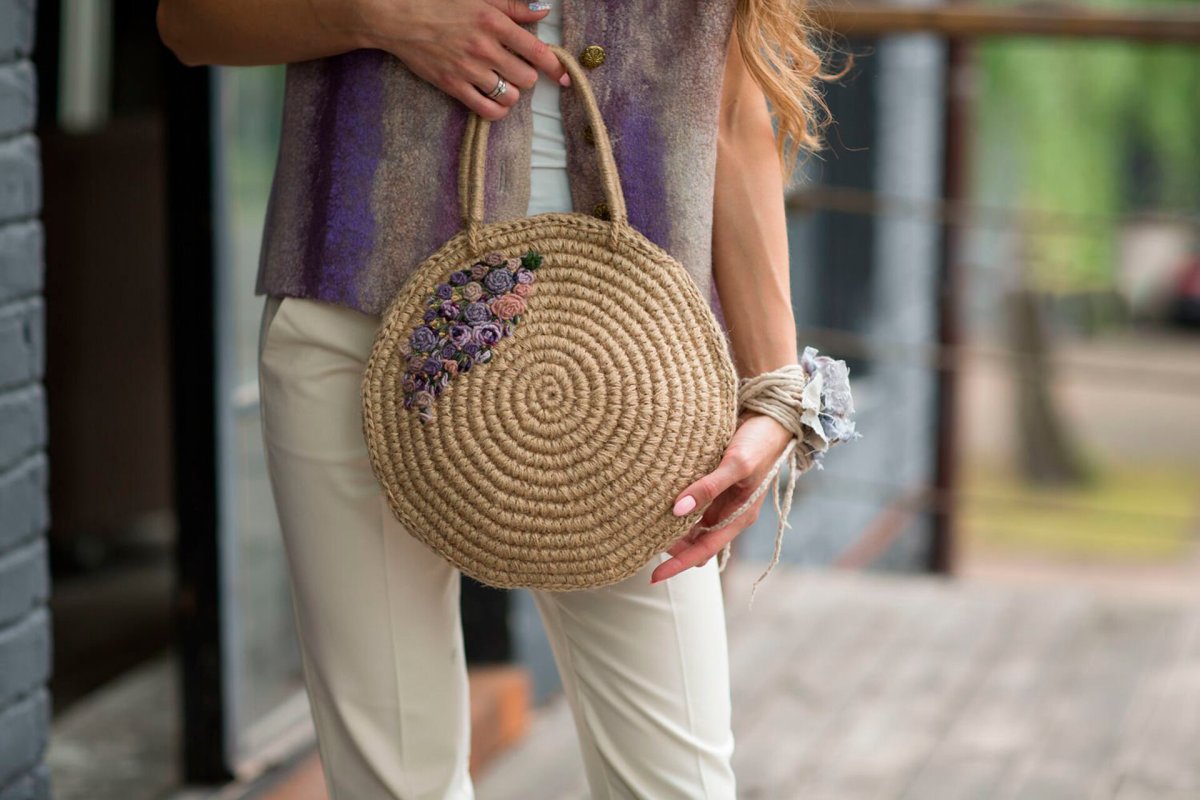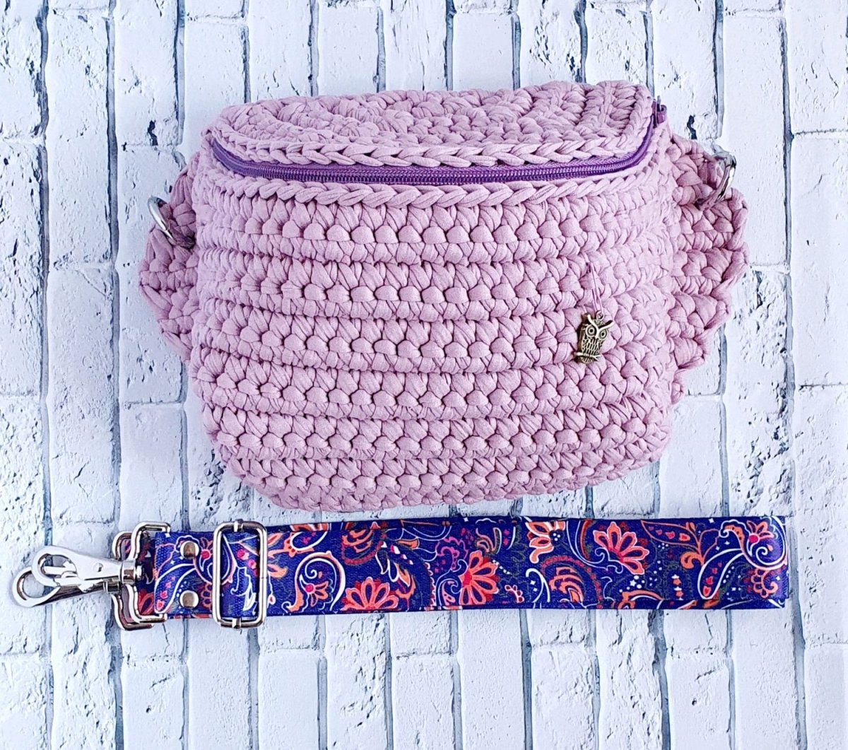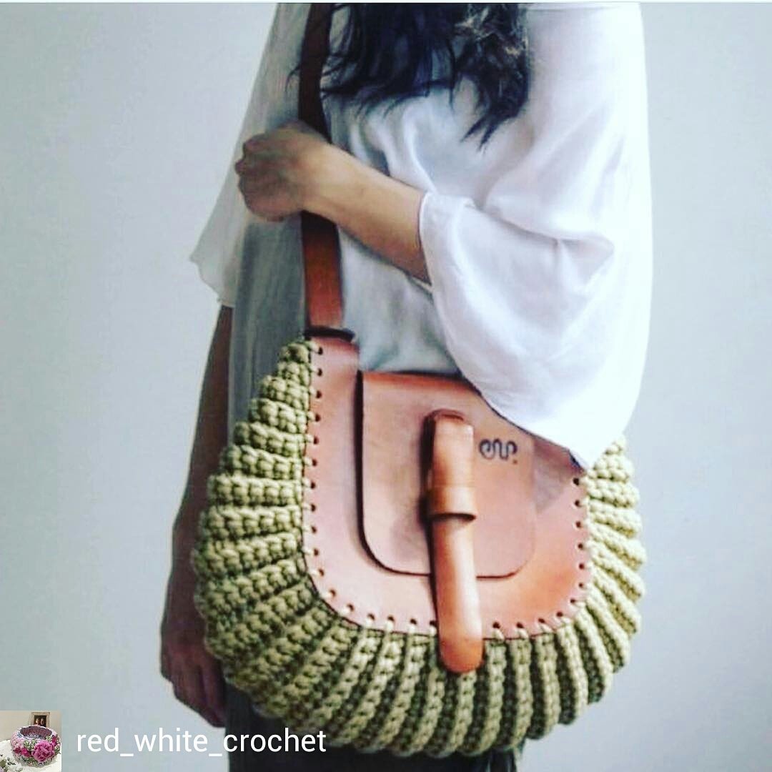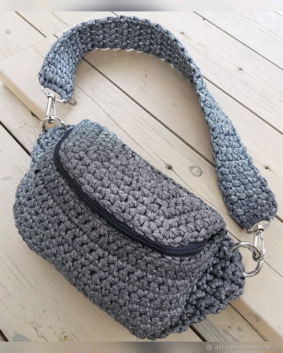 Сумка Ракушка из трикотажной пряжи с деревянными ручками