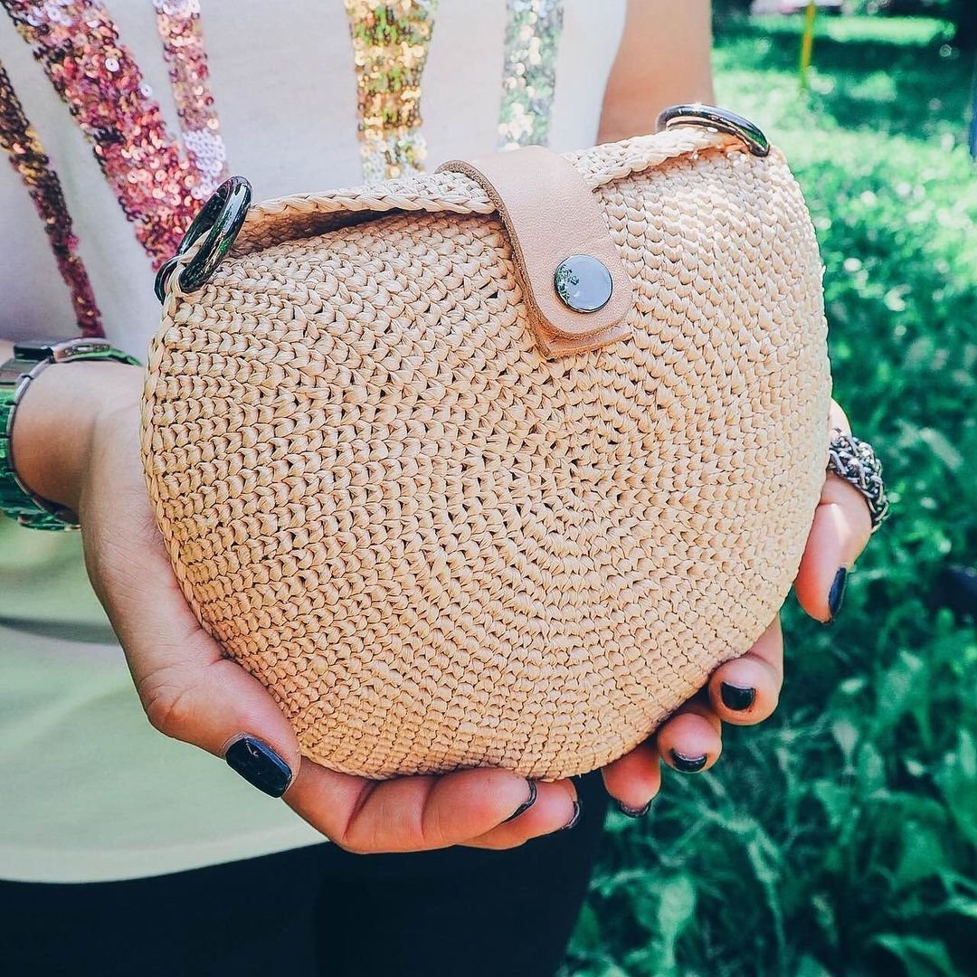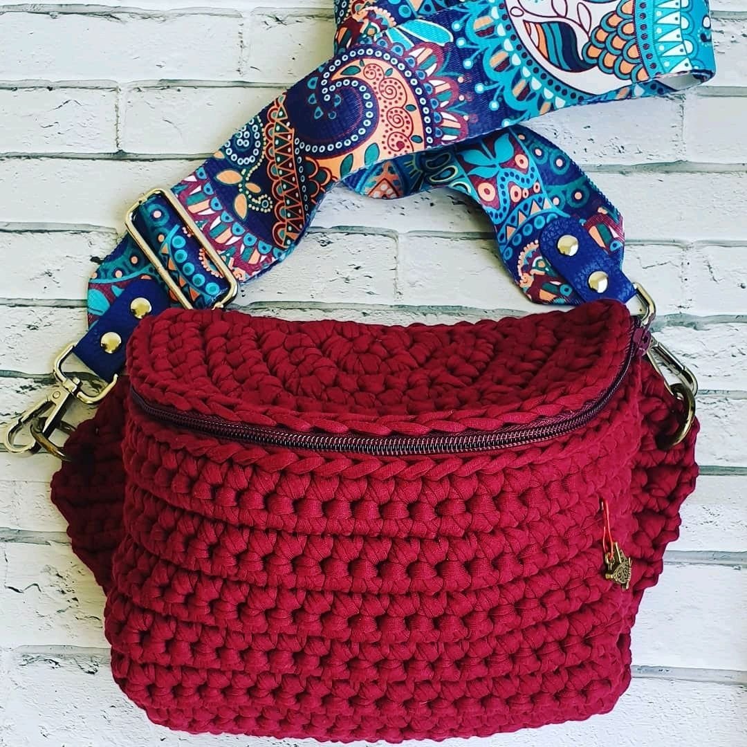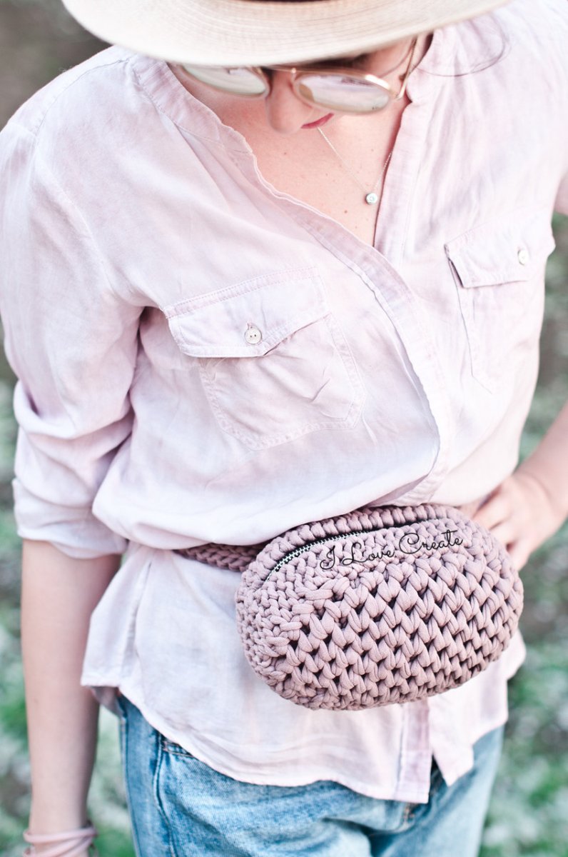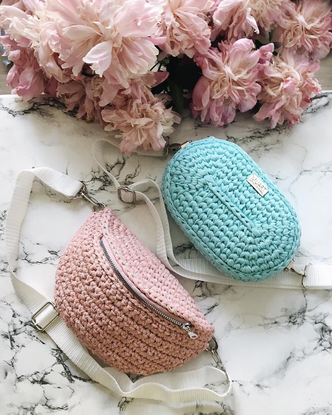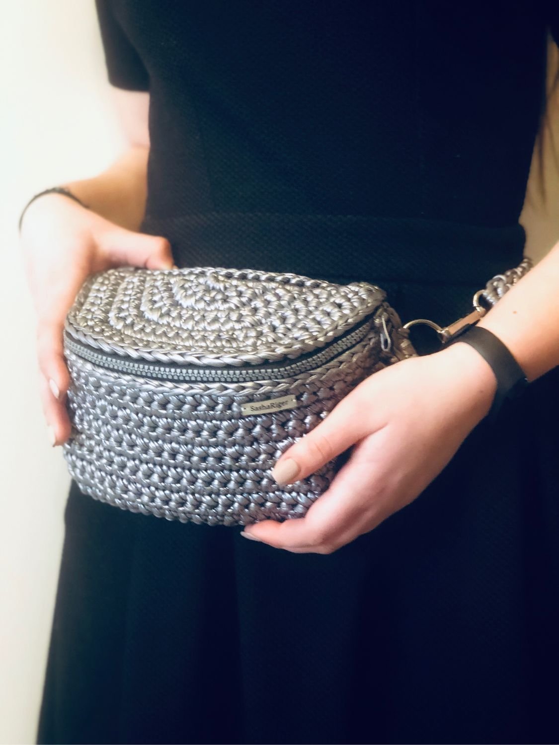 Сумка Ракушка из трикотажной пряжи с деревянными ручками