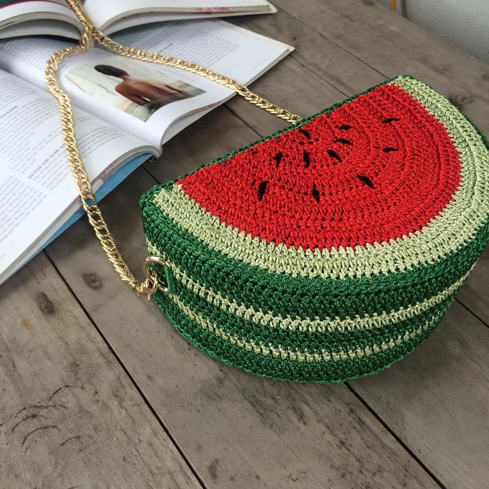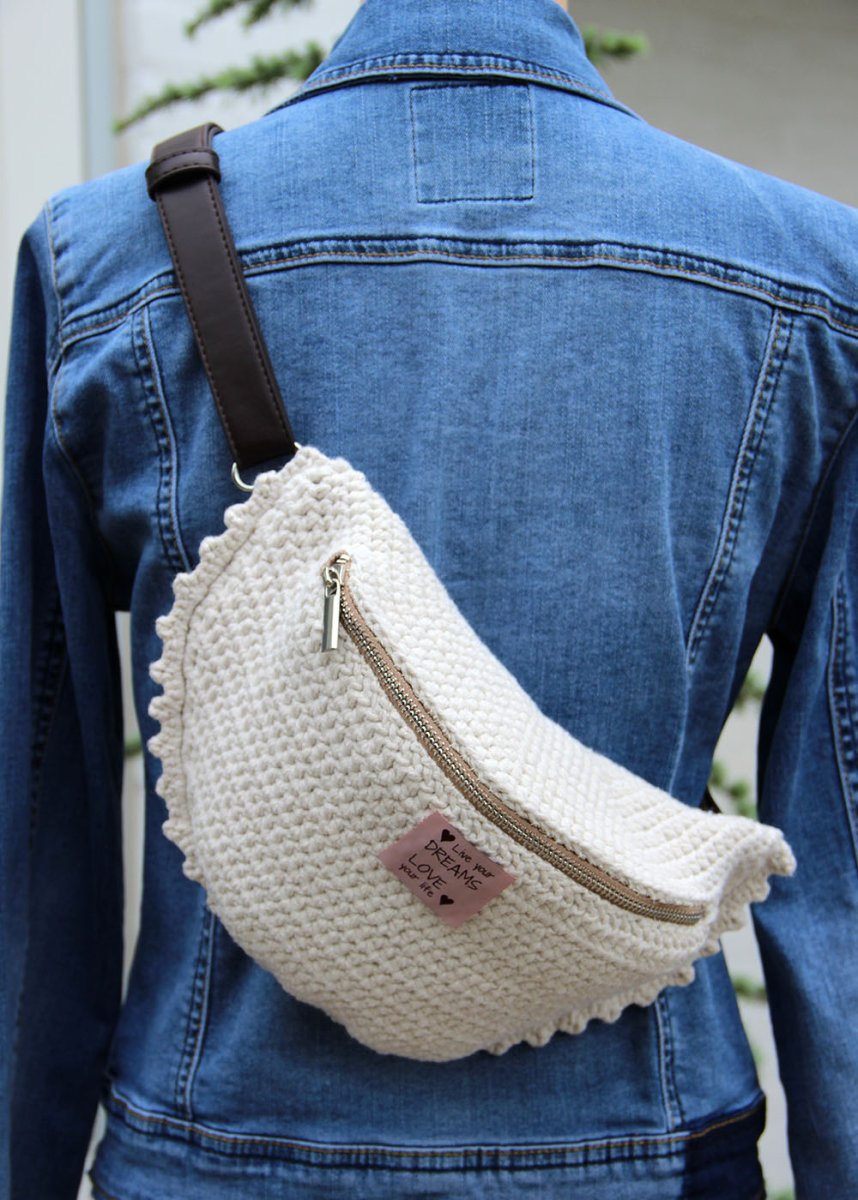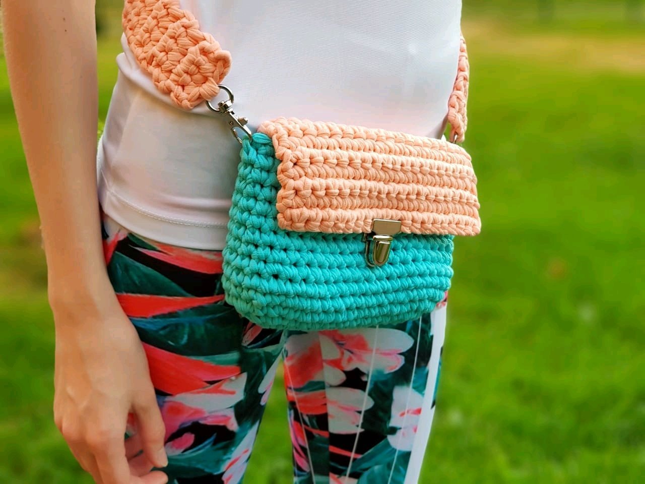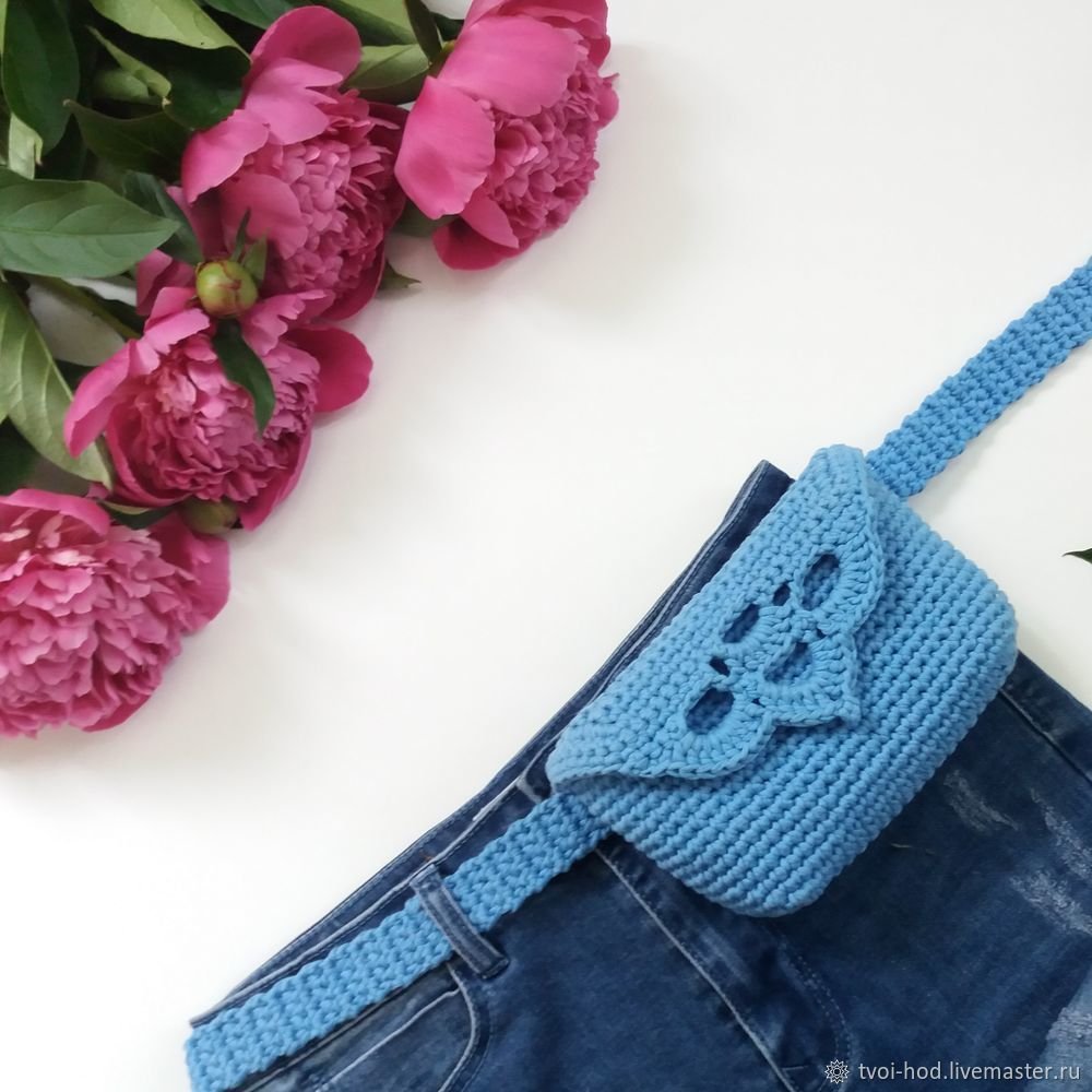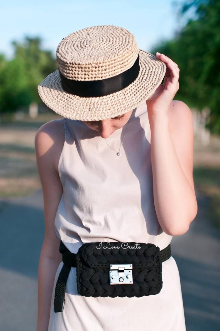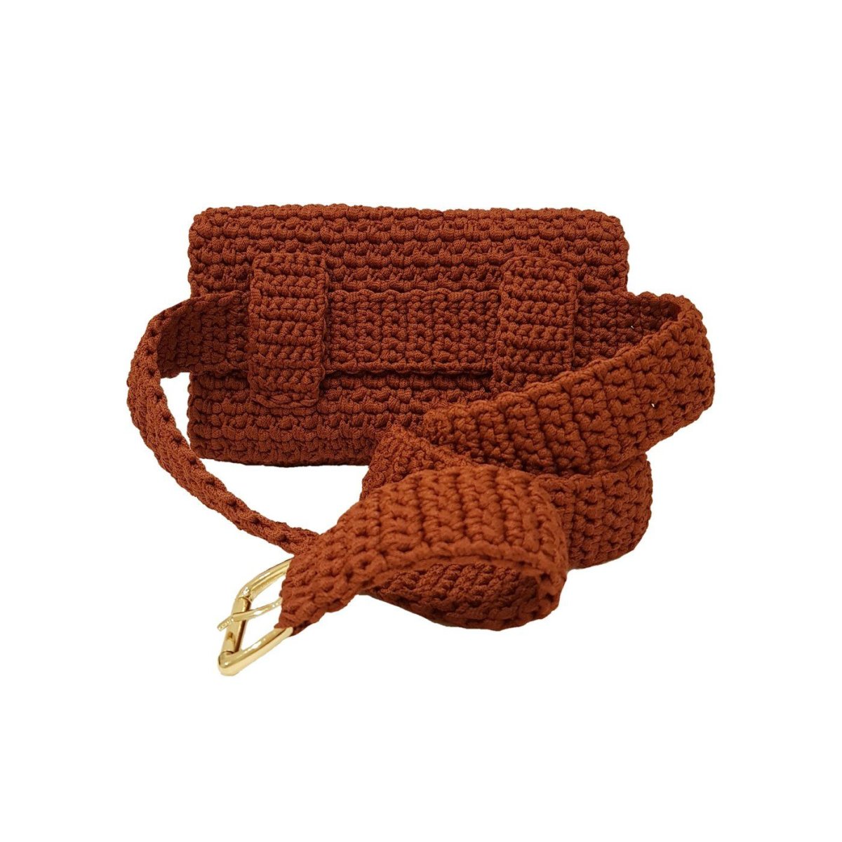 Сумка Ракушка из трикотажной пряжи с деревянными ручками