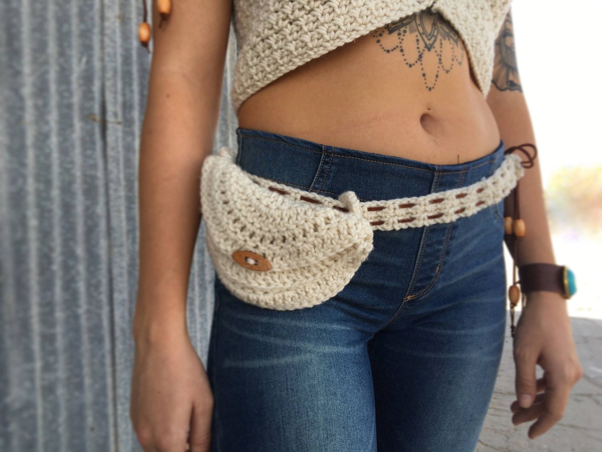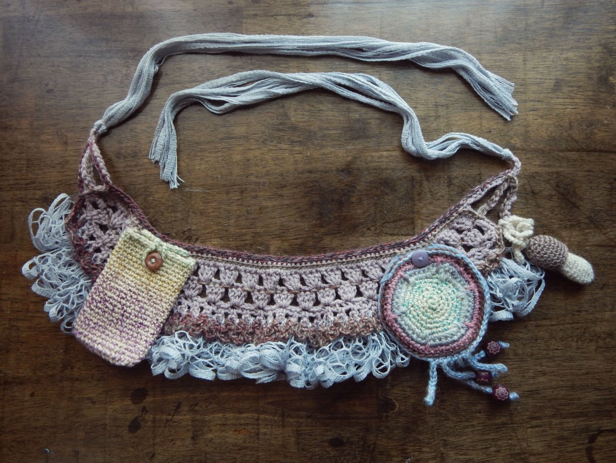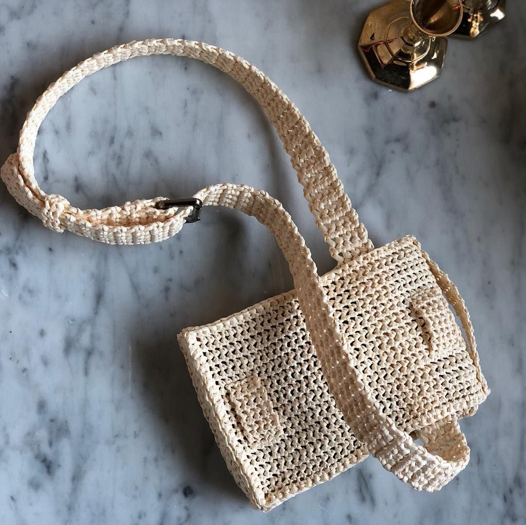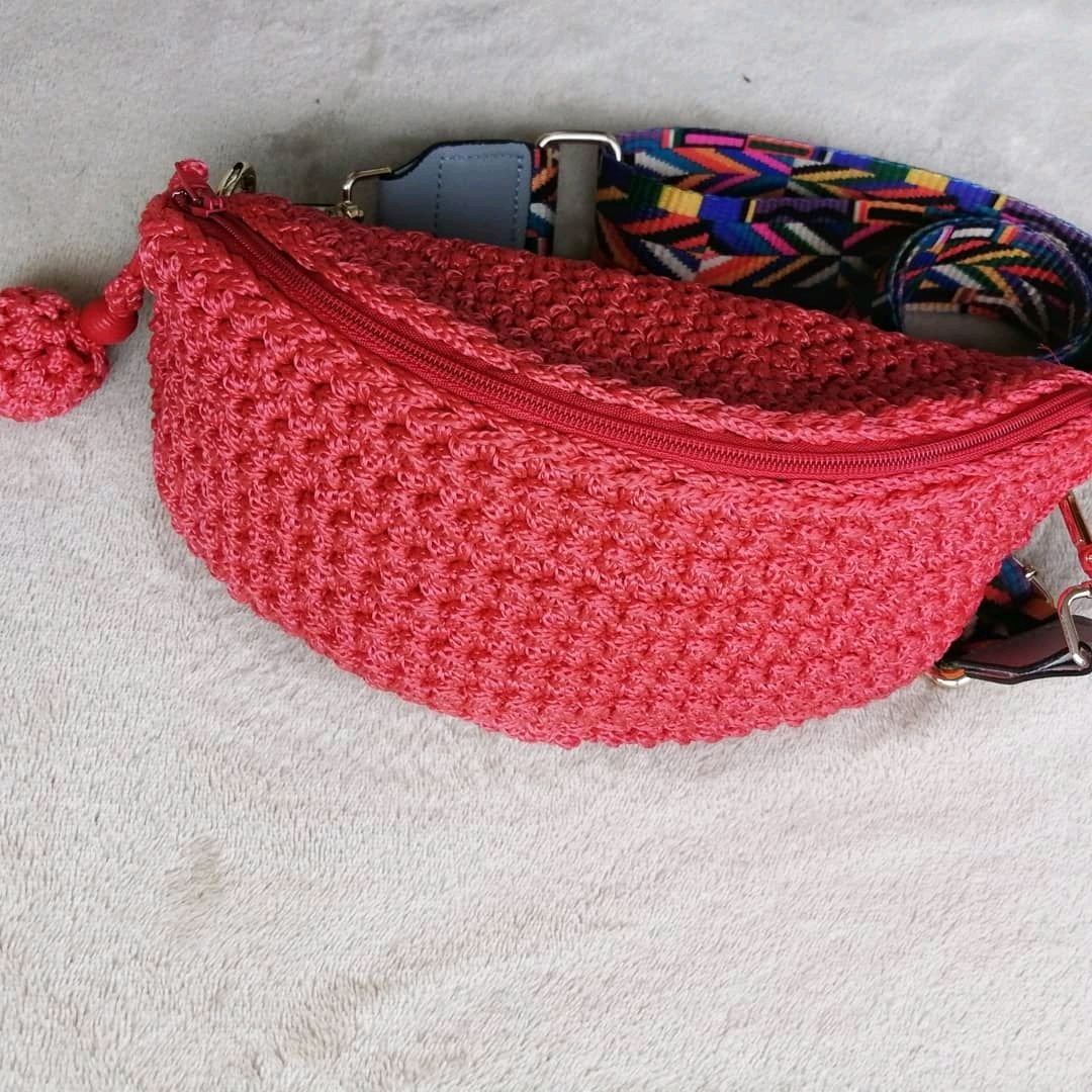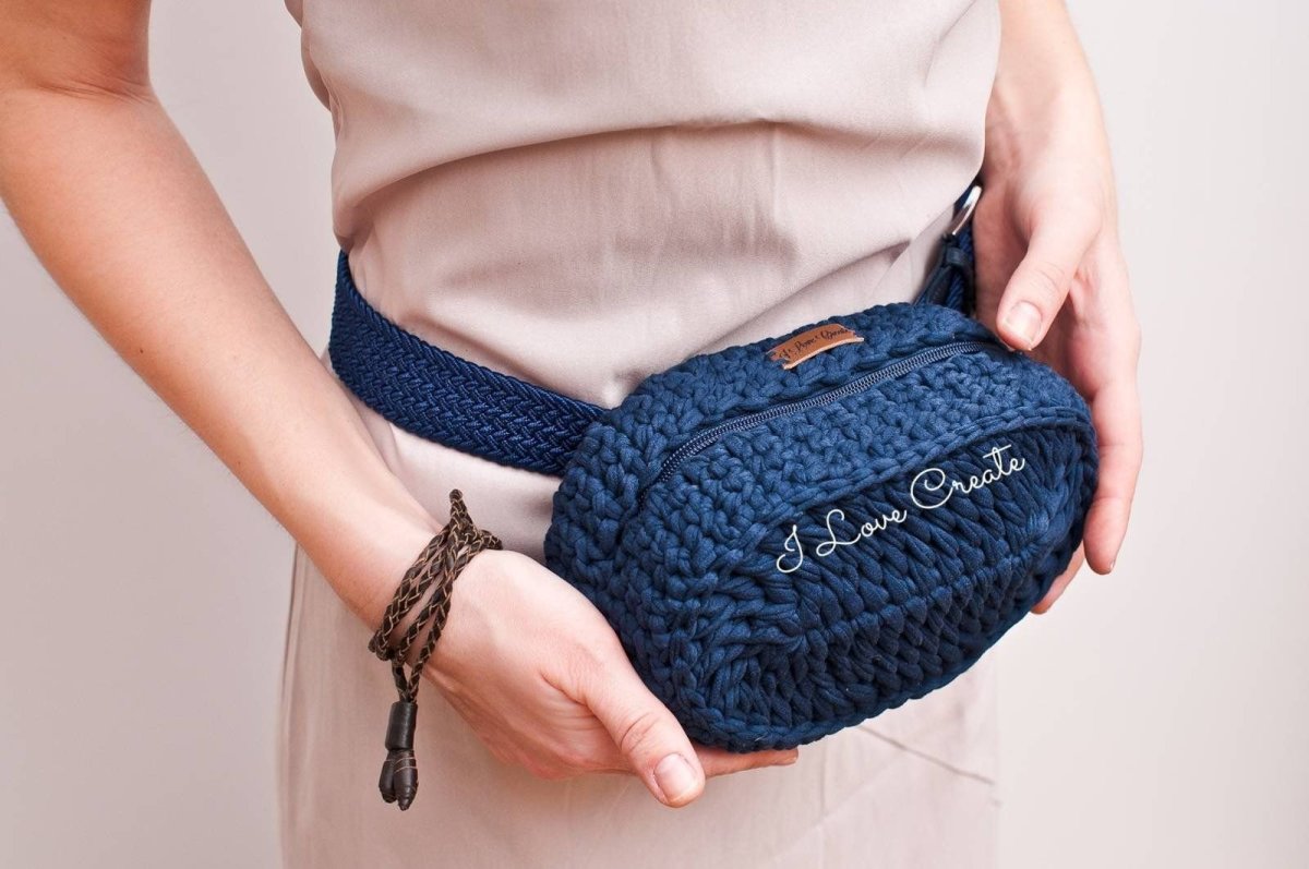Сумка Ракушка из трикотажной пряжи с деревянными ручками