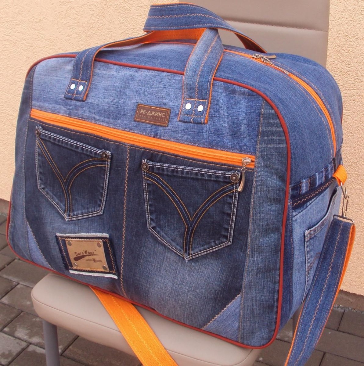Дорожная сумка из старых джинсов